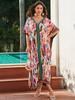 Blusa de playa con estampado de rayón europeo y americano 2025, vestido holgado, protector solar para vacaciones, blusa exterior de bikini, transfronteriza