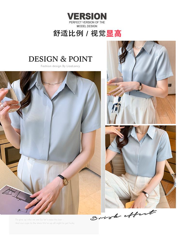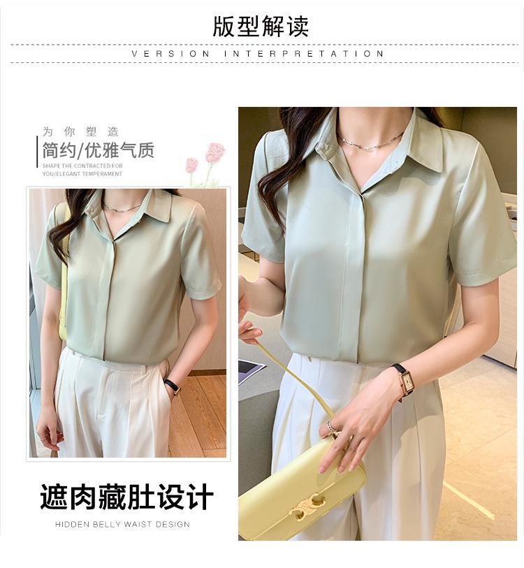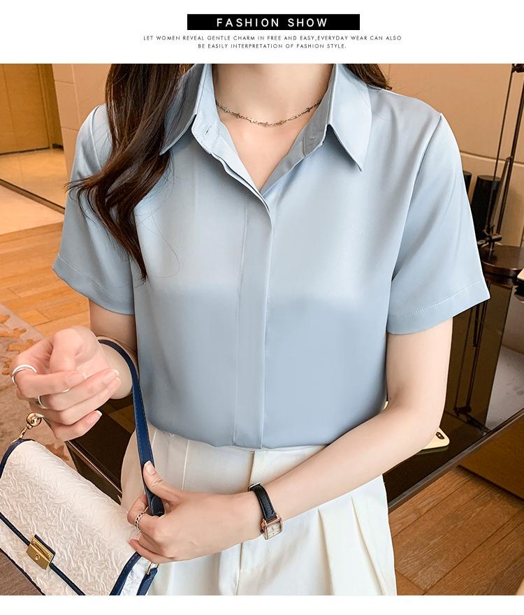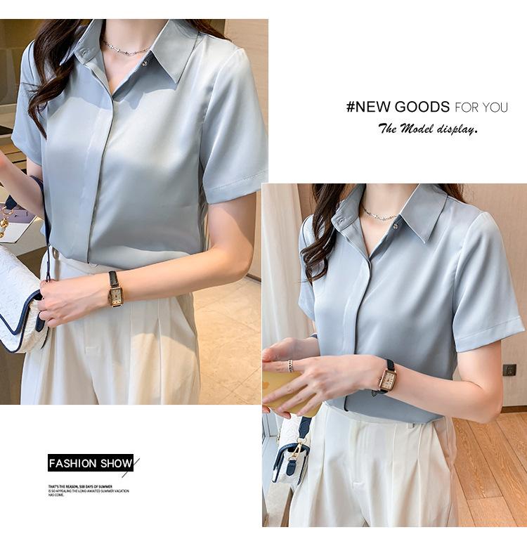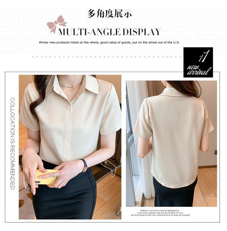 Camisa de Gasa de Manga Corta para Mujer Verano 2025 Nuevo Estilo de Moda Camisa Formal Profesional Top de Satén de Alta Gama