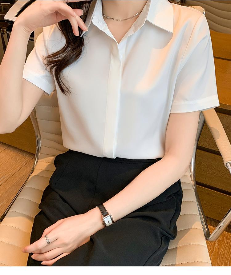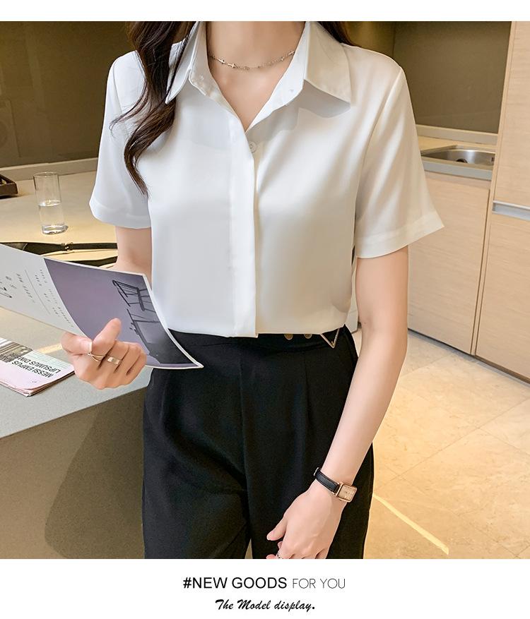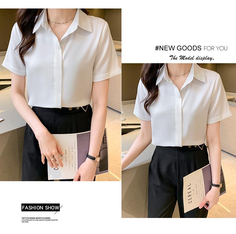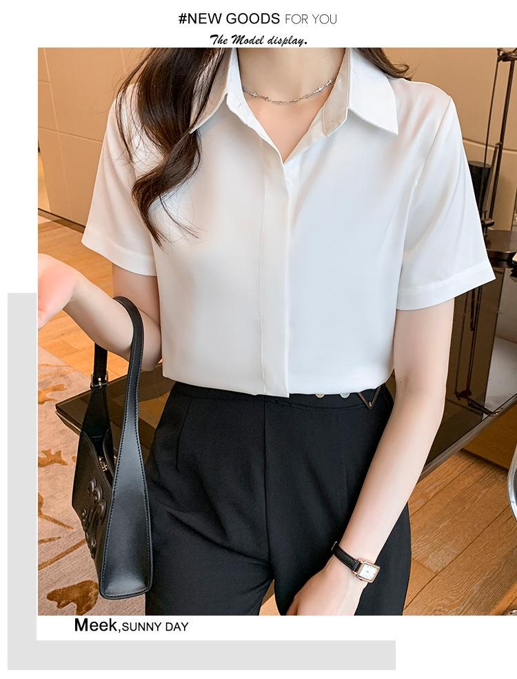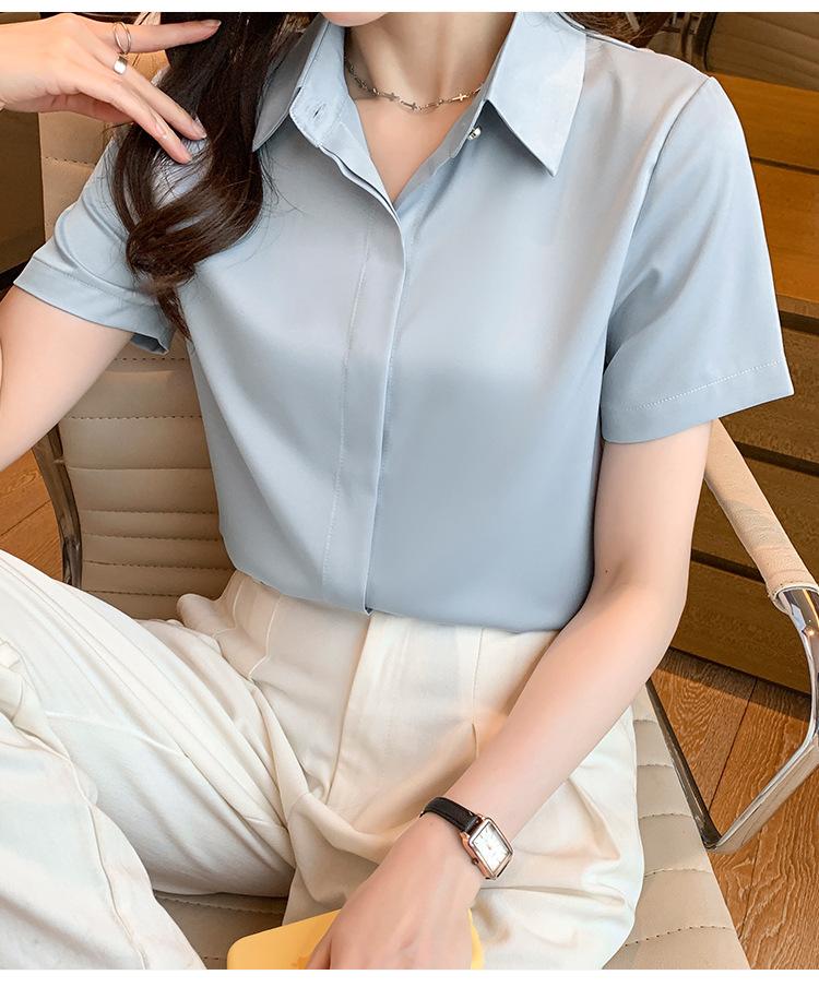 Camisa de Gasa de Manga Corta para Mujer Verano 2025 Nuevo Estilo de Moda Camisa Formal Profesional Top de Satén de Alta Gama