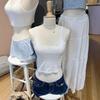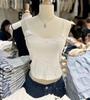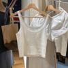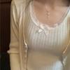Estilo Bm Nuevo Camisola de Encaje con Lazo de Cuello Redondo para Mujer Estilo Puro Lujuria Ajustado Versátil Top Corto Verano