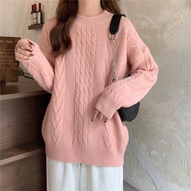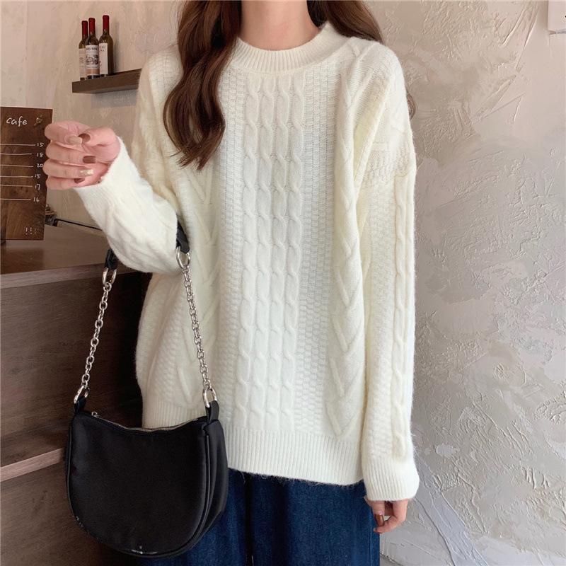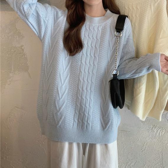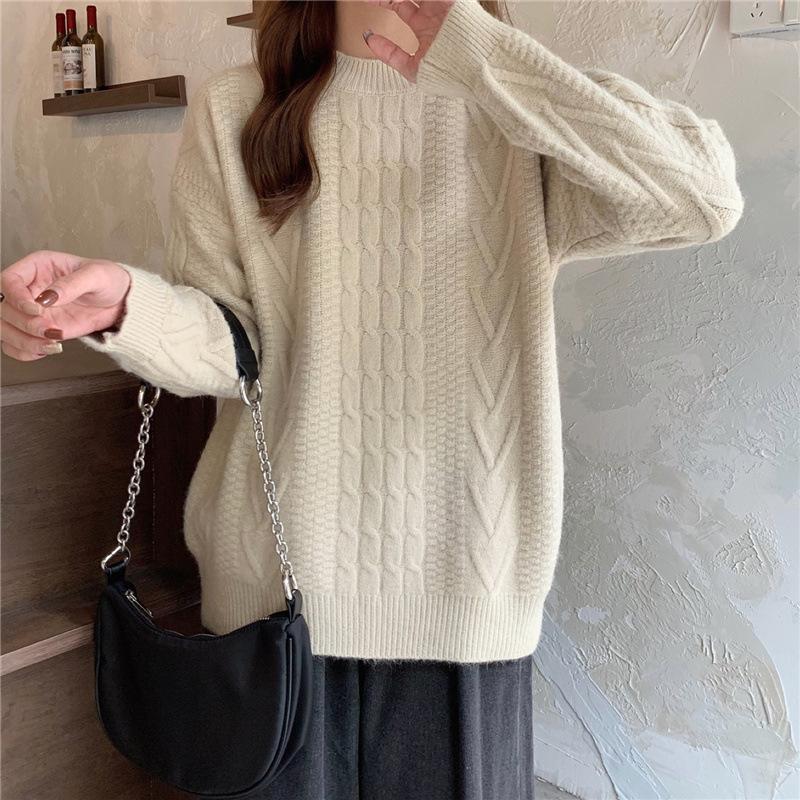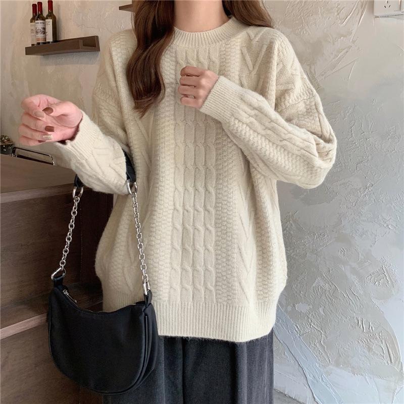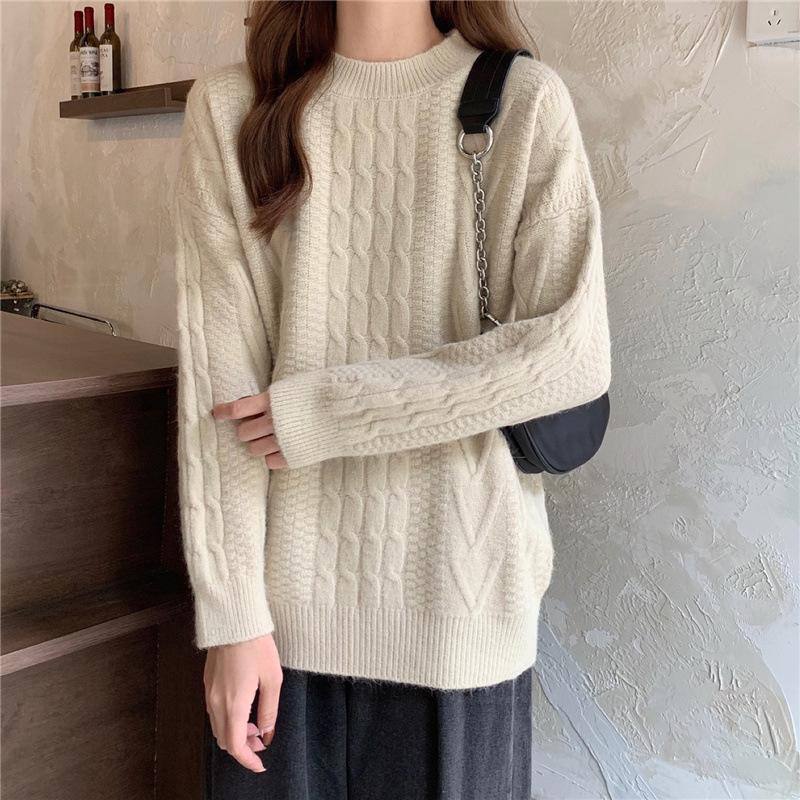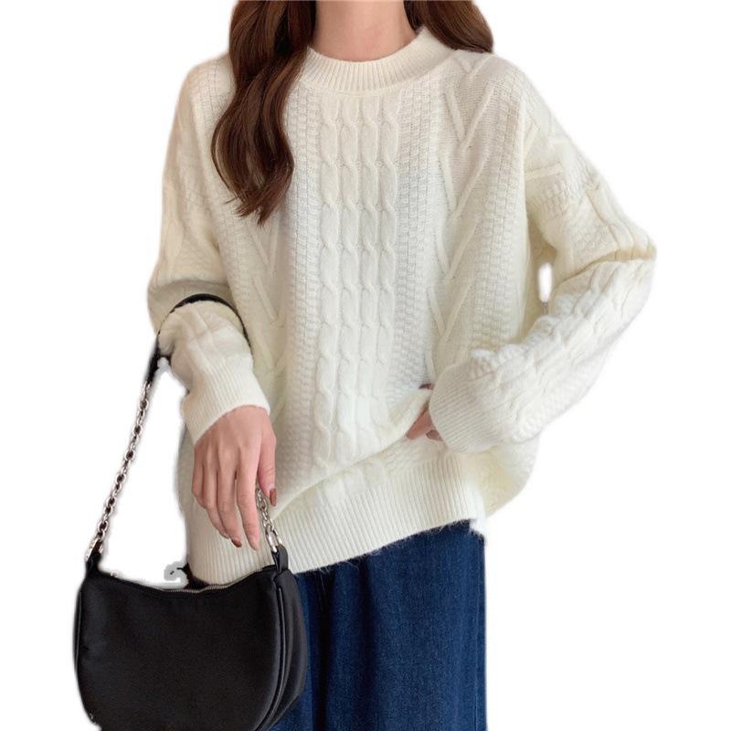 Otoño e Invierno 2025 Estilo Coreano Suelto Tejido de Trenzas Ropa Exterior Nueva para Mujer Jersey de Cuello Redondo de Manga Larga Top de Punto