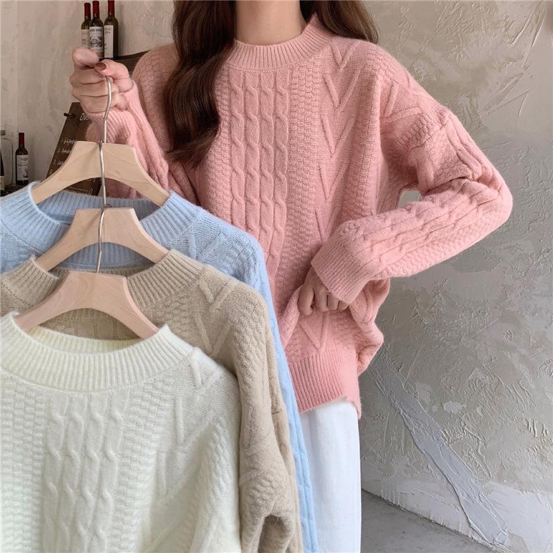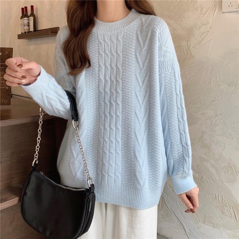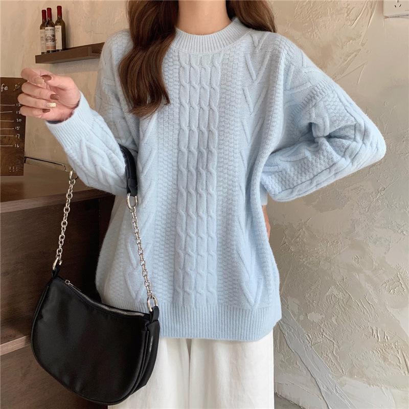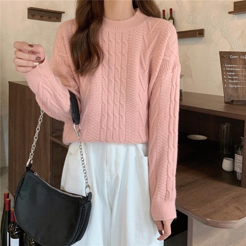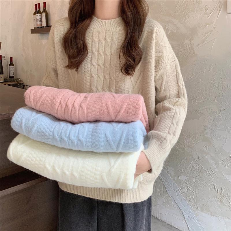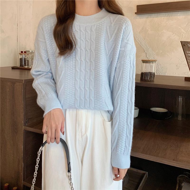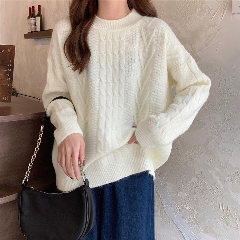 Otoño e Invierno 2025 Estilo Coreano Suelto Tejido de Trenzas Ropa Exterior Nueva para Mujer Jersey de Cuello Redondo de Manga Larga Top de Punto