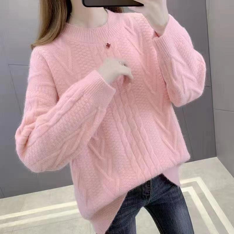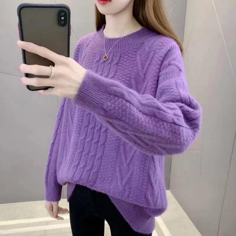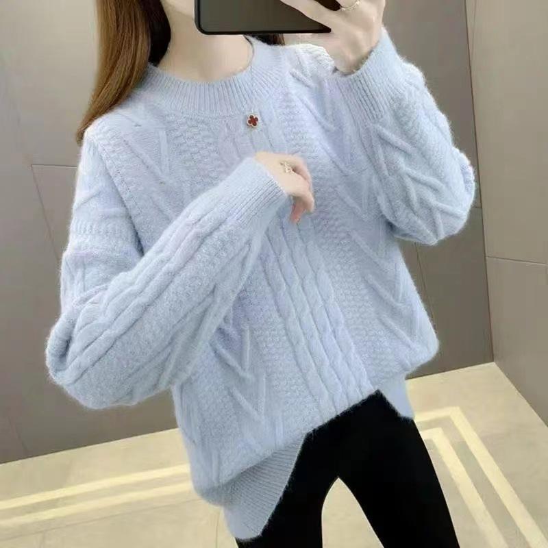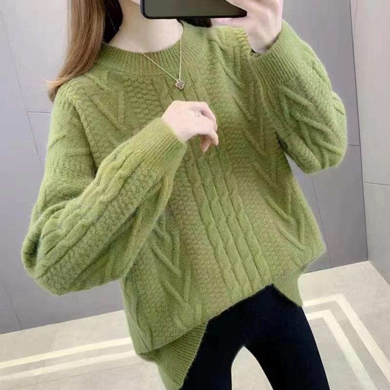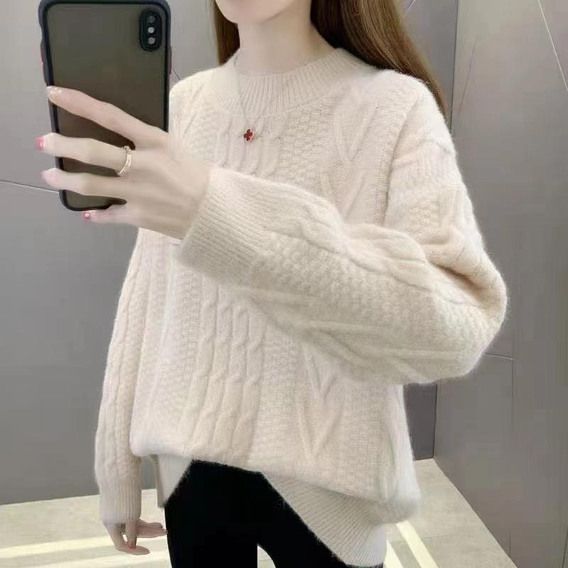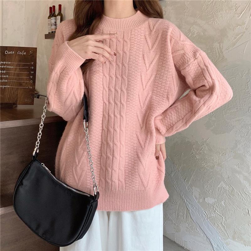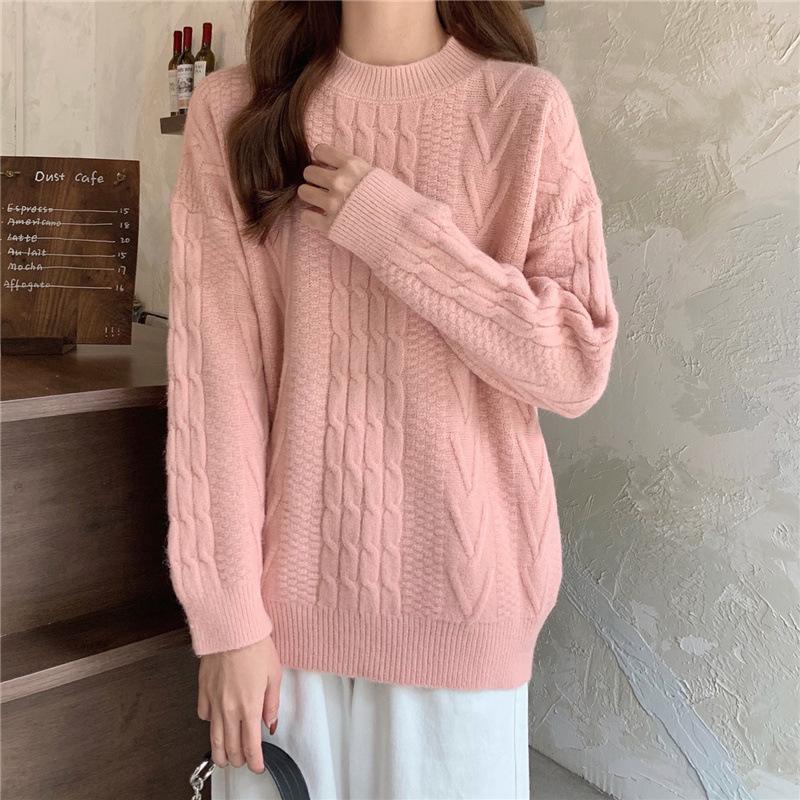 Otoño e Invierno 2025 Estilo Coreano Suelto Tejido de Trenzas Ropa Exterior Nueva para Mujer Jersey de Cuello Redondo de Manga Larga Top de Punto