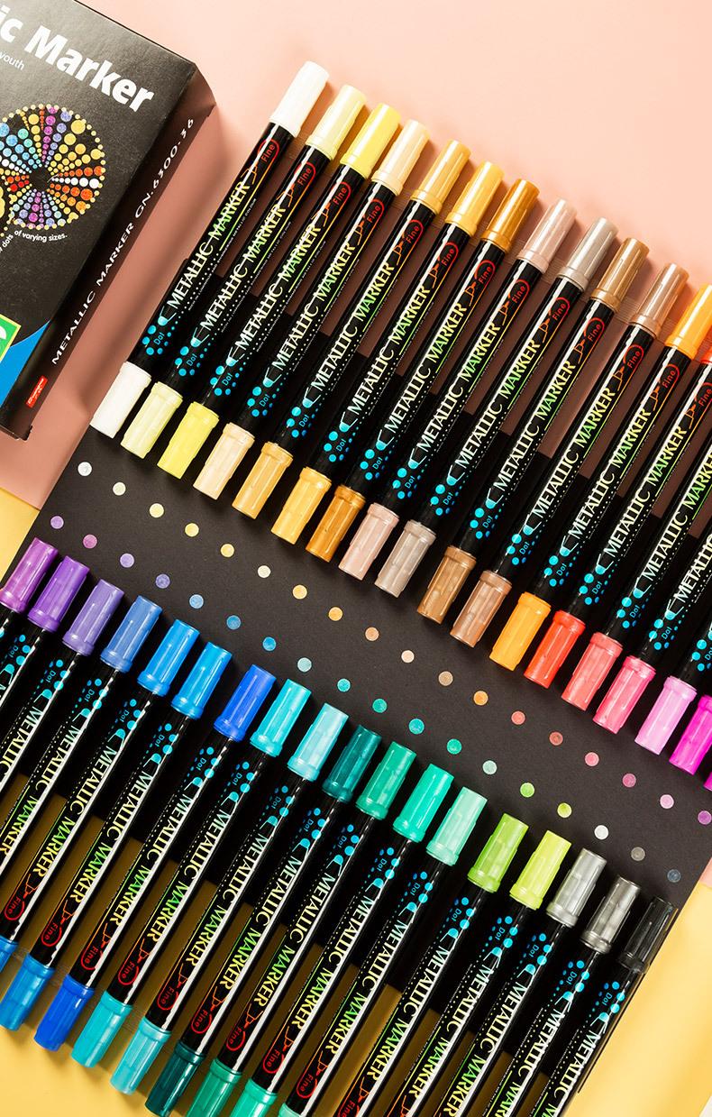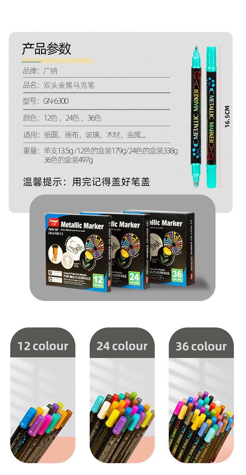 Guangna 6300 - Rotulador metálico de pintura a base de agua de doble cabezal, juego de 36 colores, rotulador de pintura de grafiti pintado a mano de cerámica
