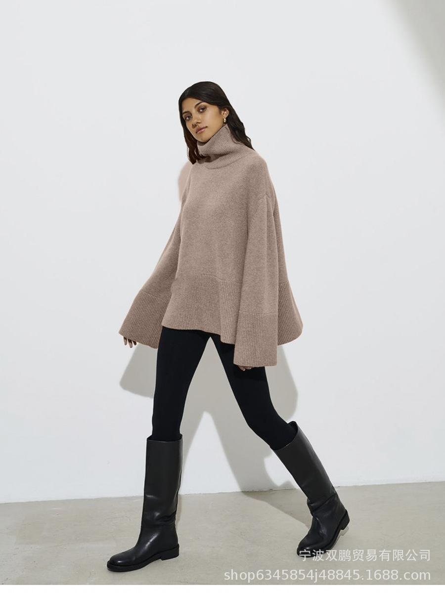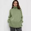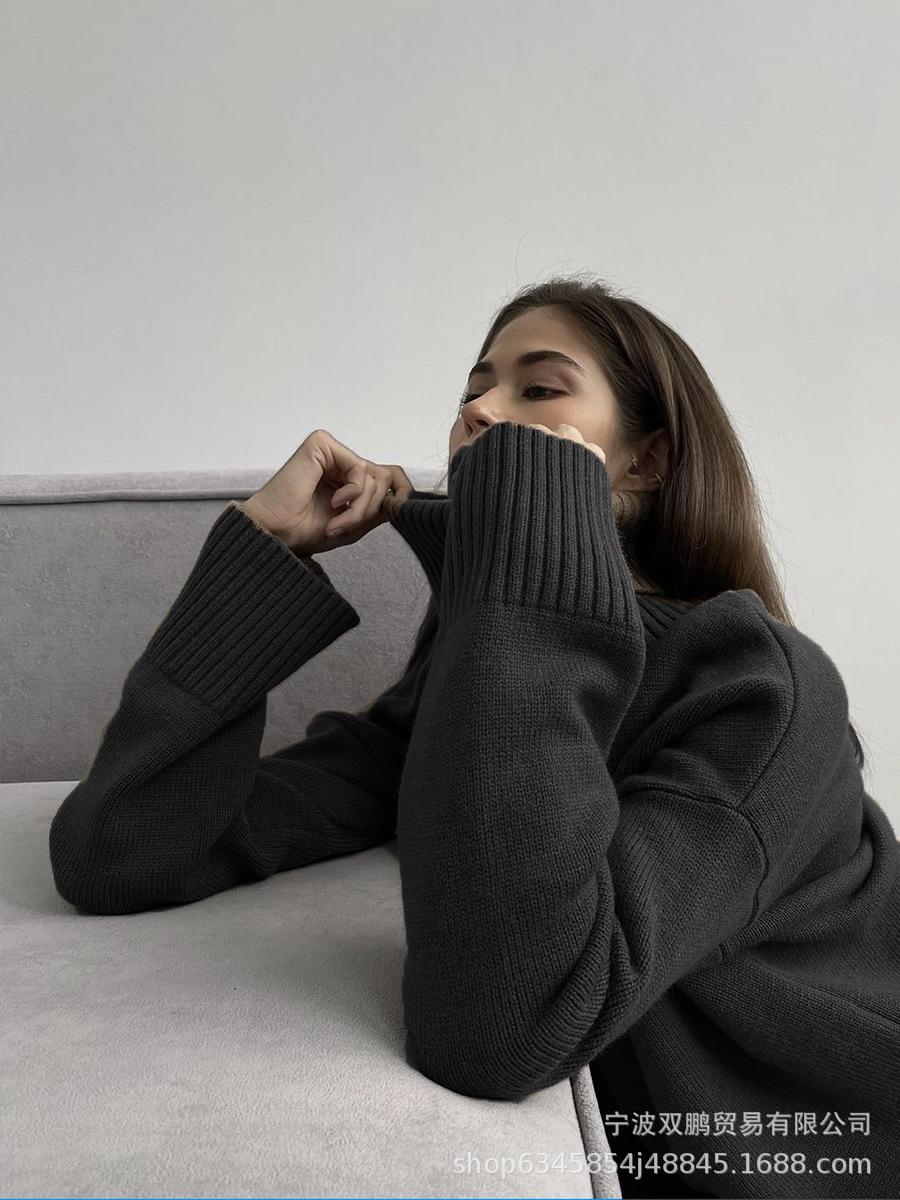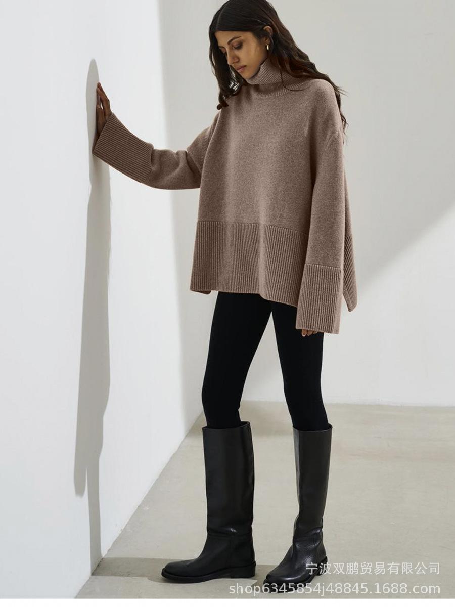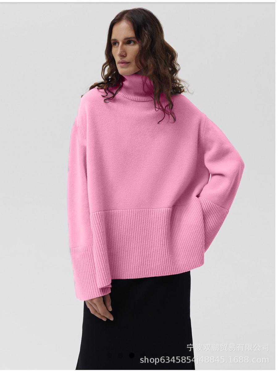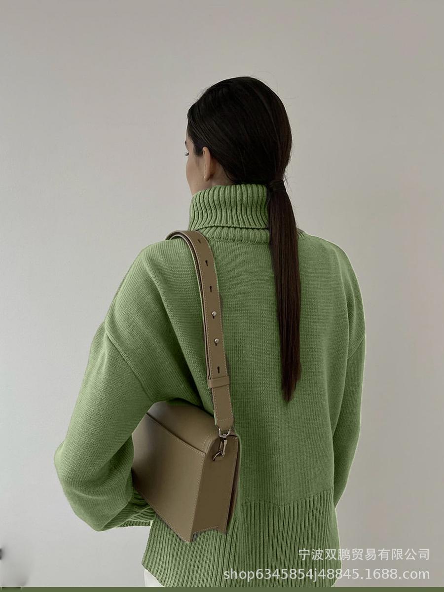 Suéter de punto holgado con abertura nueva para exportación transfronteriza europea y americana 2025, cuello alto holgado de color puro para otoño e invierno para mujer