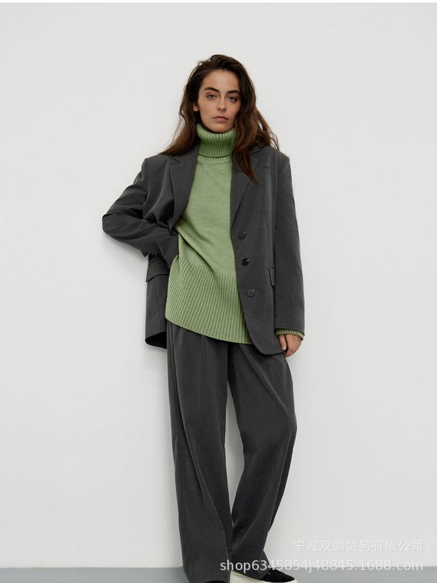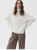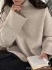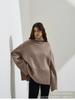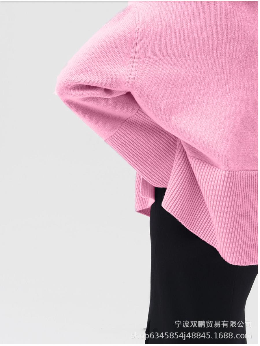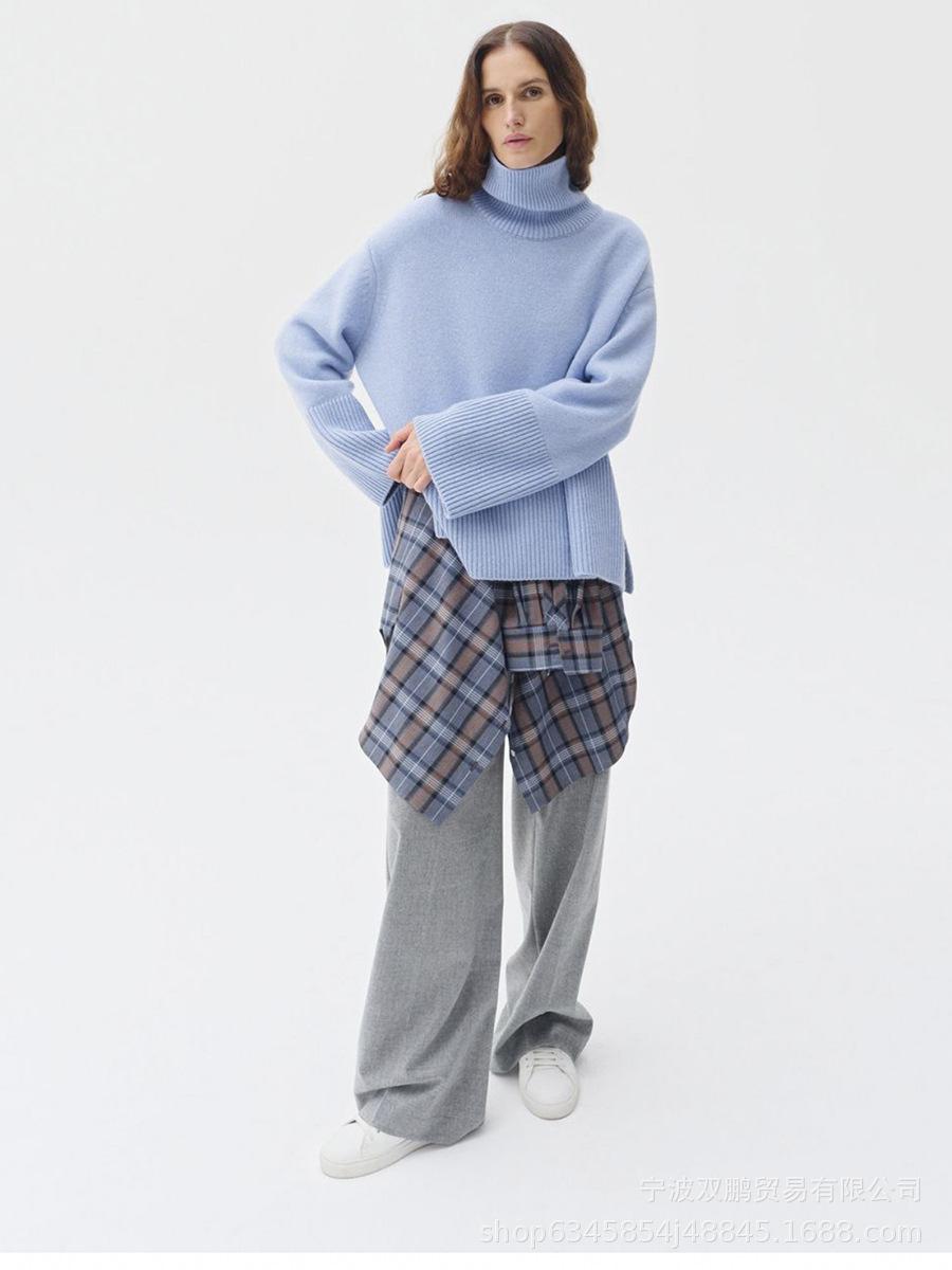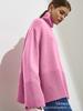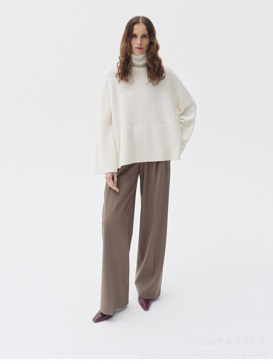Suéter de punto holgado con abertura nueva para exportación transfronteriza europea y americana 2025, cuello alto holgado de color puro para otoño e invierno para mujer