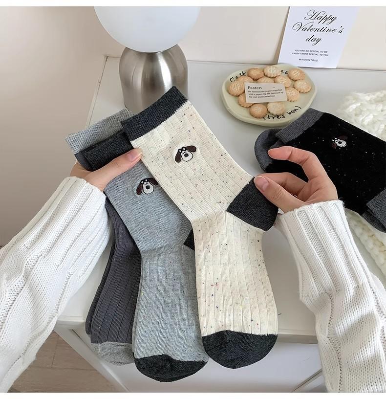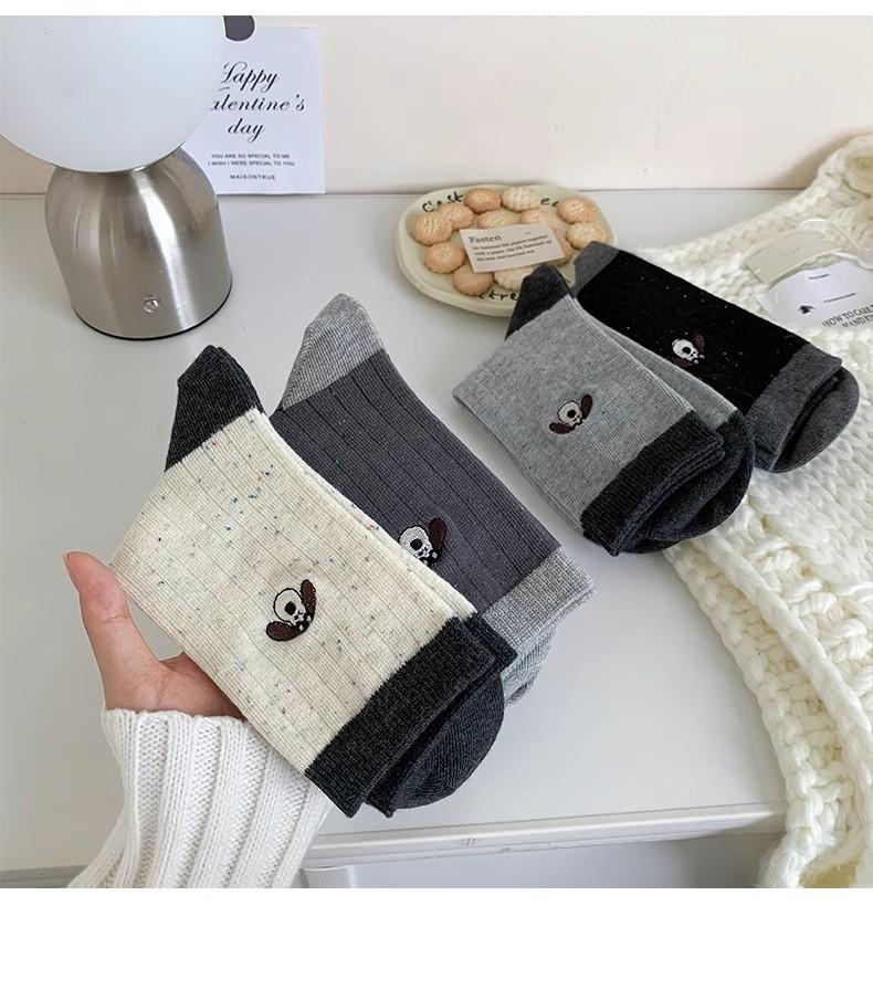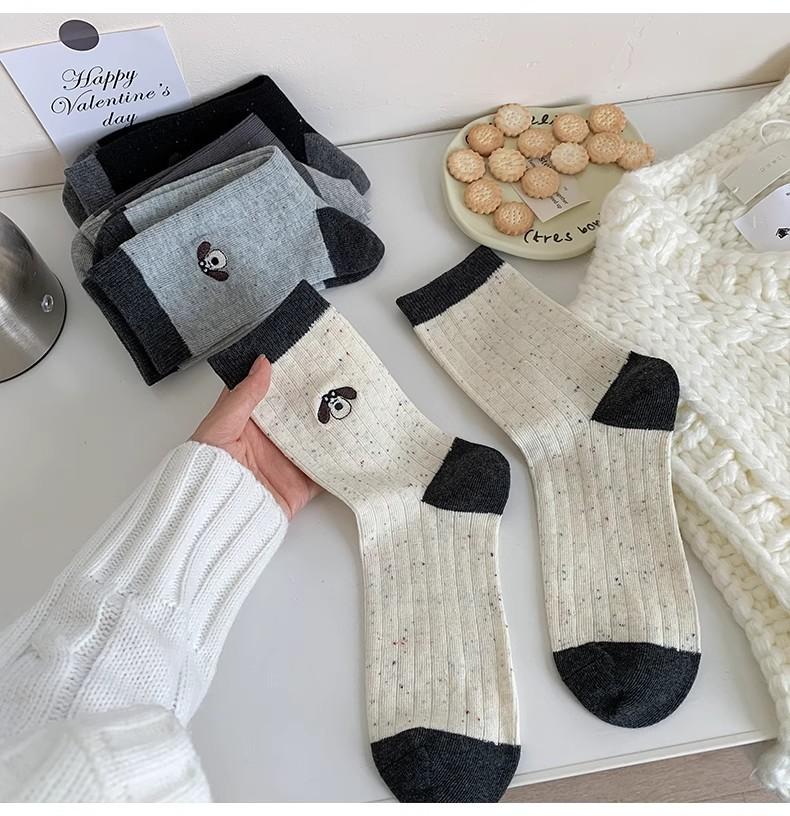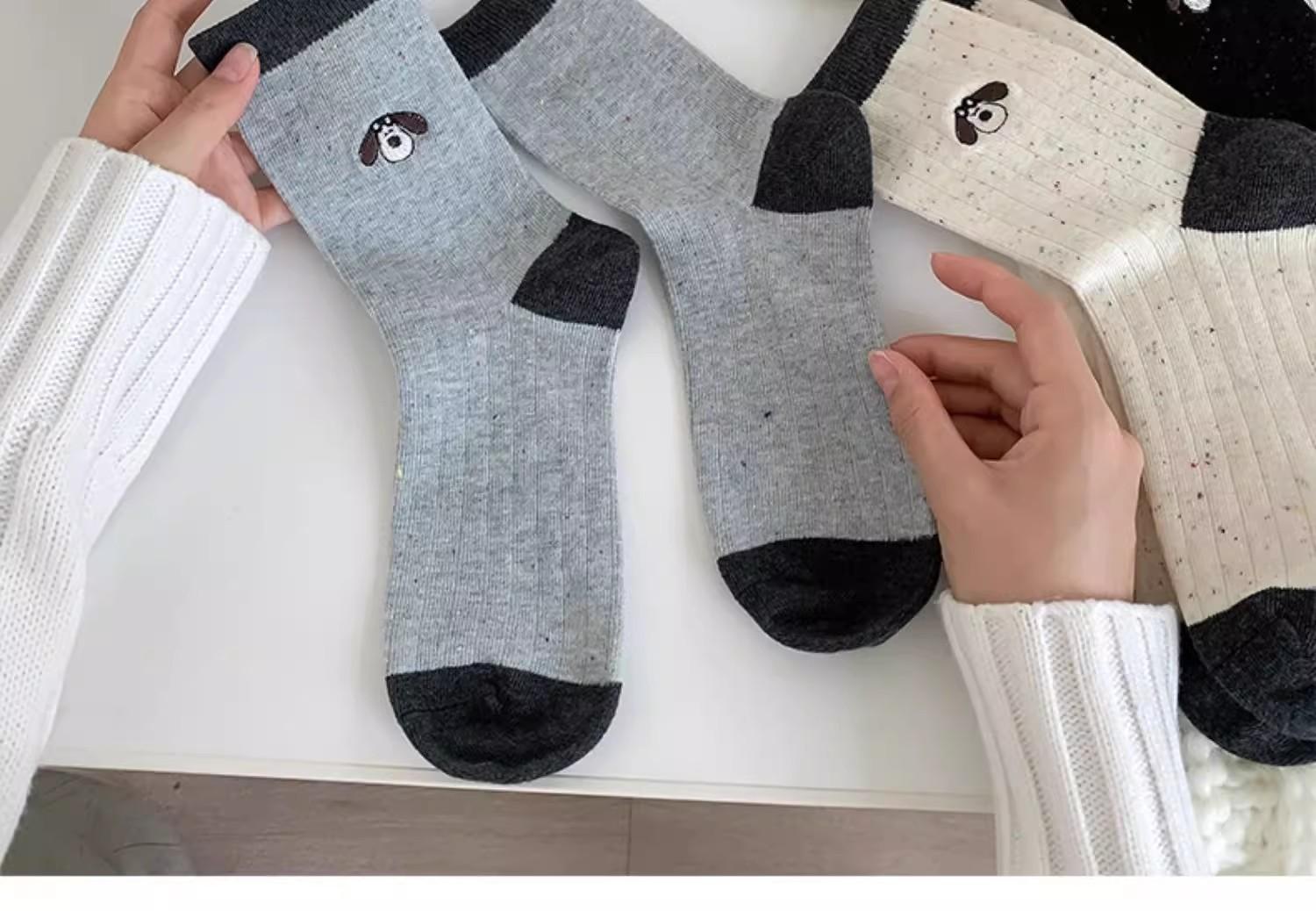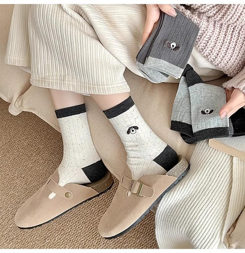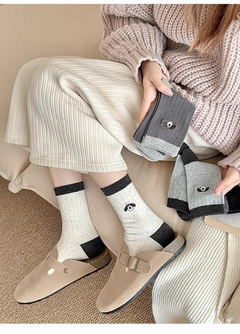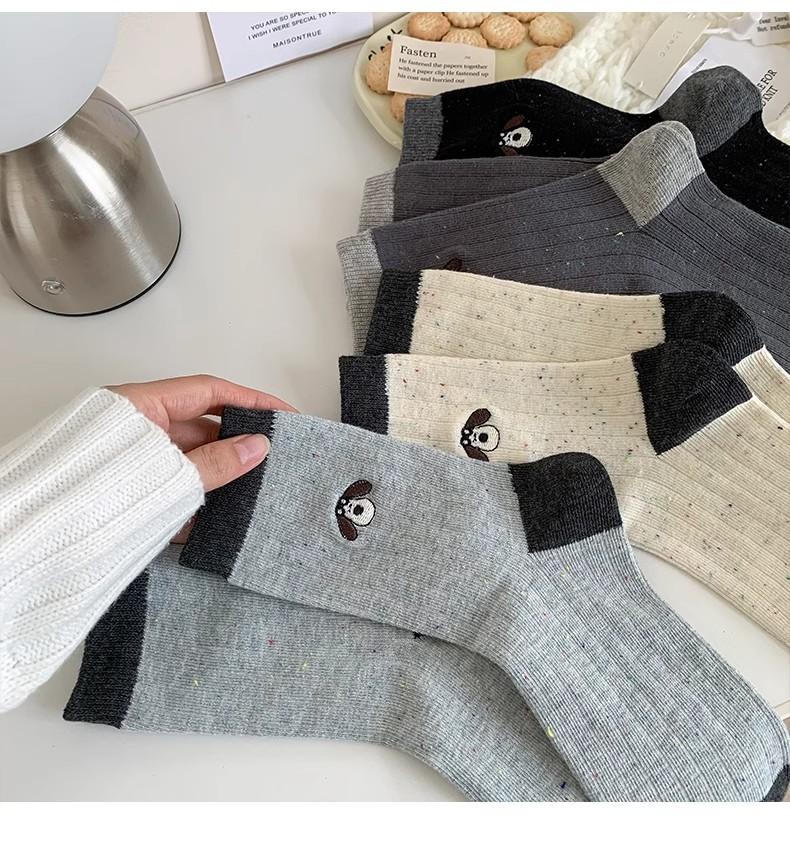 Calcetines de Cachorro de Hilo Puntiagudo Calcetines de Media Caña para Mujer Calcetines Ins de Moda de Primavera y Otoño Calcetines de Dibujos Animados de Estilo Japonés Calcetines Grises de Otoño e Invierno