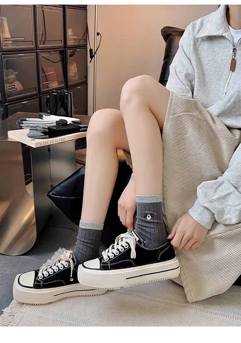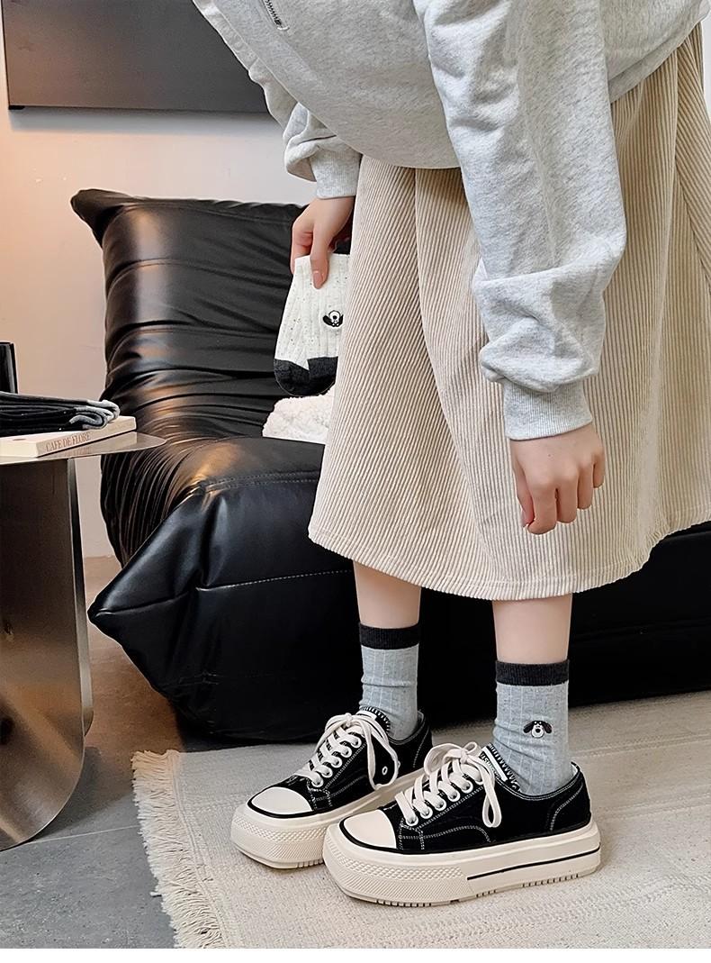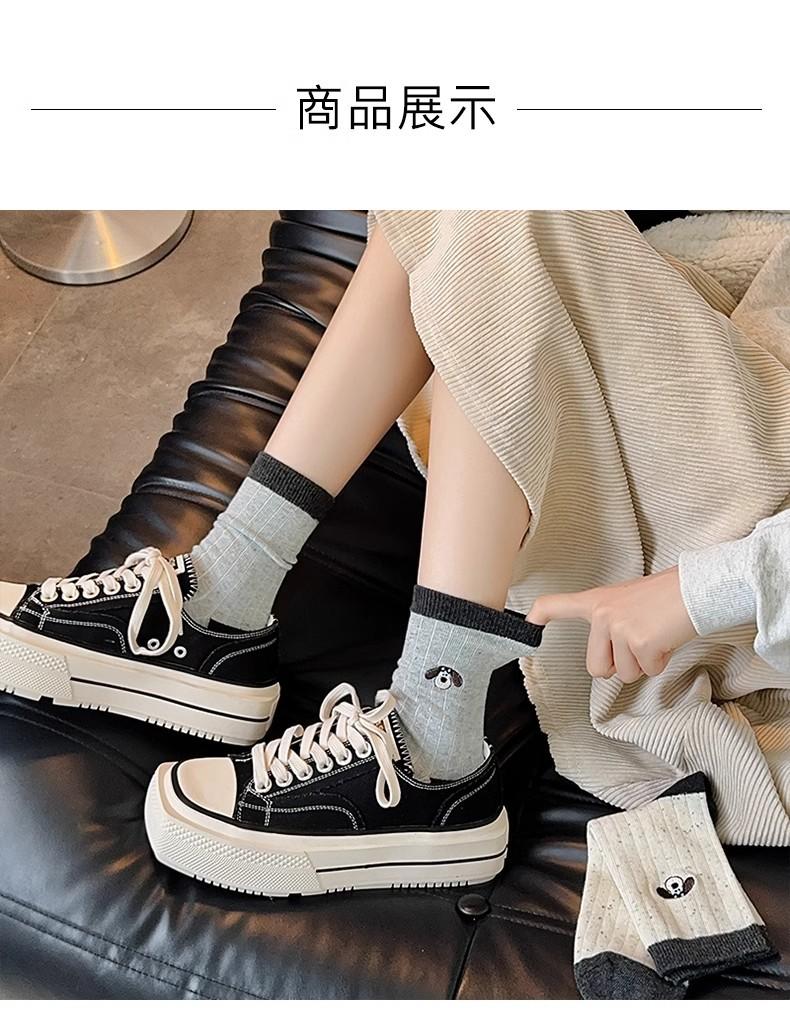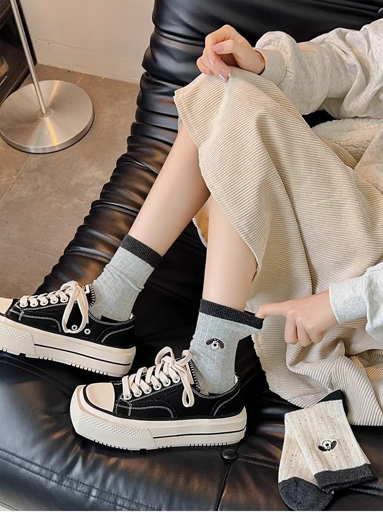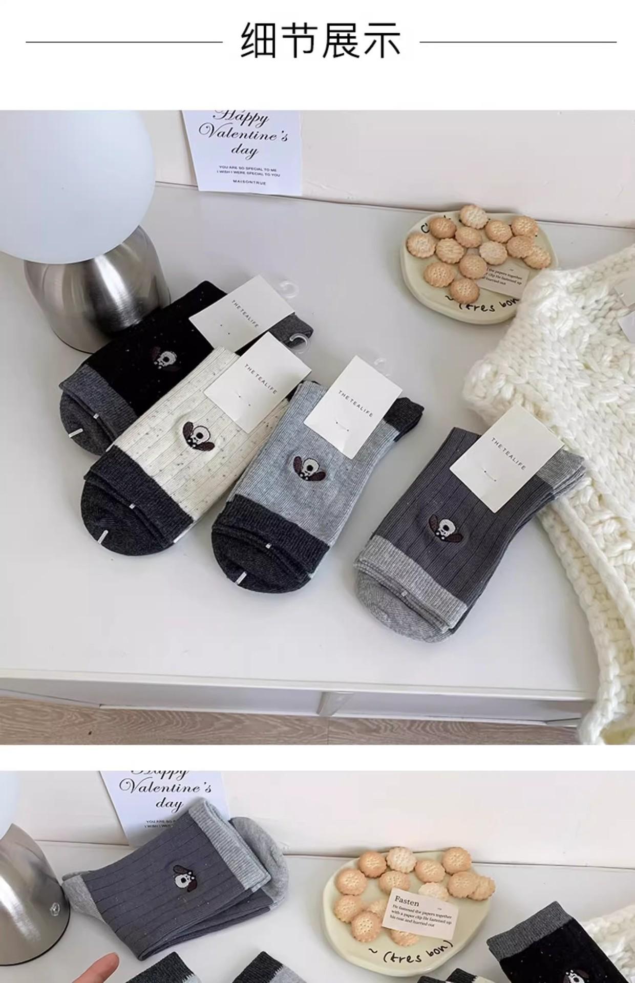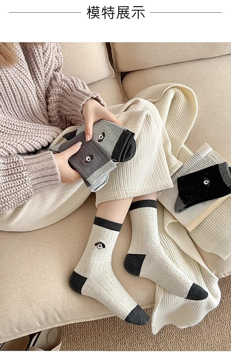 Calcetines de Cachorro de Hilo Puntiagudo Calcetines de Media Caña para Mujer Calcetines Ins de Moda de Primavera y Otoño Calcetines de Dibujos Animados de Estilo Japonés Calcetines Grises de Otoño e Invierno