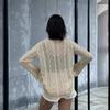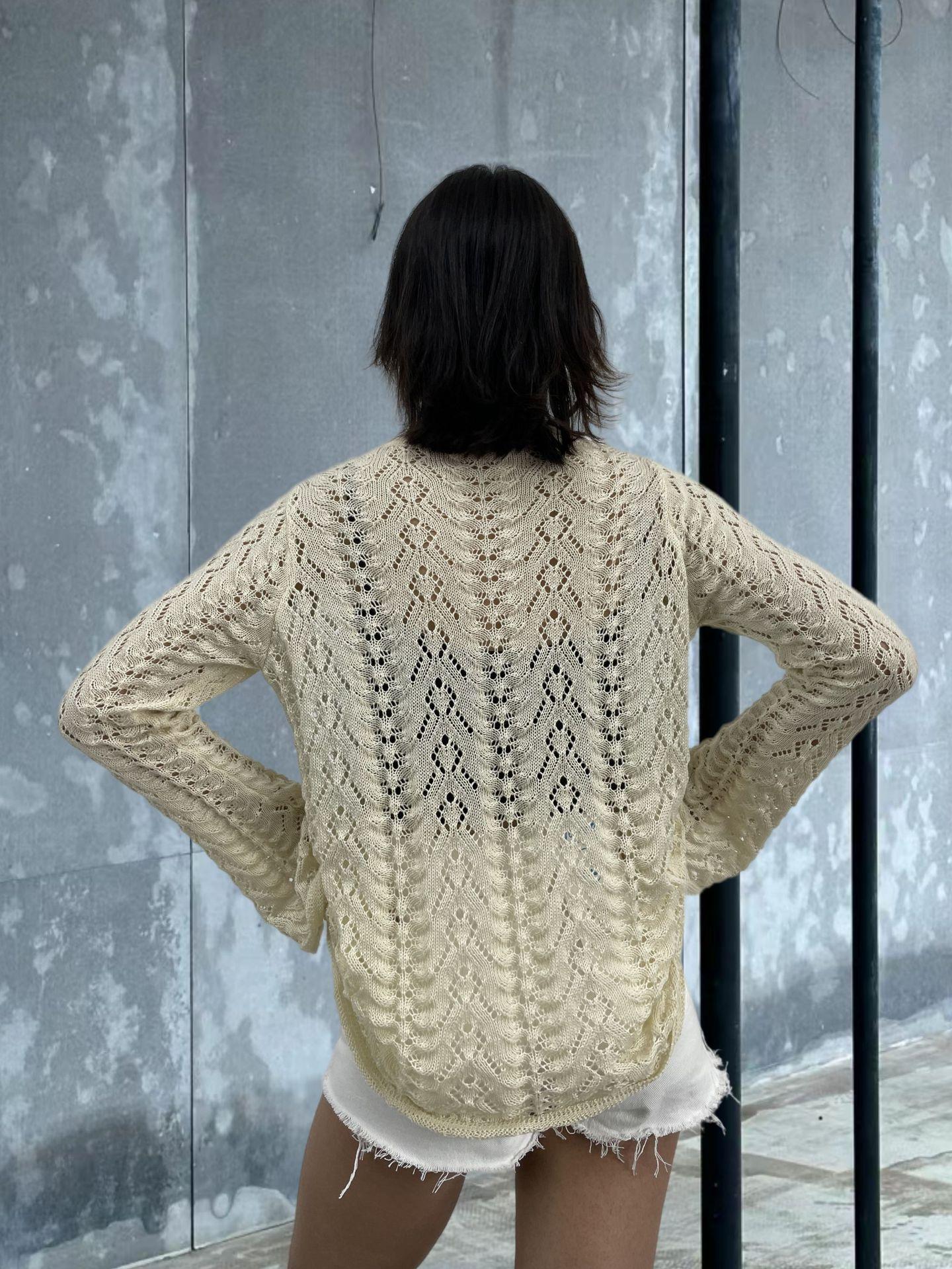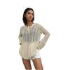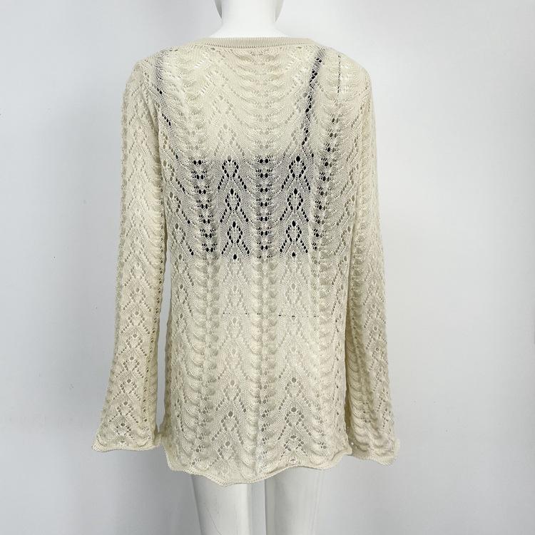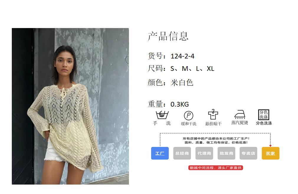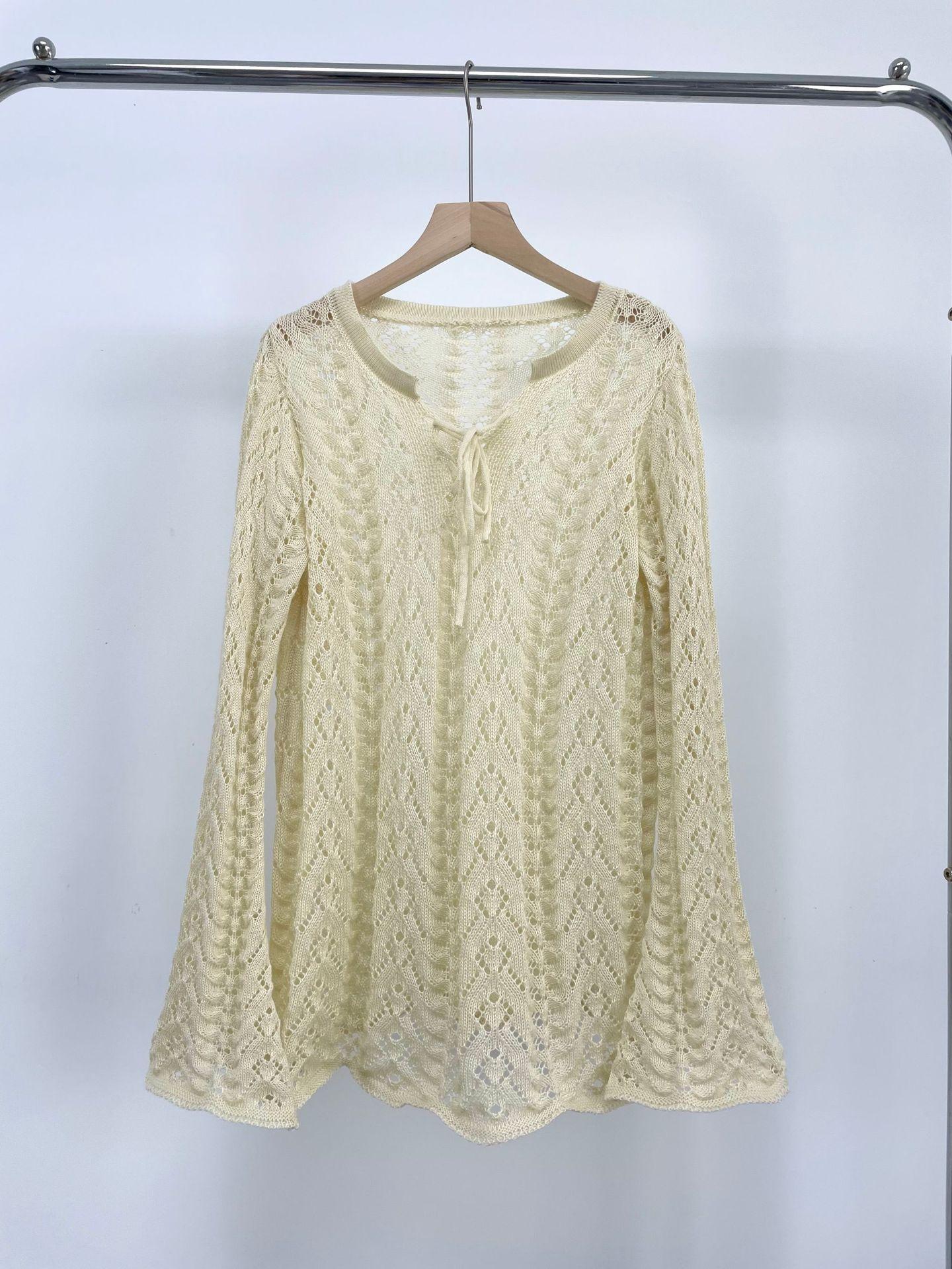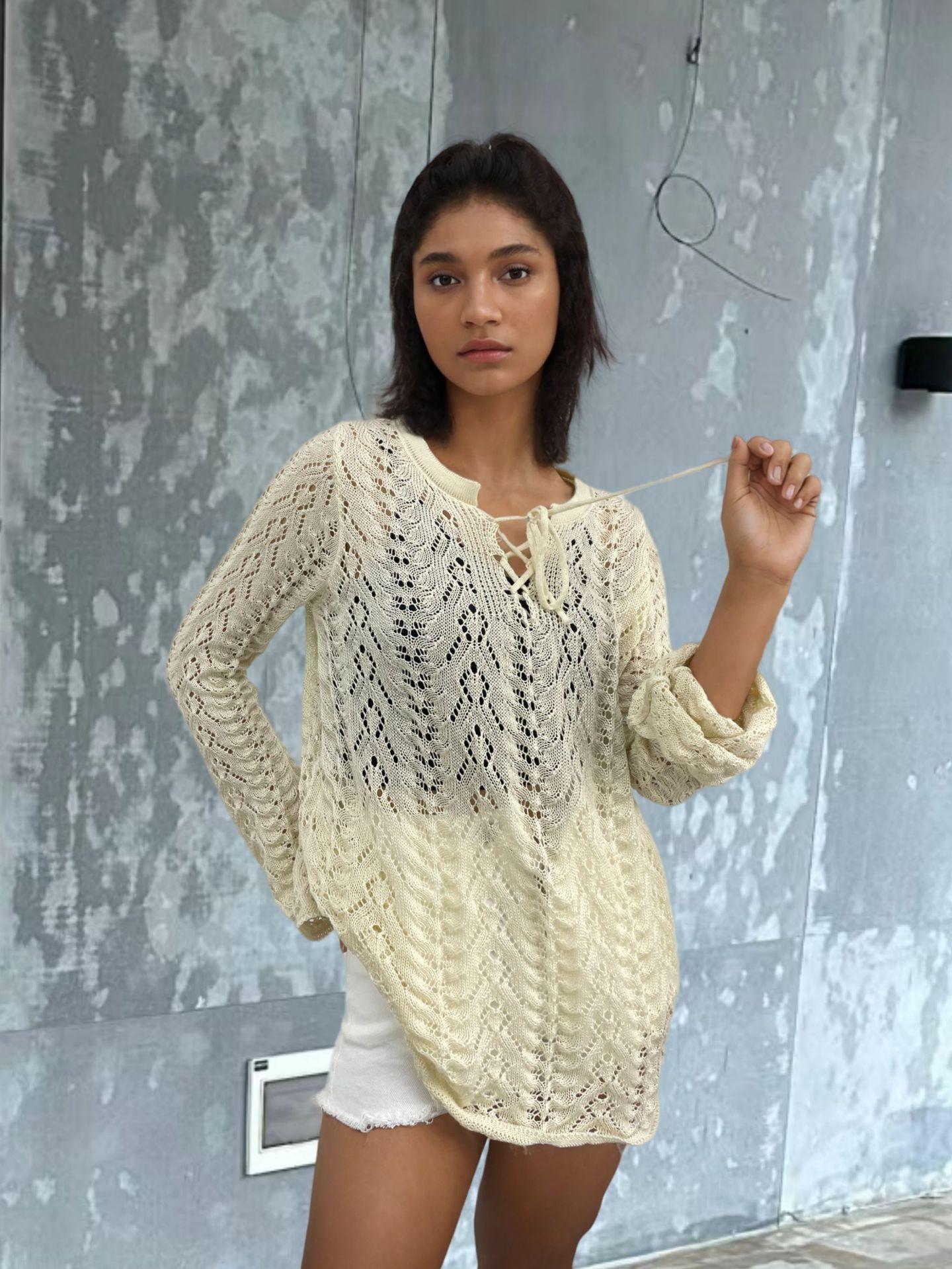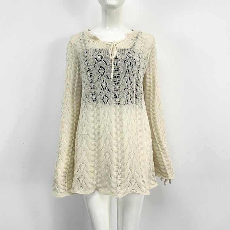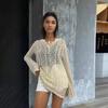 Vacaciones de Playa Transfronterizas Protector Solar Bikini Blusa Suéter de Punto Calado Amazon Cuello en V Vestido con Cordones Mujer