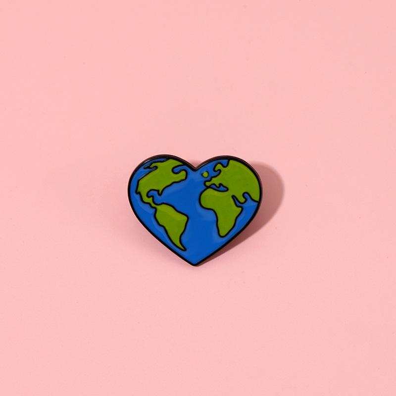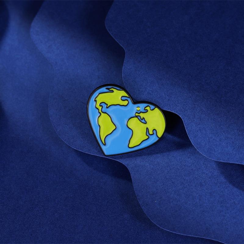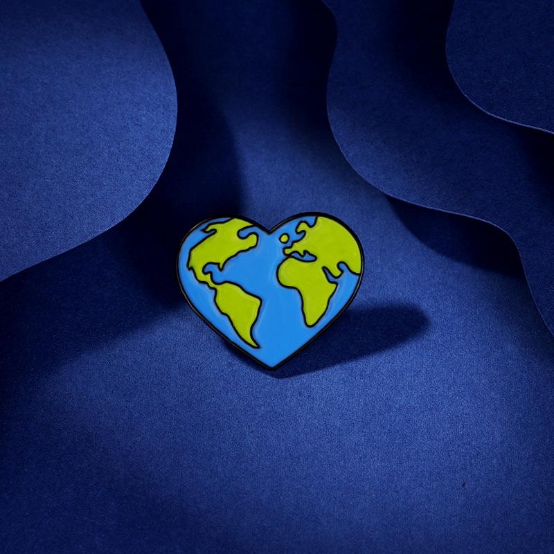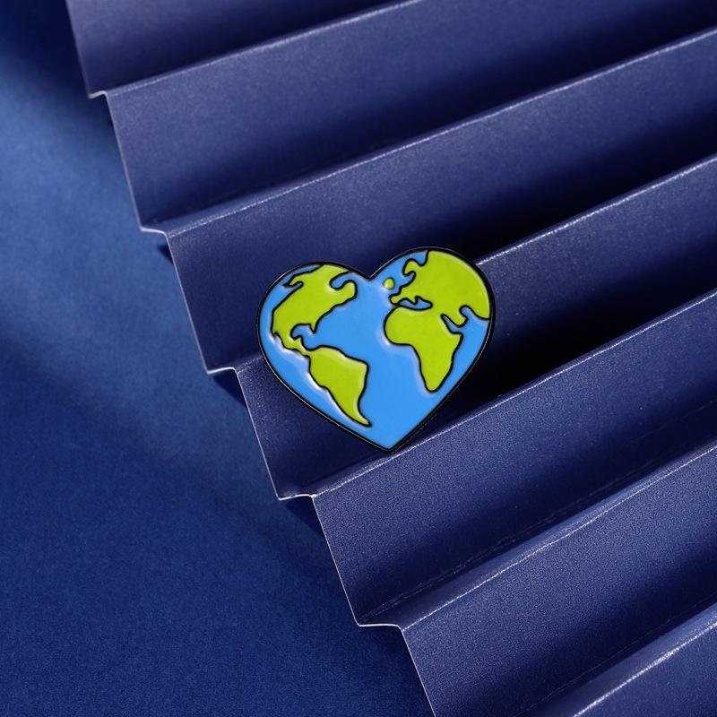Comercio Exterior Nuevo Producto Broche de Aleación con Forma de Corazón Azul para Proteger la Tierra Pin Insignia Decoración de Ropa Bolso