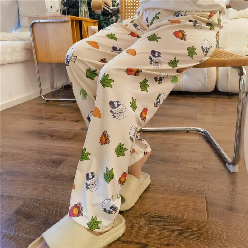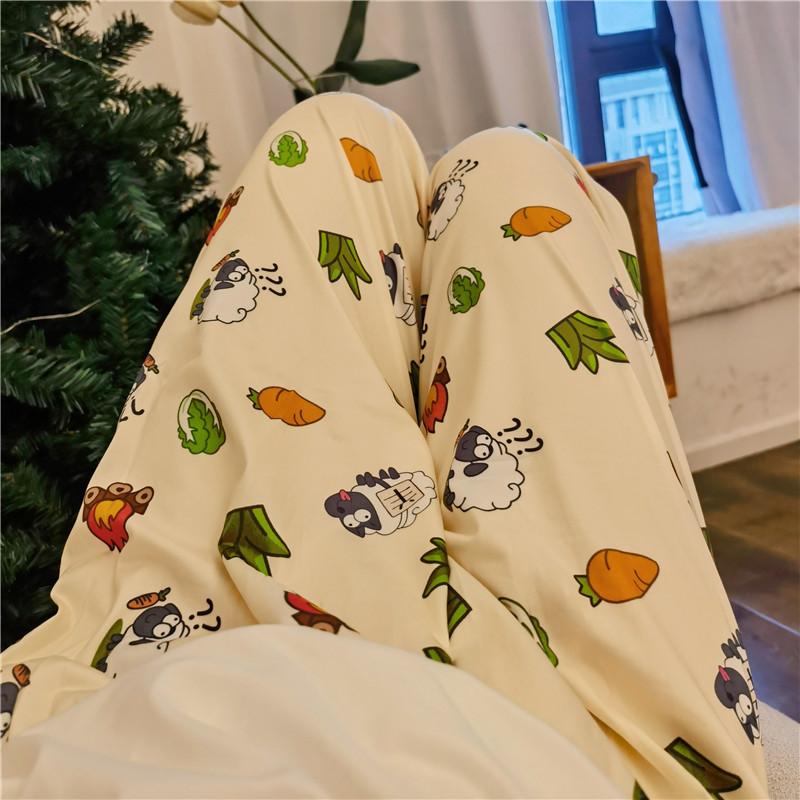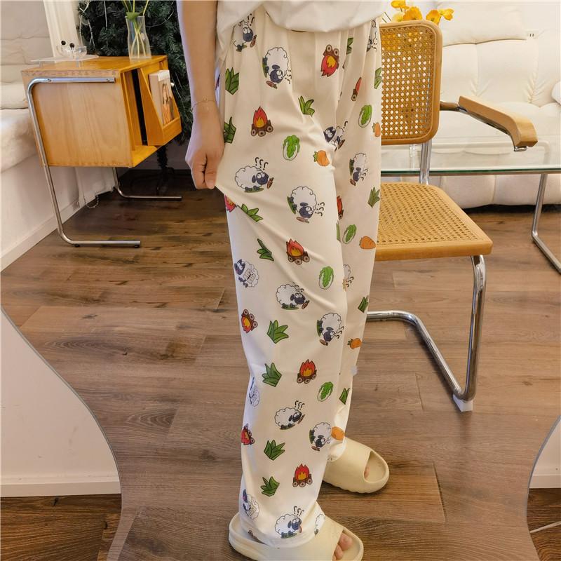Pantalones para caminar, pantalones de pijama para mujer, sueltos, primavera y otoño, nuevos pantalones de aire acondicionado de verano para el hogar con dibujos animados de cordero, se pueden usar al aire libre