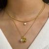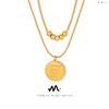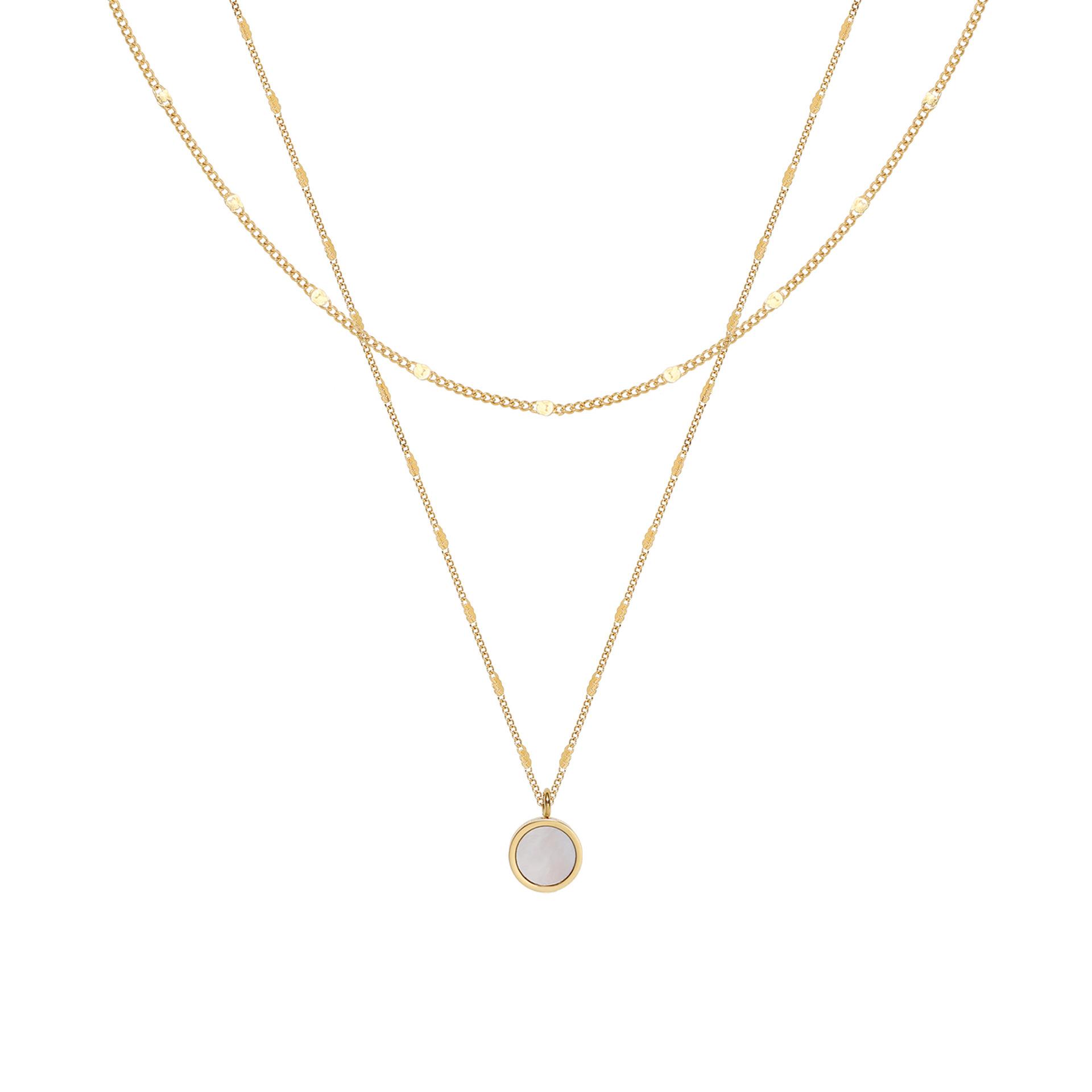 Collar transfronterizo europeo y americano para mujer, cadena de clavícula redonda de concha blanca de doble capa que no se decolora, colgante de oro de 18 quilates chapado en acero de titanio para mujer