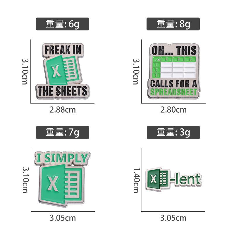 Exquisito Broche de Aleación Serie Niche Excel Form Diseño Accesorios Insignia de Aprendizaje Estilo Frío Personalizado