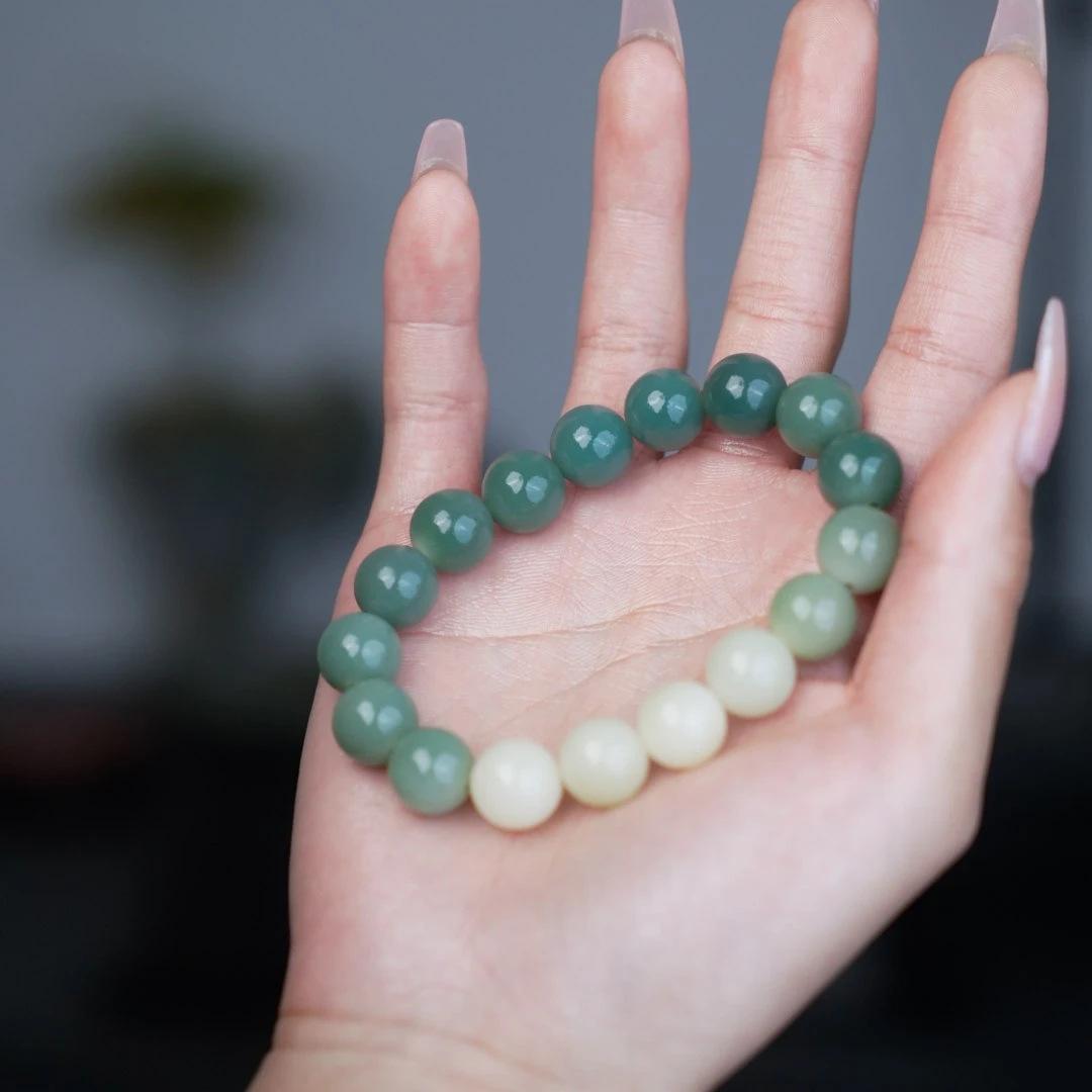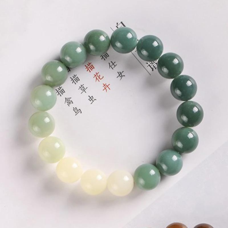 Pulsera de Círculo Único de Raíz de Bodhi Verde Degradado Envejecido Cuentas de Bodhi de Jade Blanco Pulseras para Hombre y Mujer para Puestos Precio al por Mayor