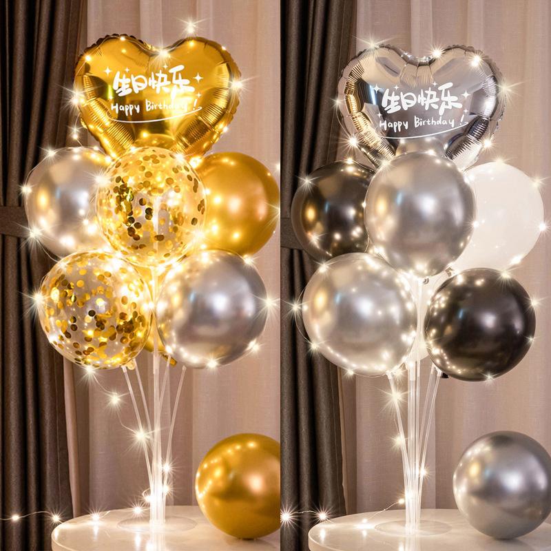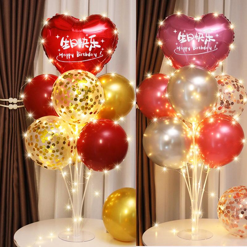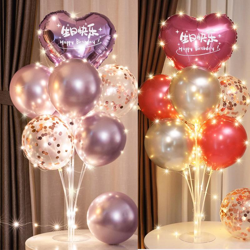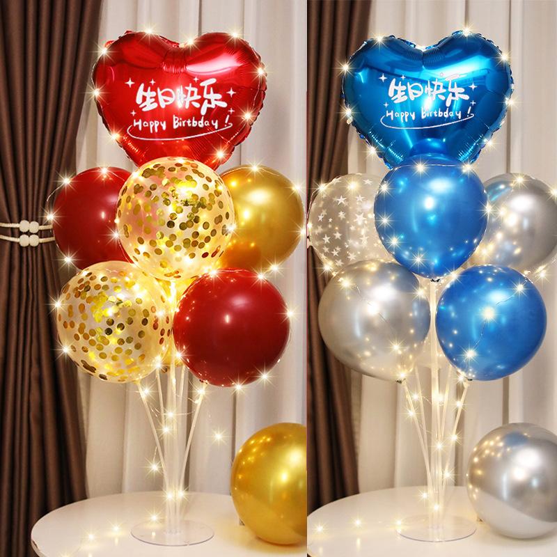 Mesa luminosa flotante para niños, decoración de feliz cumpleaños para bebés, diseño de escena, columna de mesa, cara sonriente, globo de amor, soporte
