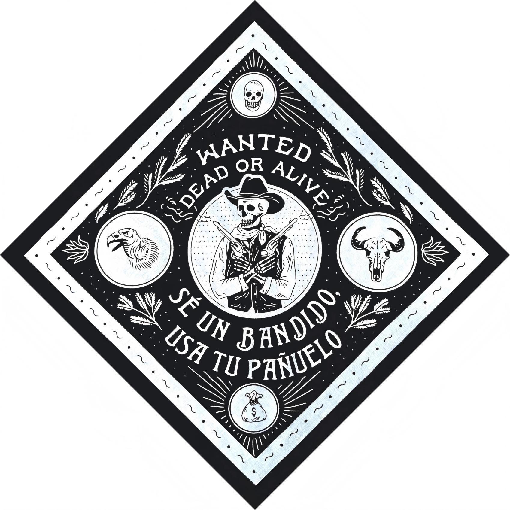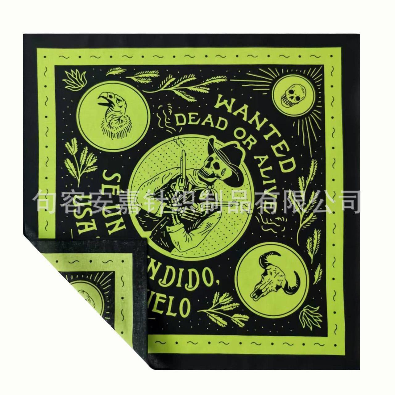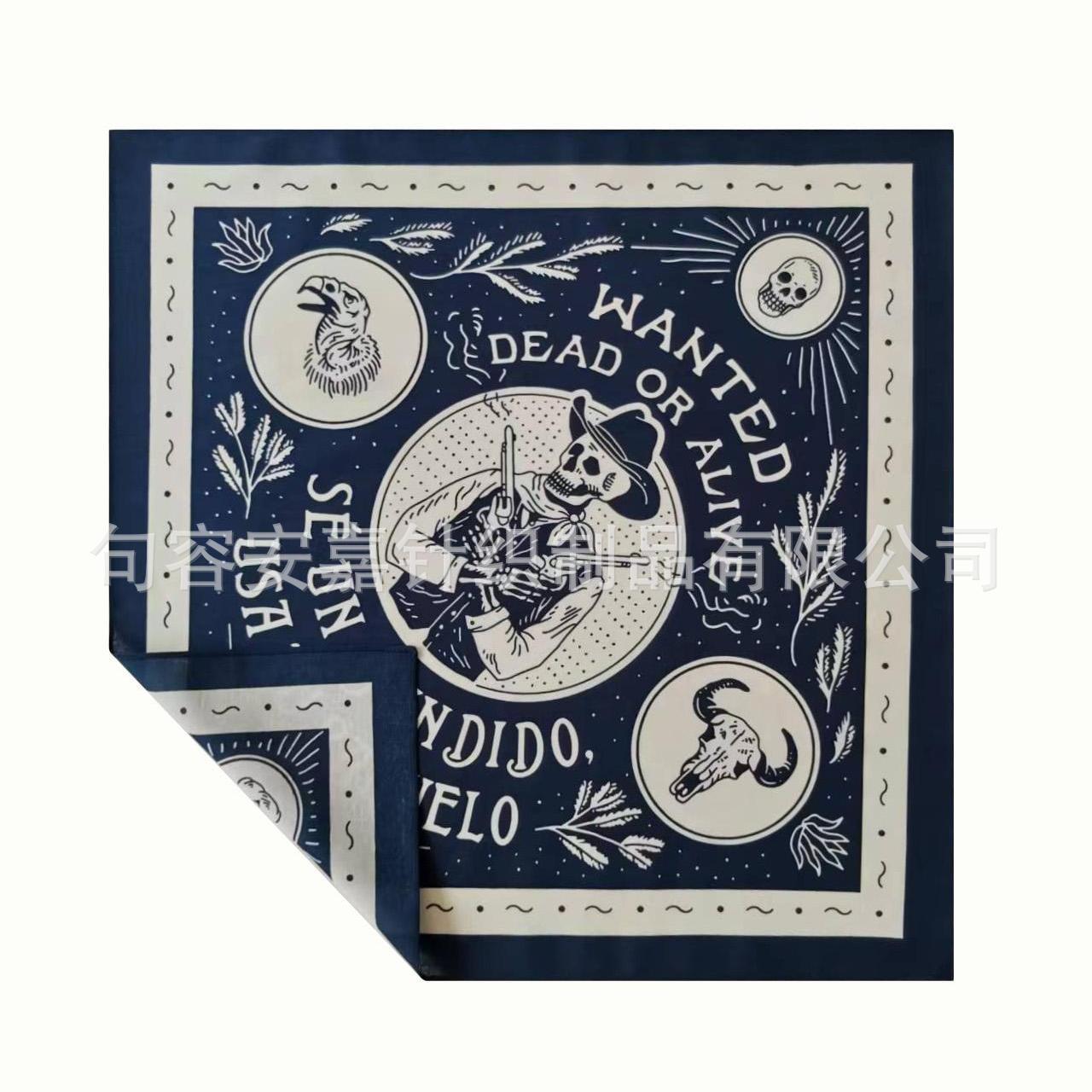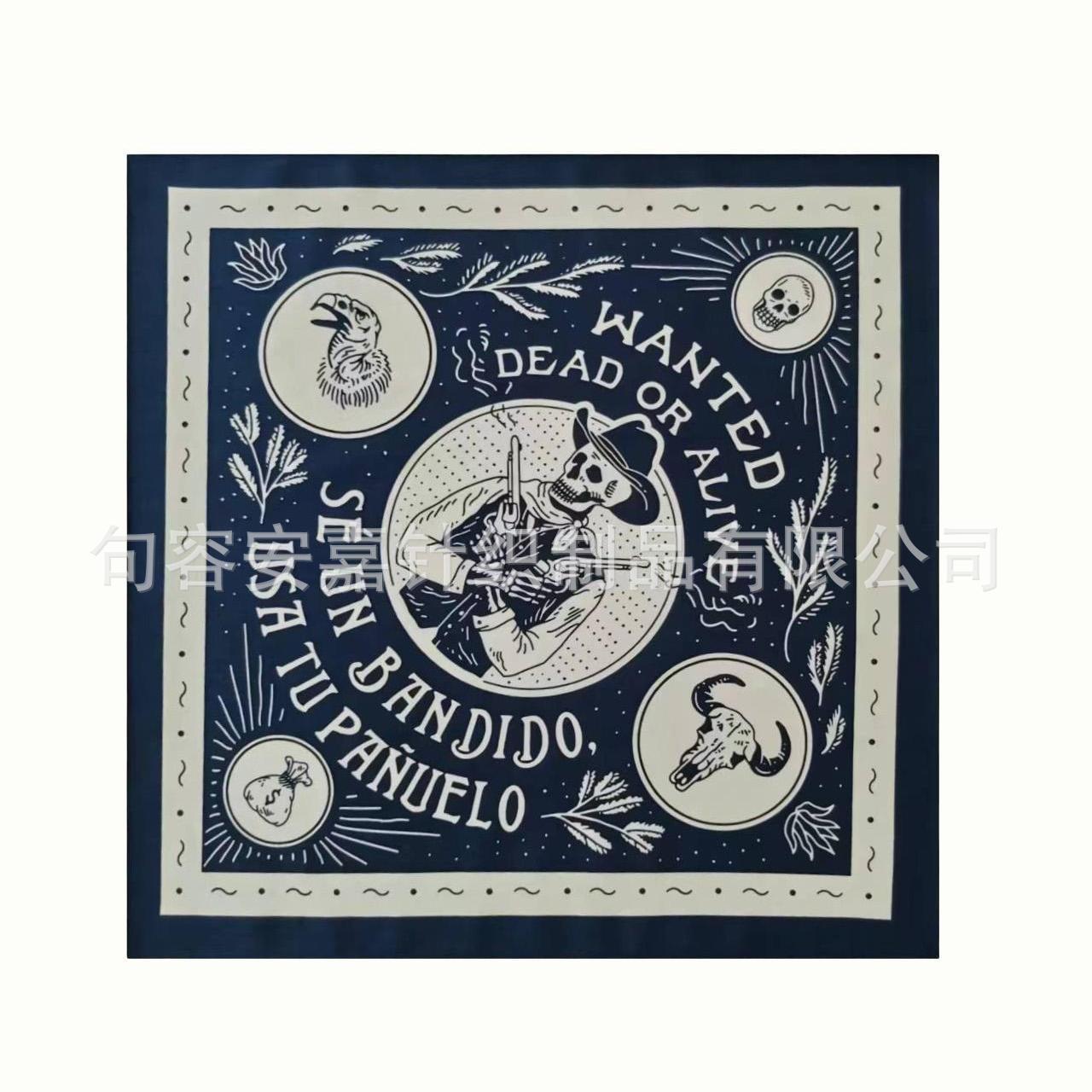 Pañuelo de algodón Calavera Denim Pañuelo Cuadrado Casual para Exterior Motociclismo Diadema Vestido Hip Hop Pañuelo para la Cara