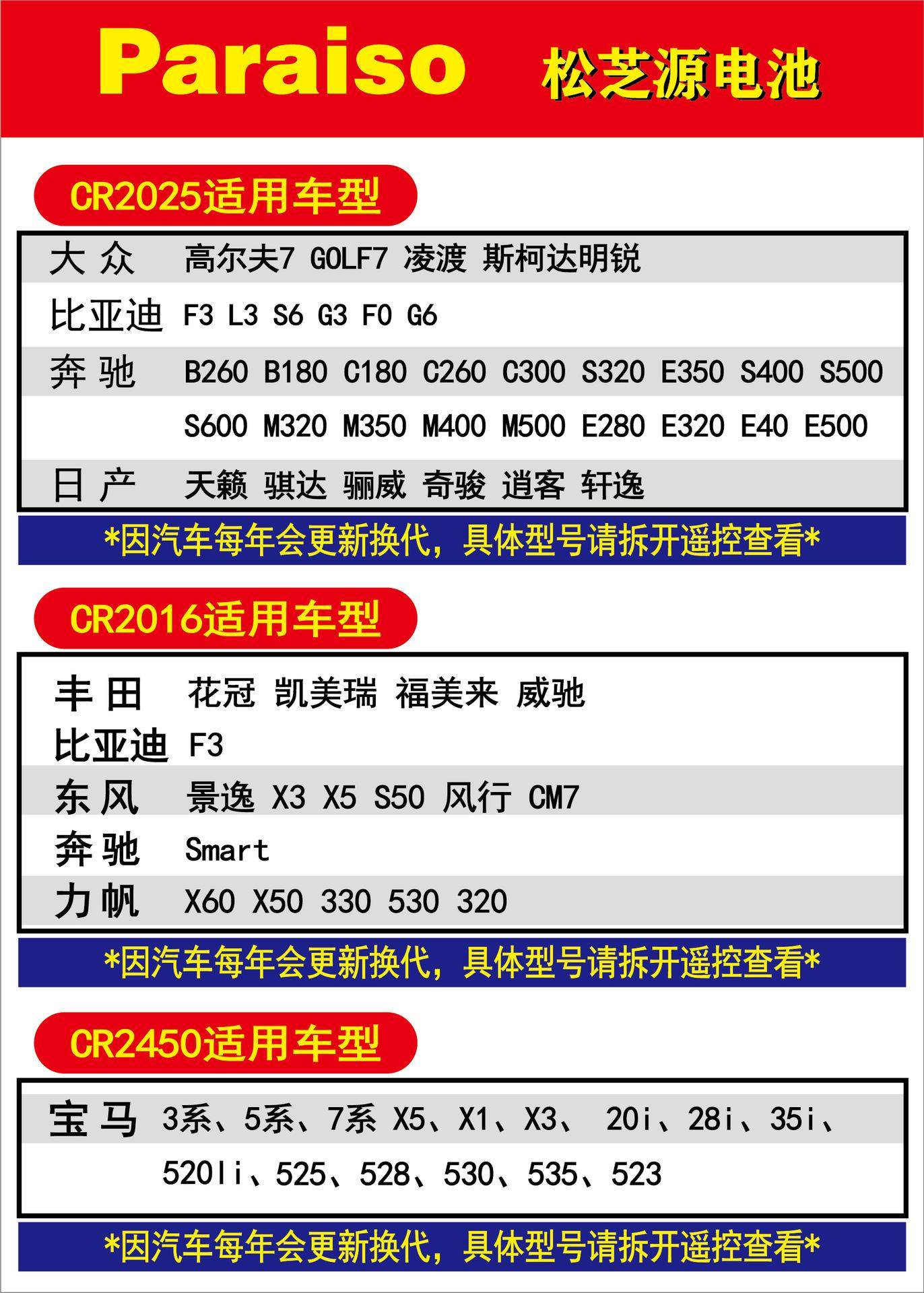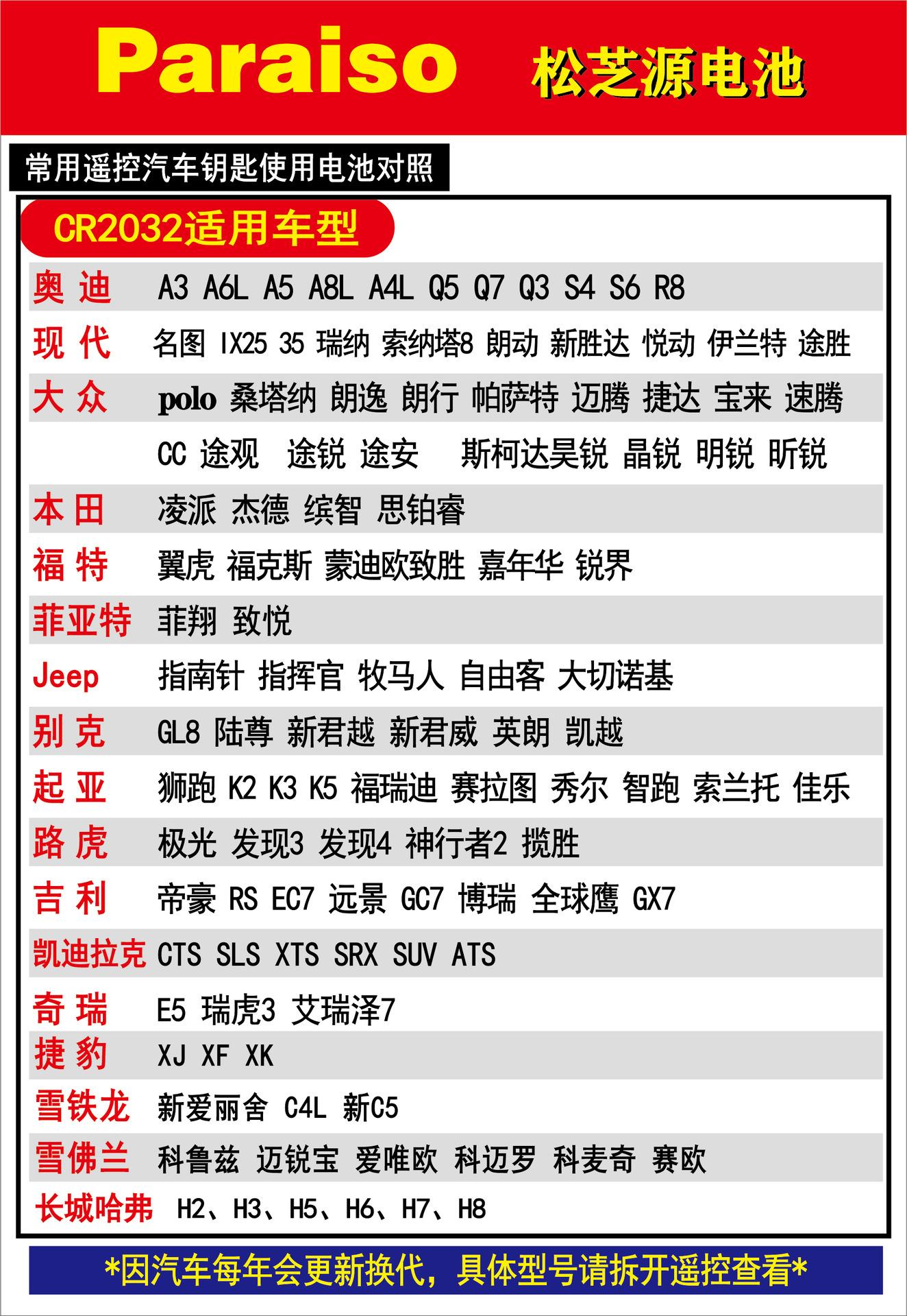 Paraiso/Songzhiyuan CR2032 CR2025 CR2016 batería de botón para control remoto de llave de coche