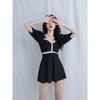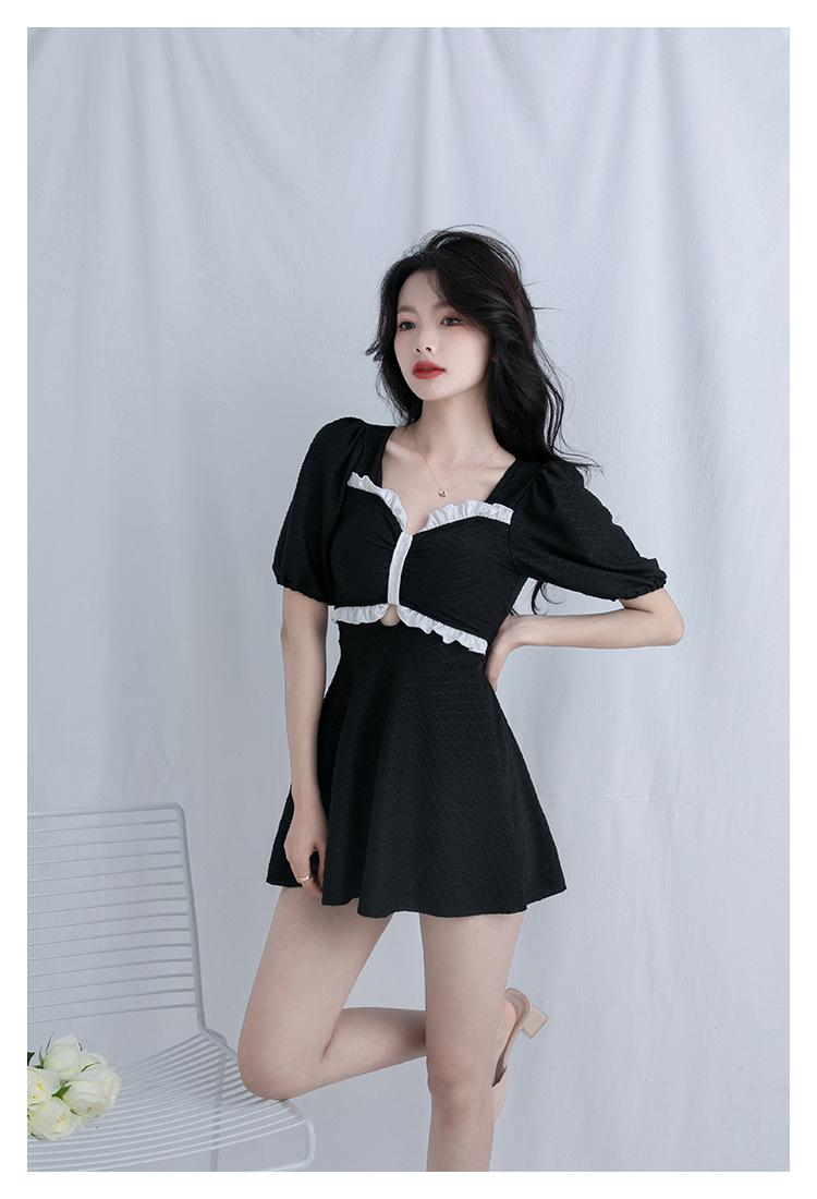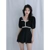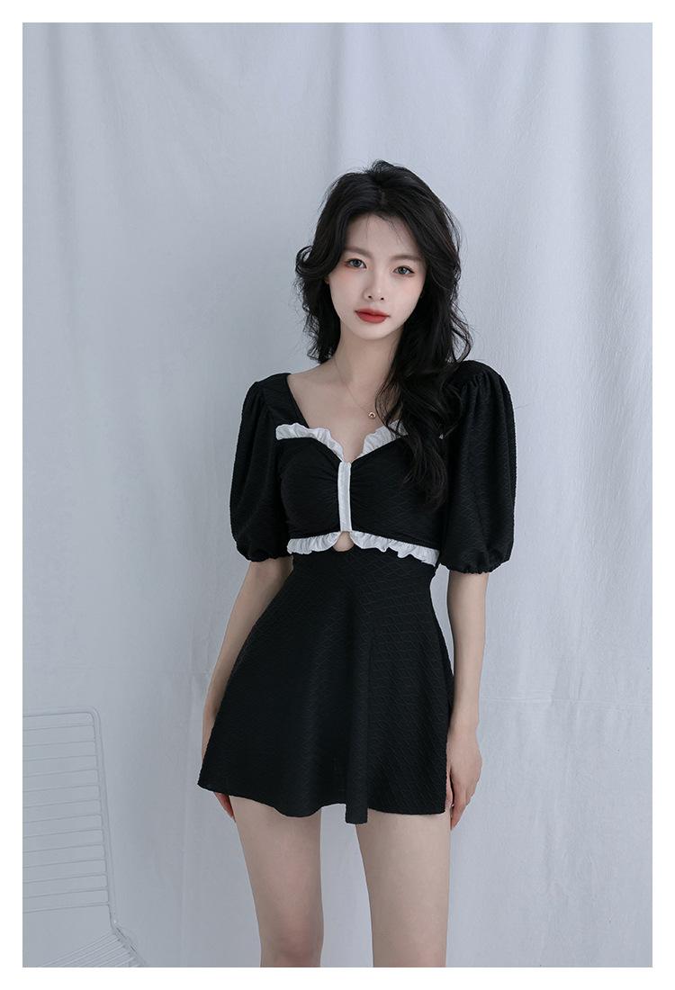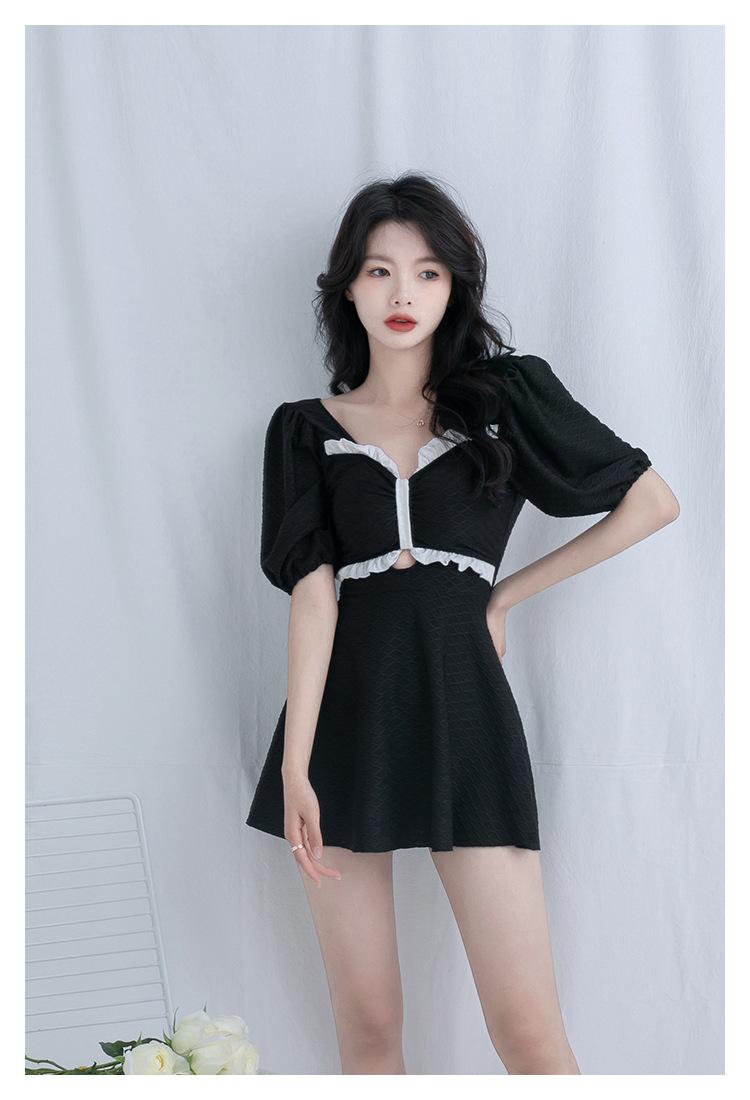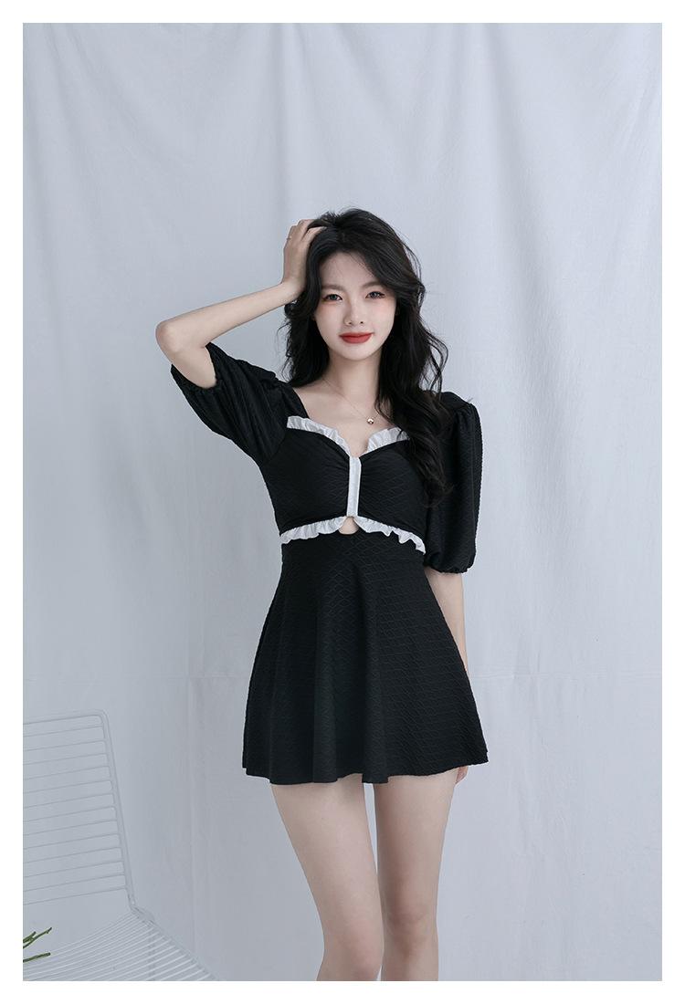 Traje de baño negro nuevo 2025 para mujer, de una pieza, falda, cubre abdomen, adelgazante, moda de aguas termales, traje de baño ins al por mayor