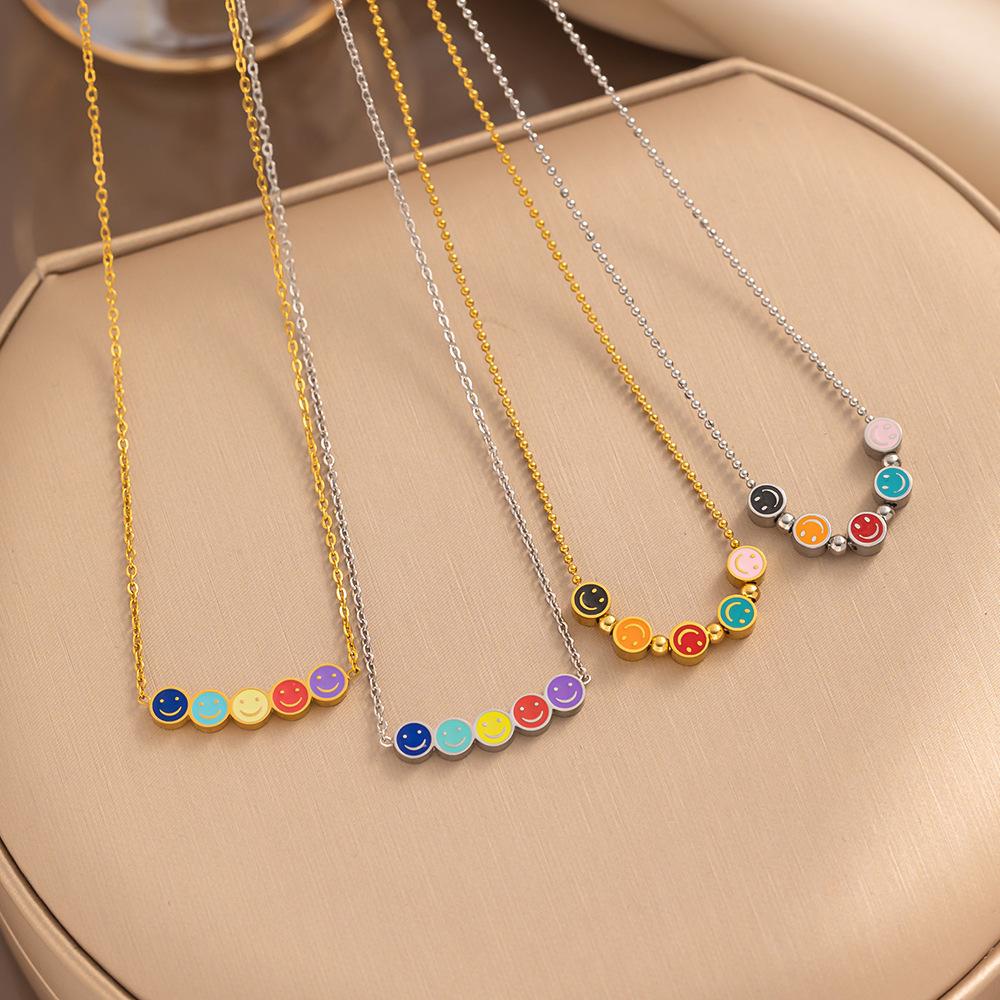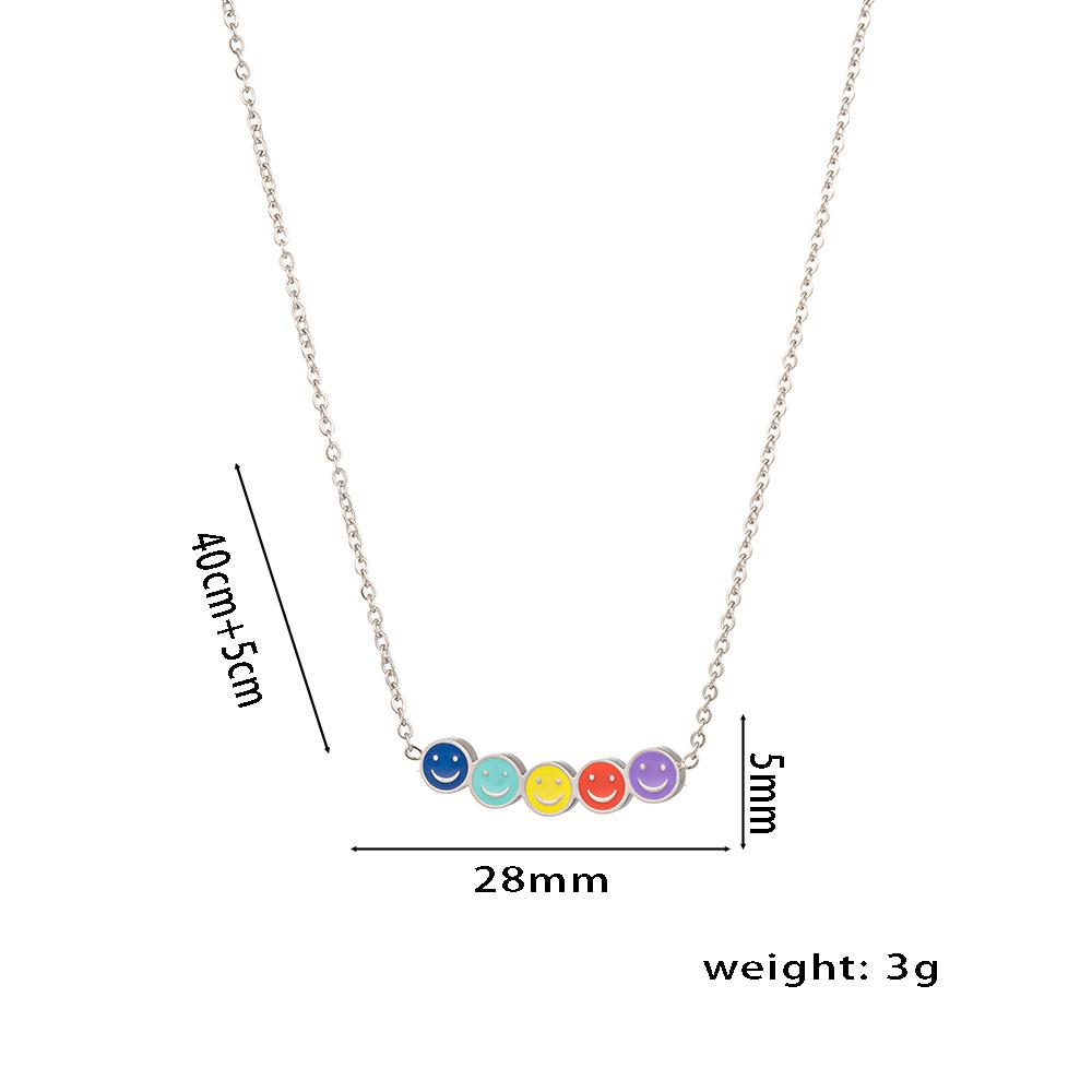 Collar Mini Colorido de Carita Sonriente para Mujer Acero de Titanio Arcoíris Carita Sonriente Cadena Clavícula Colgante Nicho de Alta Gama que No se Desvanece