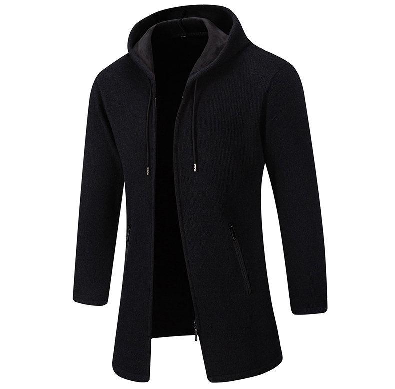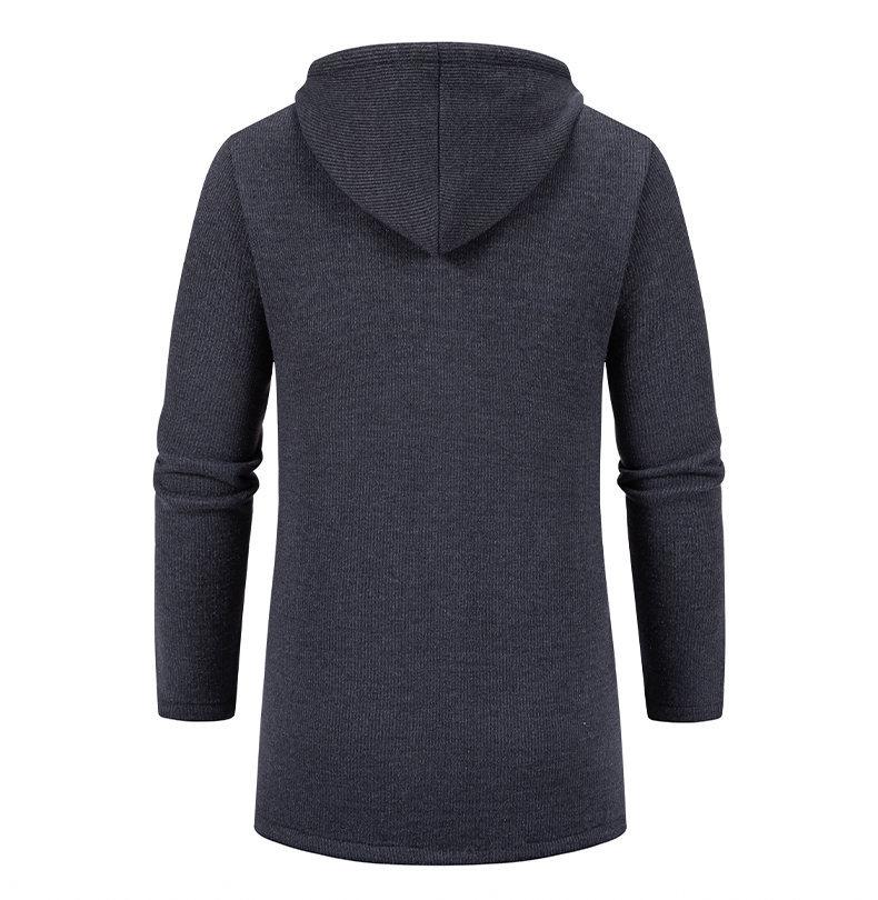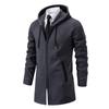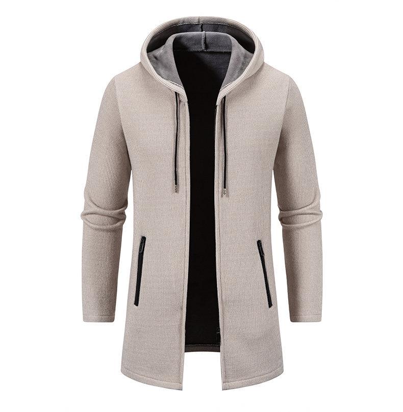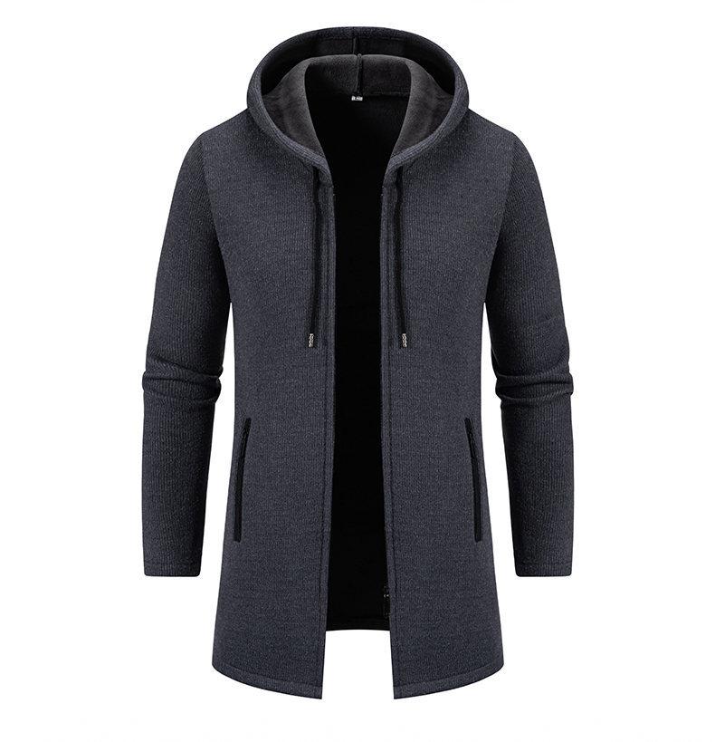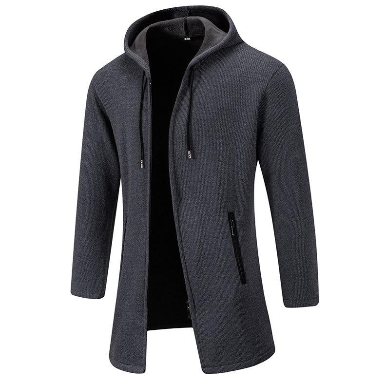 Chaqueta de suéter para hombre nueva de otoño e invierno de comercio exterior, abrigo largo, suéter con capucha forrado de polar de color sólido, abrigo para hombre