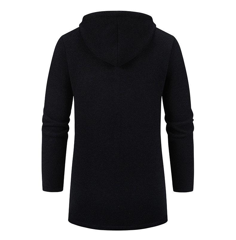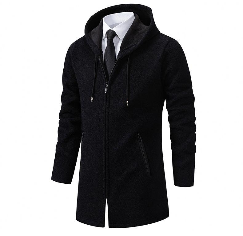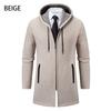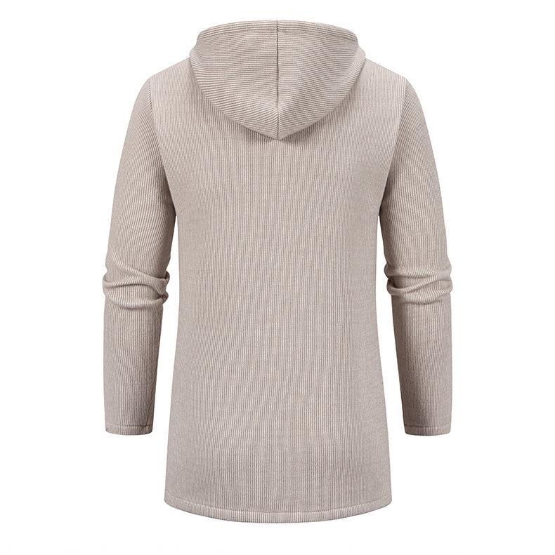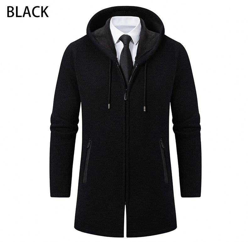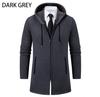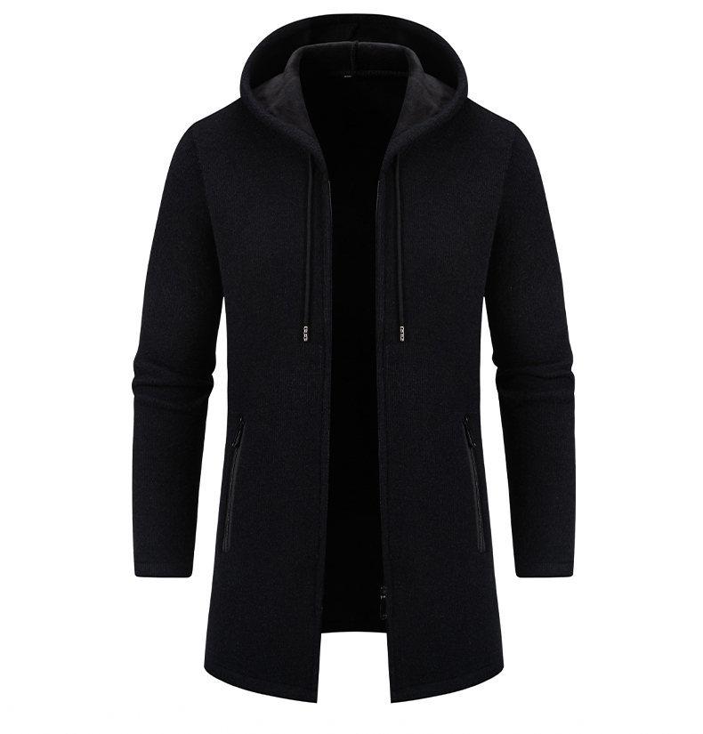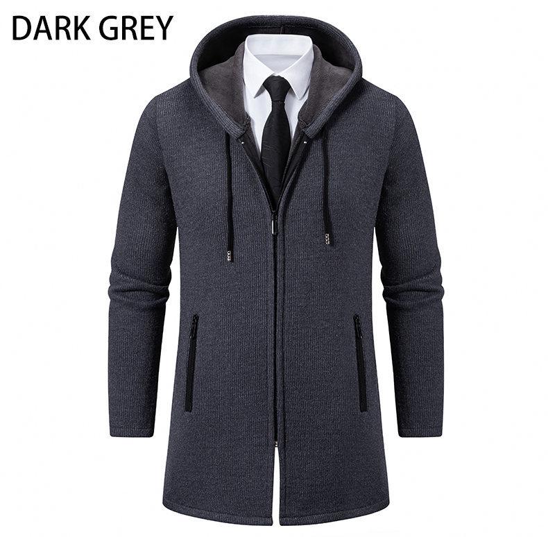 Chaqueta de suéter para hombre nueva de otoño e invierno de comercio exterior, abrigo largo, suéter con capucha forrado de polar de color sólido, abrigo para hombre