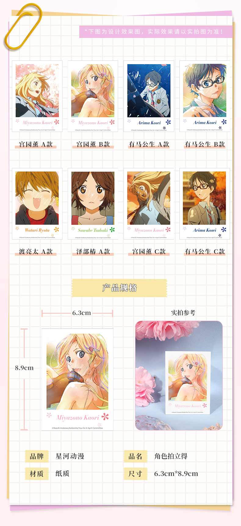 Xinghe Animation Abril es tu mentira. Gong Yuan Kaoru tiene una tarjeta fotográfica Polaroid de Magong Sheng.