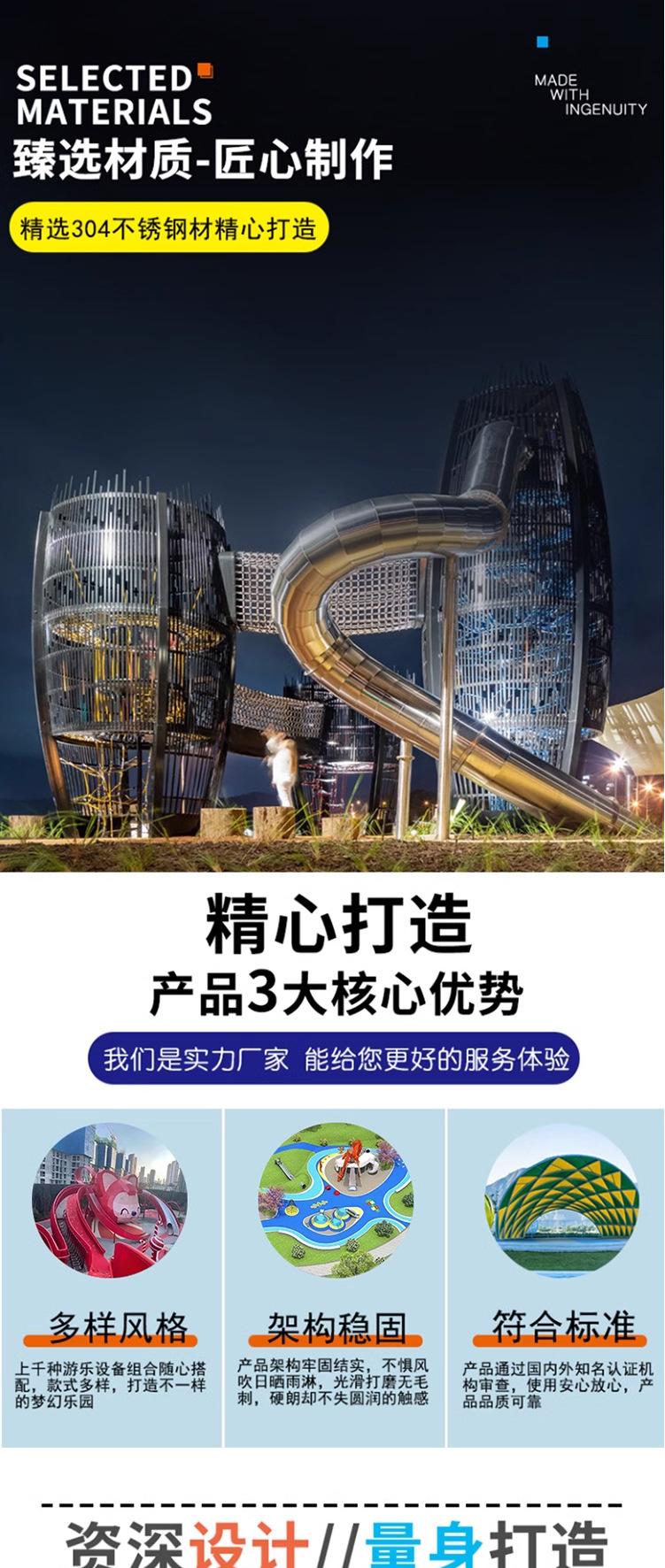 Tobogán de Acero Inoxidable Equipos de Juego para Niños No Estándar Área Escénica al Aire Libre Comunidad Instalaciones sin Motor Interacción Padres e Hijos