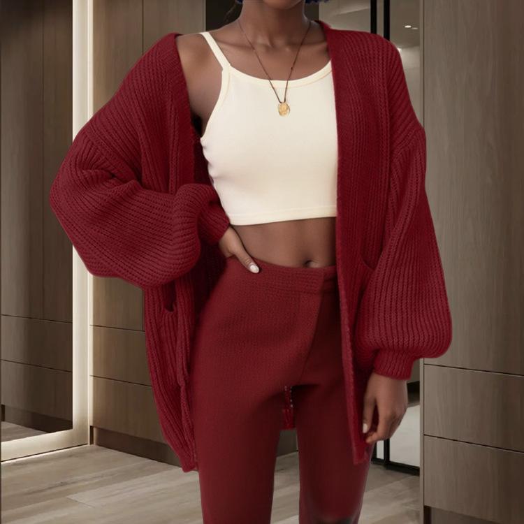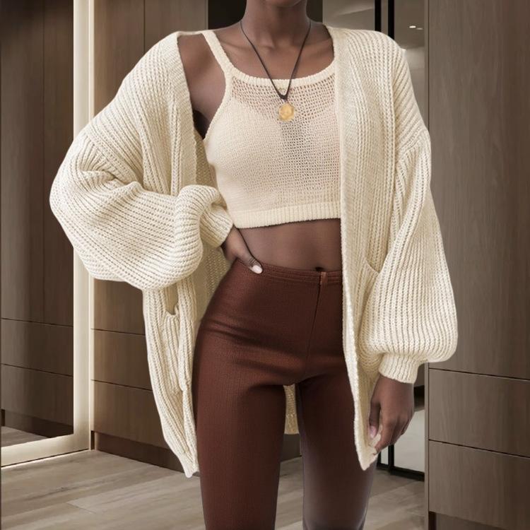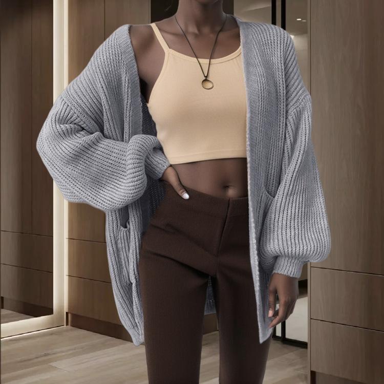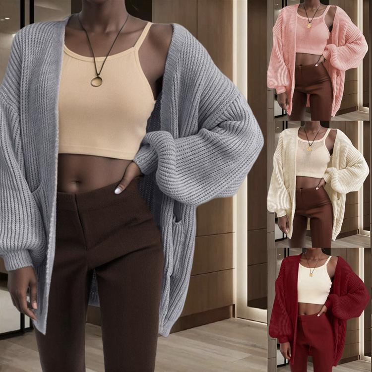 Comercio exterior AliExpress Otoño Nuevo suéter cárdigan suelto casual para mujer abrigo de manga farol de largo medio