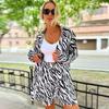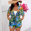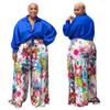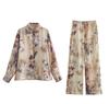 Ropa de mujer europea y americana comercio exterior transfronterizo casual traje de camisa estampada corbata top pantalones de cintura media traje de dos piezas