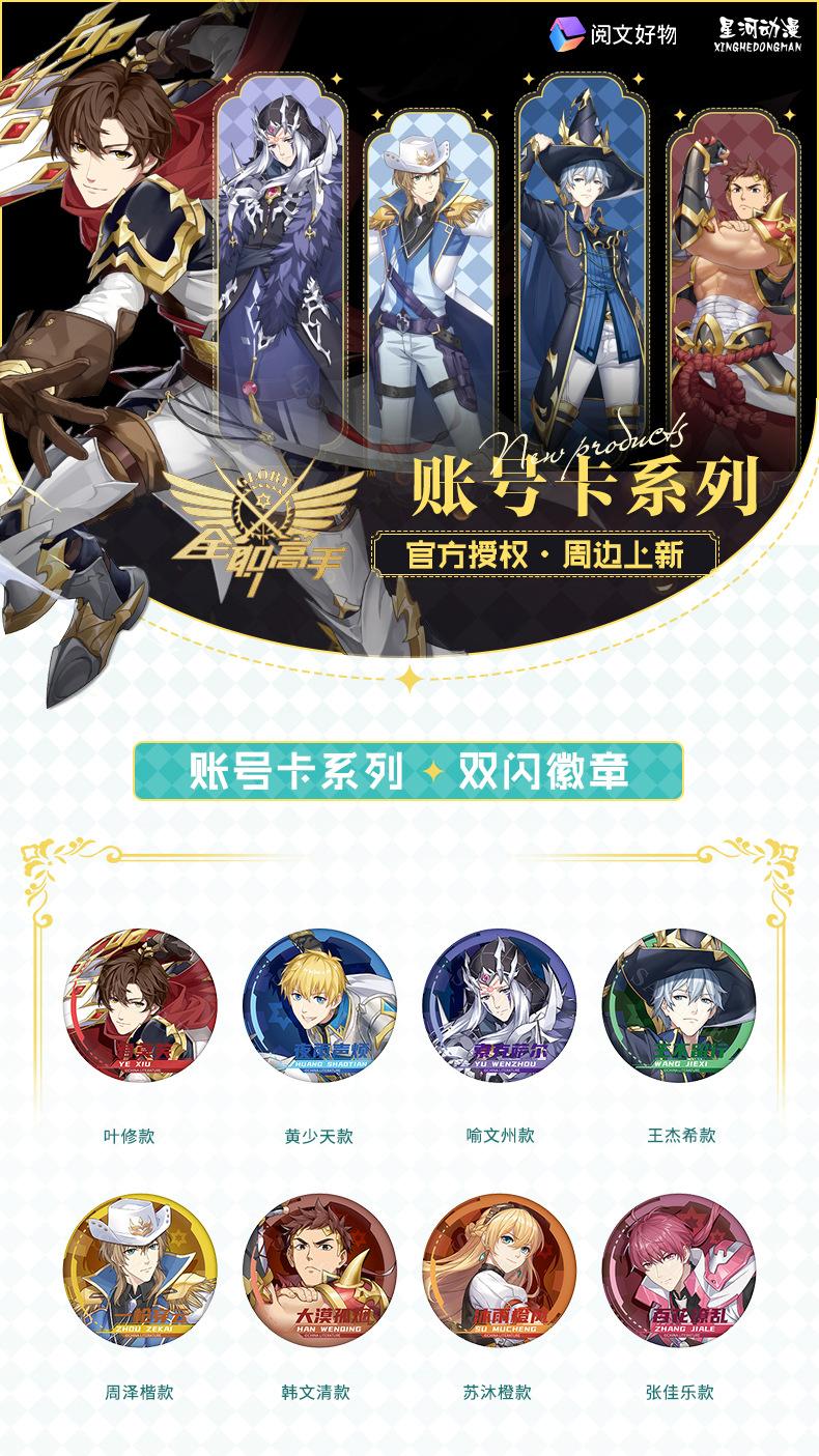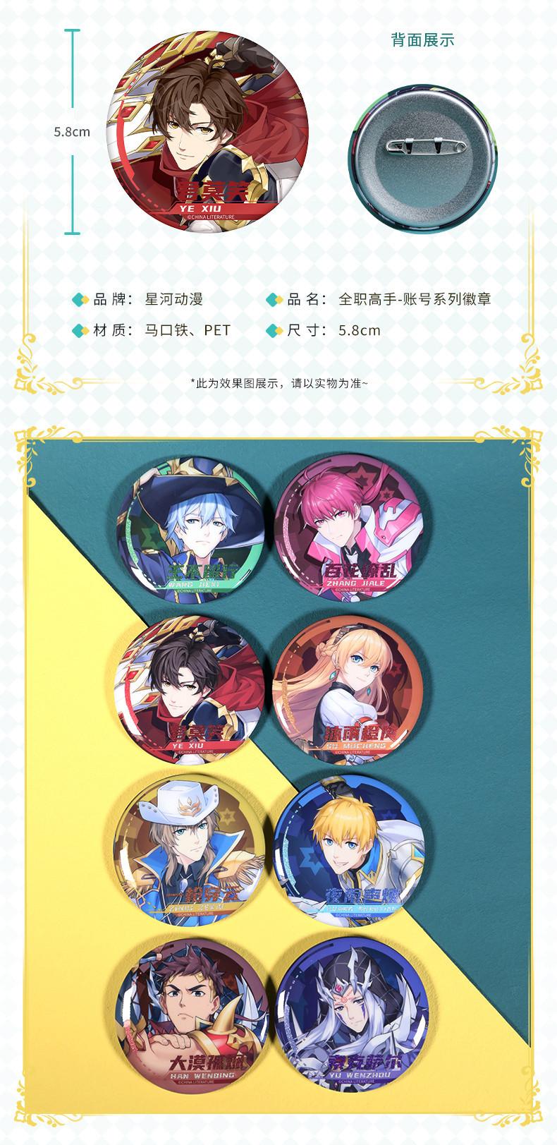 Xinghe Animation Maestro de tiempo completo Ye Xiu Huang Shaotian Cuenta Tarjeta Serie Insignia Broche Animación Alrededor
