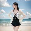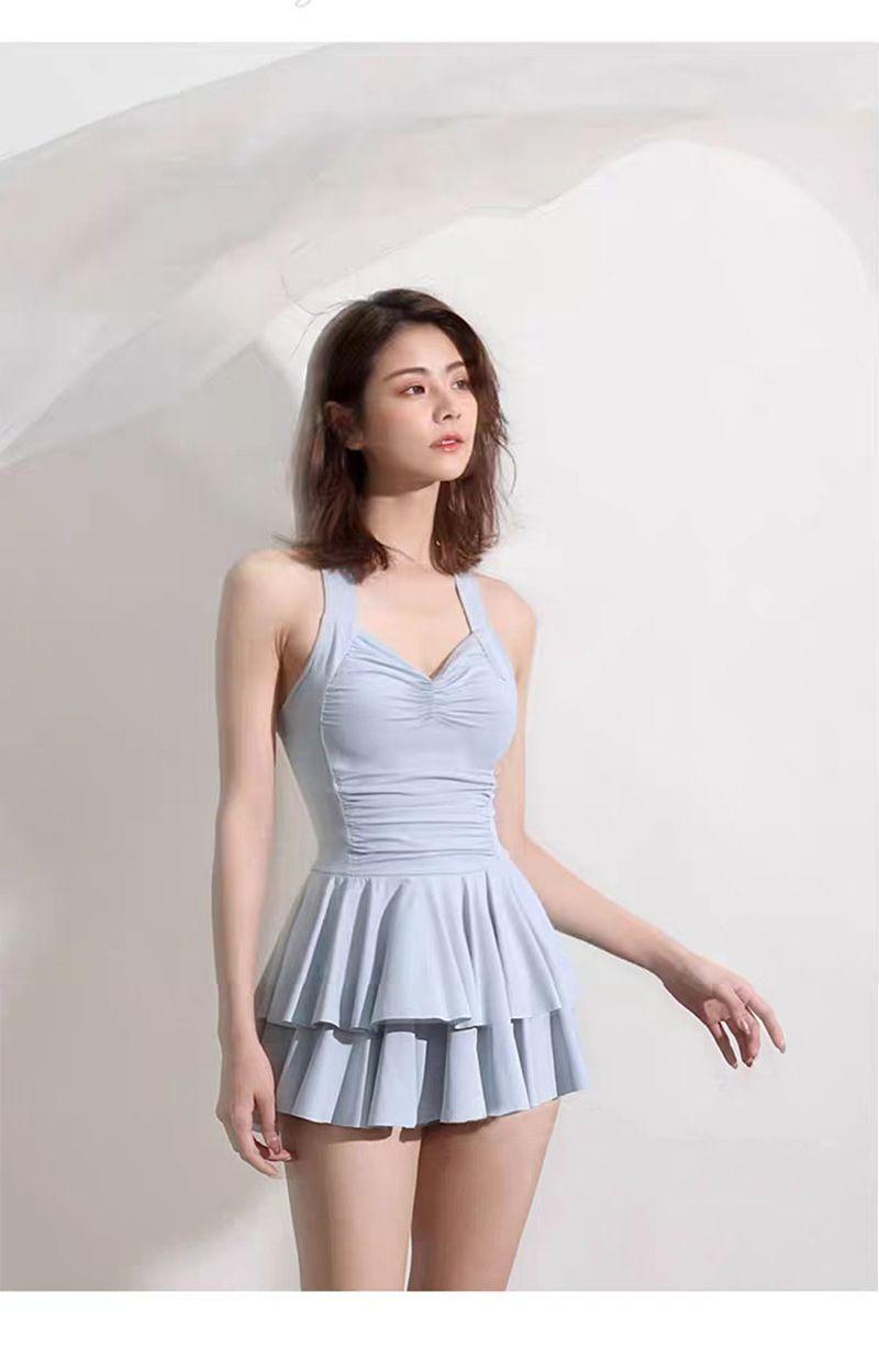 Traje de Baño Nuevo 2025 para Mujer Cubriendo Vientre, Look Adelgazante, Sexy Espalda Descubierta Aguas Termales Pechos Pequeños Recogidos Traje de Baño de Mujer de Alta Gama