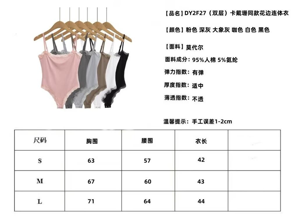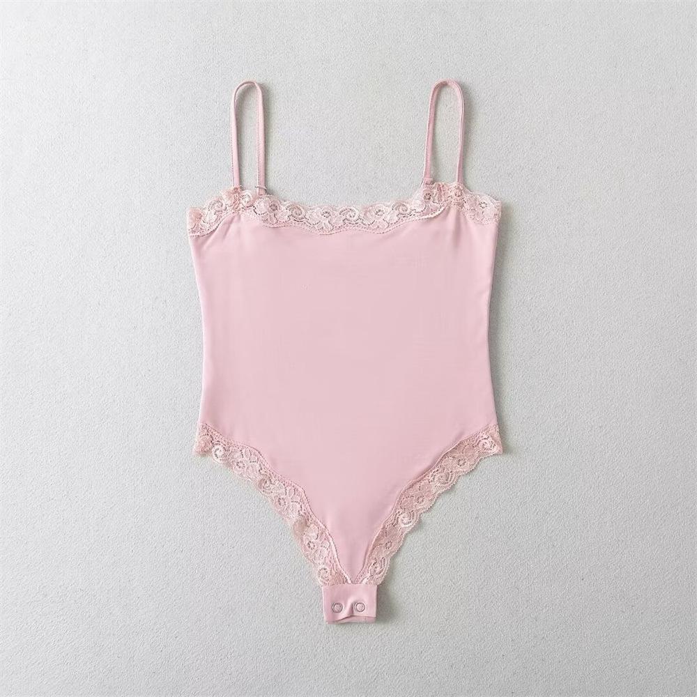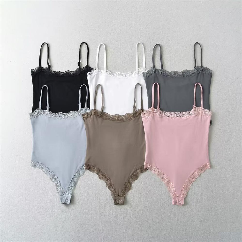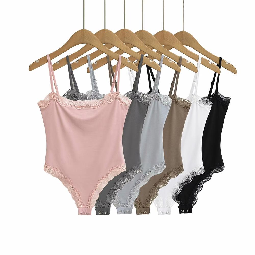 YPFF Ropa de Moda para Mujer Verano Nuevo Sexy Estilo Chica Caliente Encaje Doble Ajustado Adelgazante Body de Tirantes