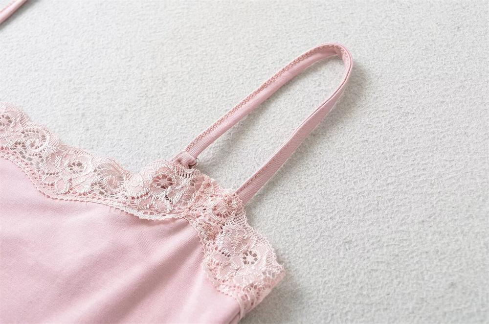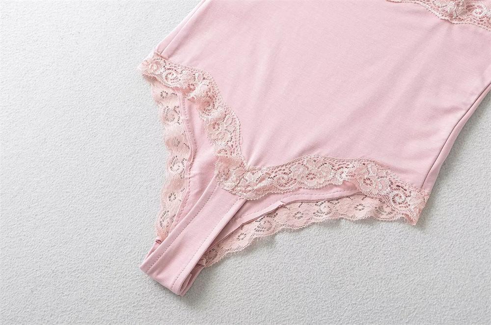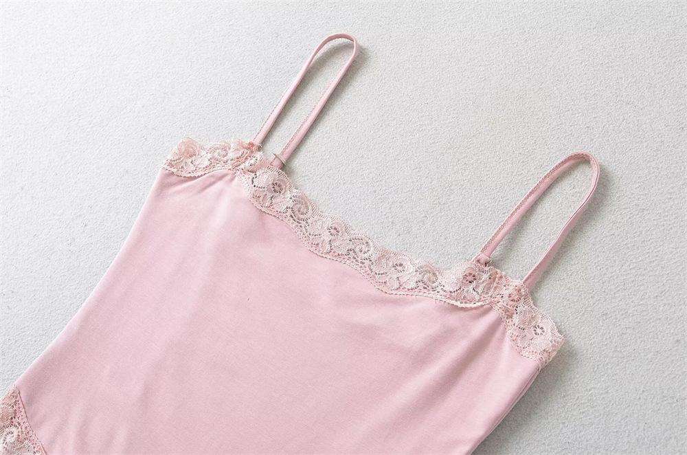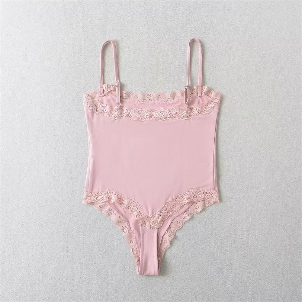 YPFF Ropa de Moda para Mujer Verano Nuevo Sexy Estilo Chica Caliente Encaje Doble Ajustado Adelgazante Body de Tirantes