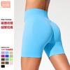 Pantalones de yoga ajustados de cintura alta, sin costuras y con pliegues laterales, color melocotón, para realzar el abdomen, de tres puntos, para fitness profesional, verano 1549