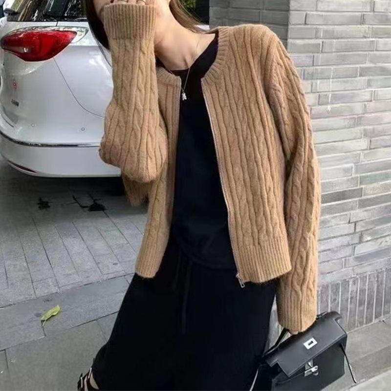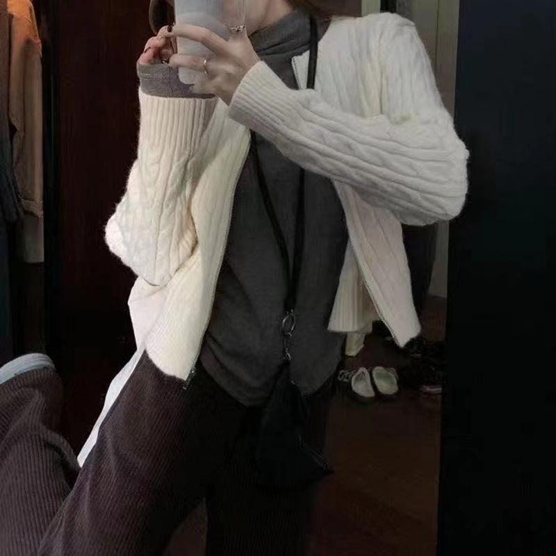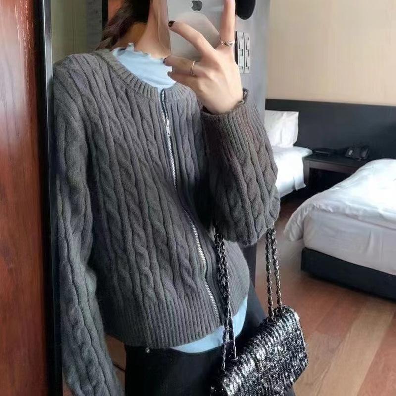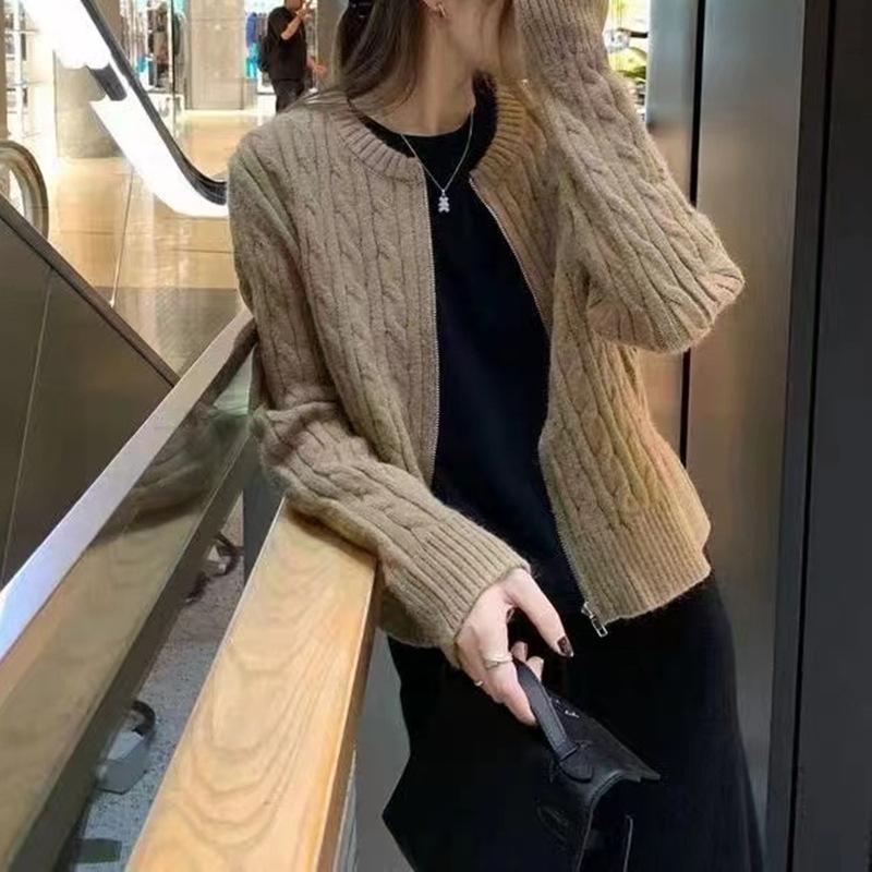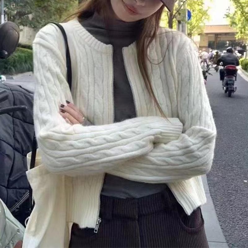 Cárdigan de punto ajustado estilo coreano para mujer, con cremallera torcida, manga larga, otoño 2022, temporada 4, nuevo, elegante, combinable, abrigo para mujer