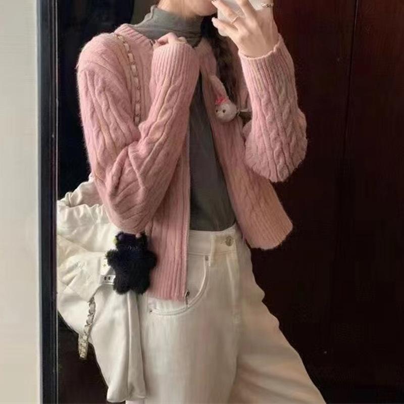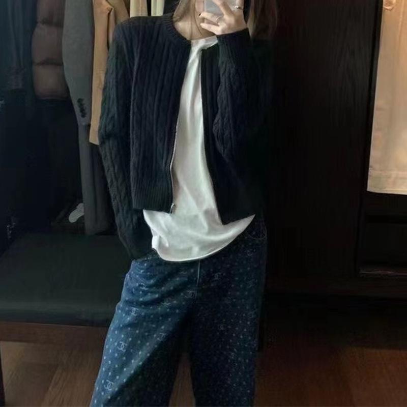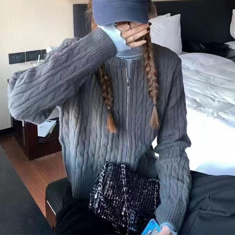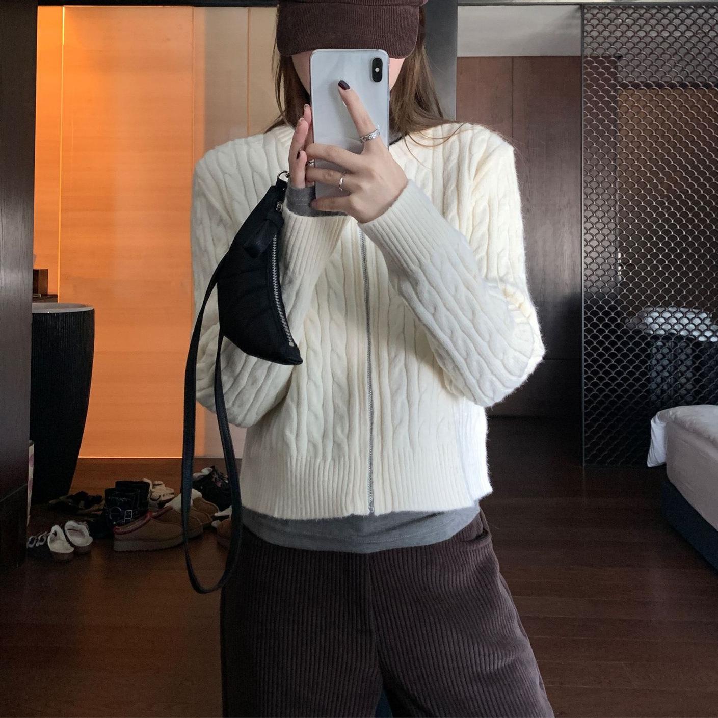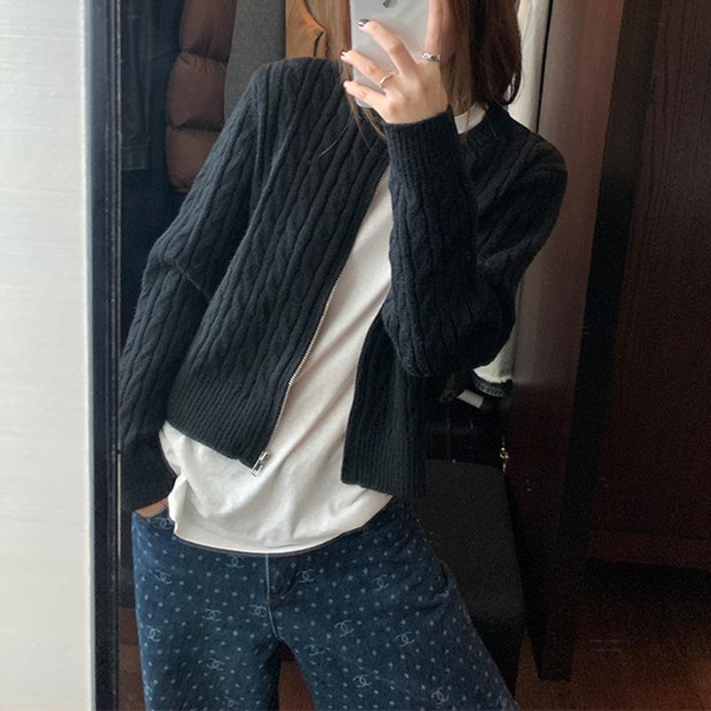 Cárdigan de punto ajustado estilo coreano para mujer, con cremallera torcida, manga larga, otoño 2022, temporada 4, nuevo, elegante, combinable, abrigo para mujer