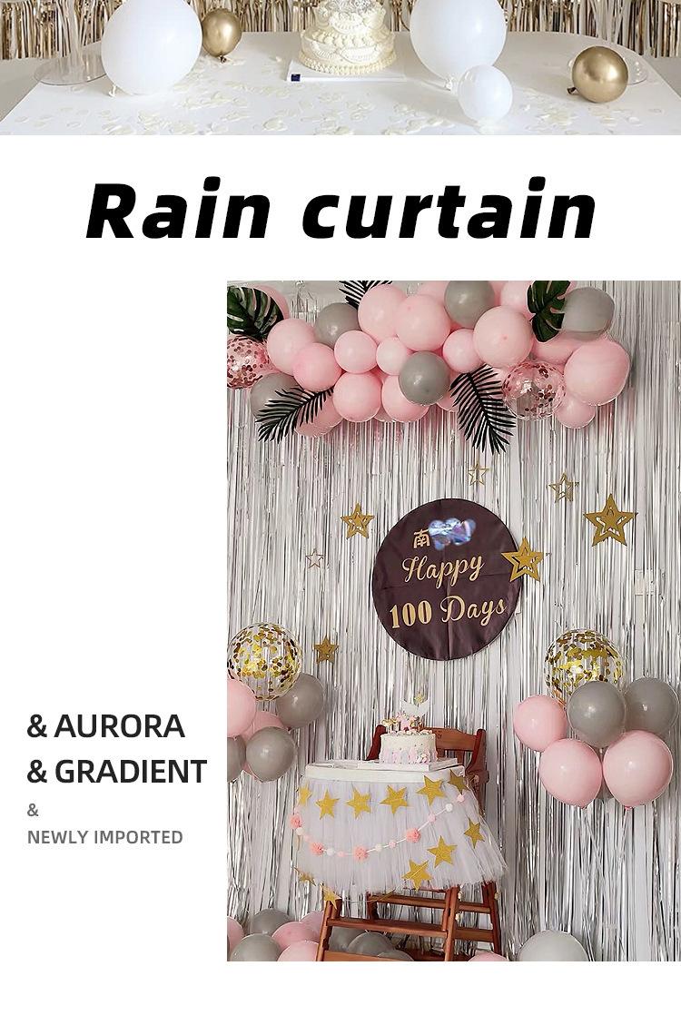 Cortina de lluvia para decoración de cumpleaños infantil con globos, tiras de colores, serpentinas, borlas, fondo de pared para fiesta de un año