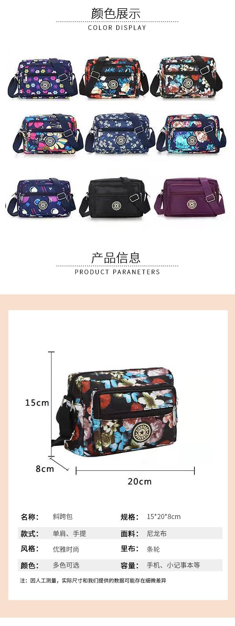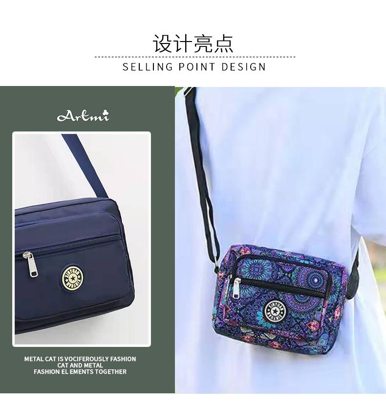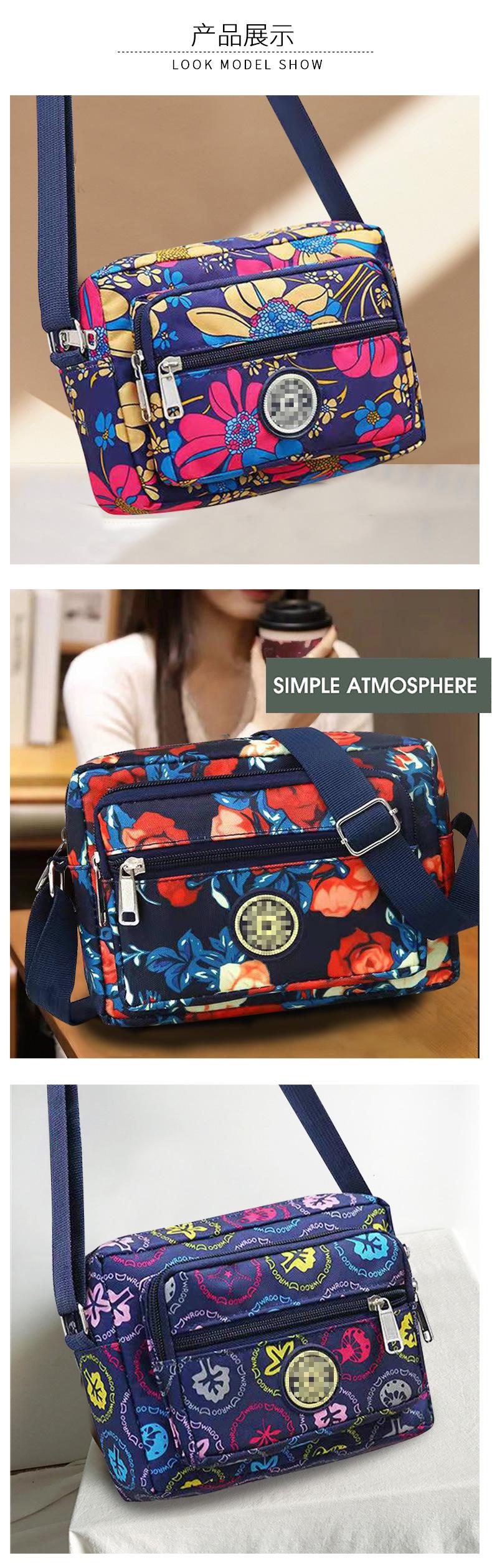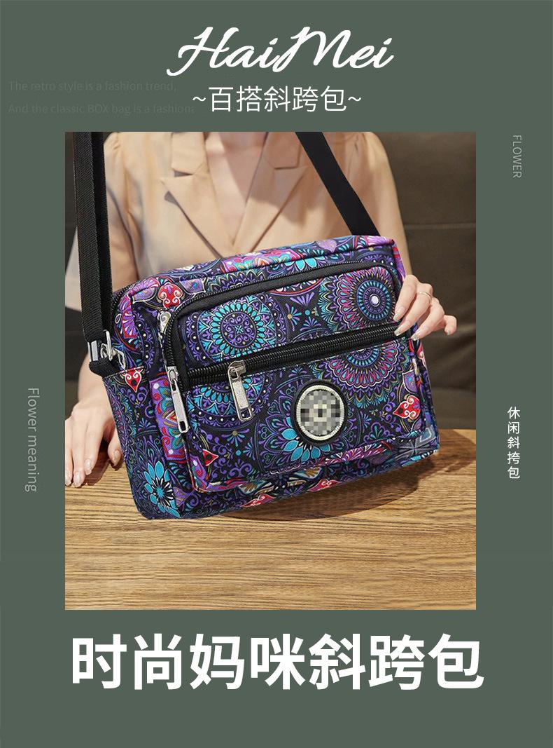 Nueva Bolsa de Mamá Tela de Nailon Bolsa de Tela Floral para Mujer Bolso Bandolera de un Solo Hombro para Mediana Edad y Adultos Mayores Casual Multicapa para Teléfono Móvil Venta al por Mayor