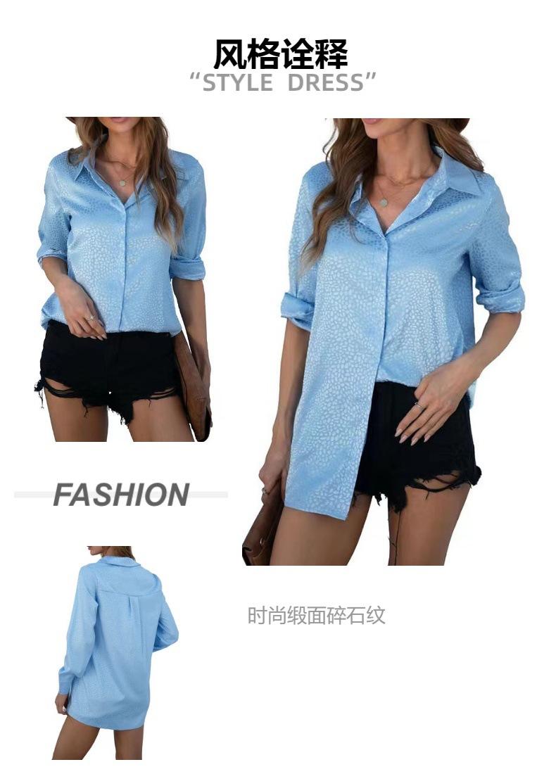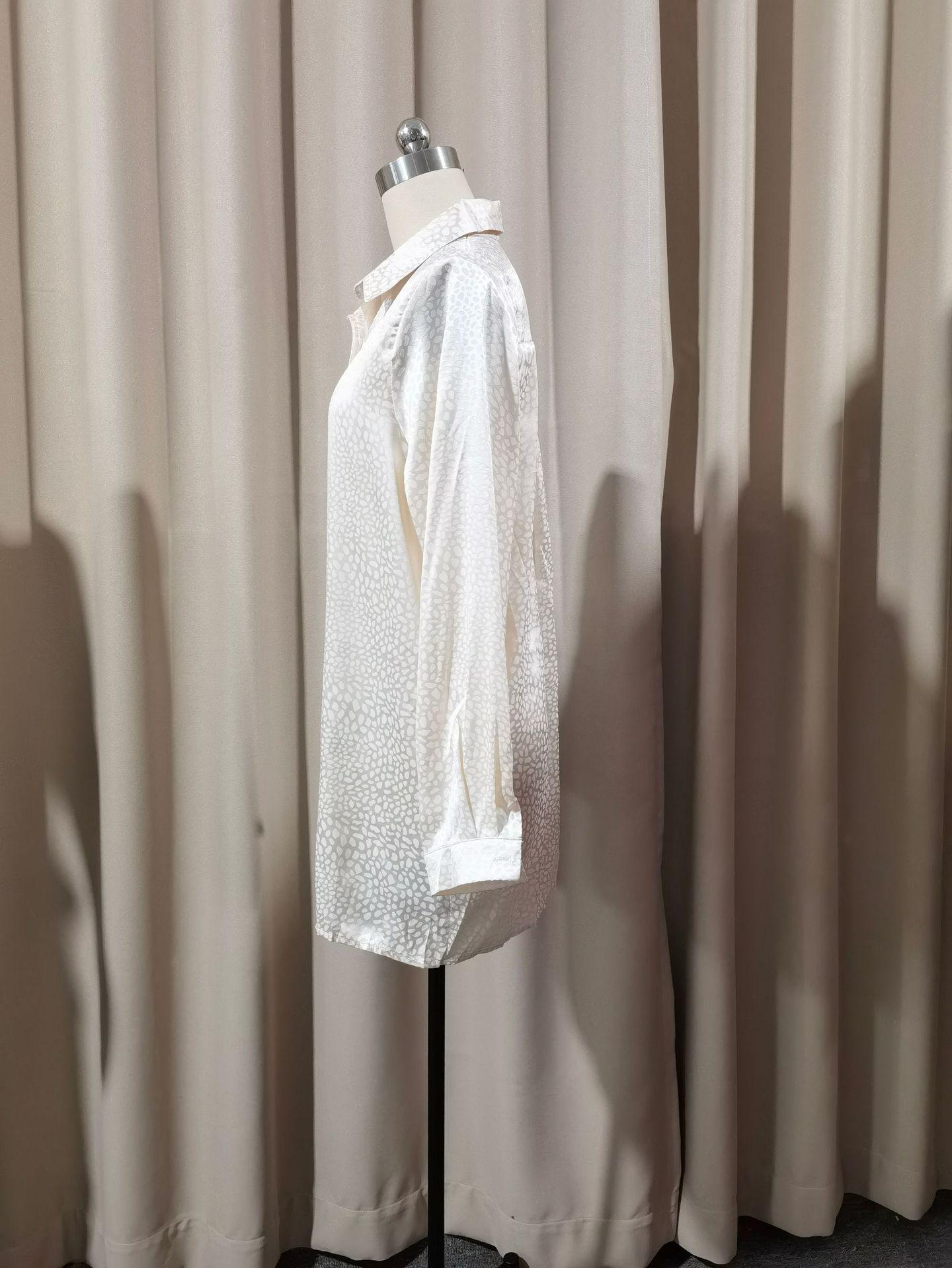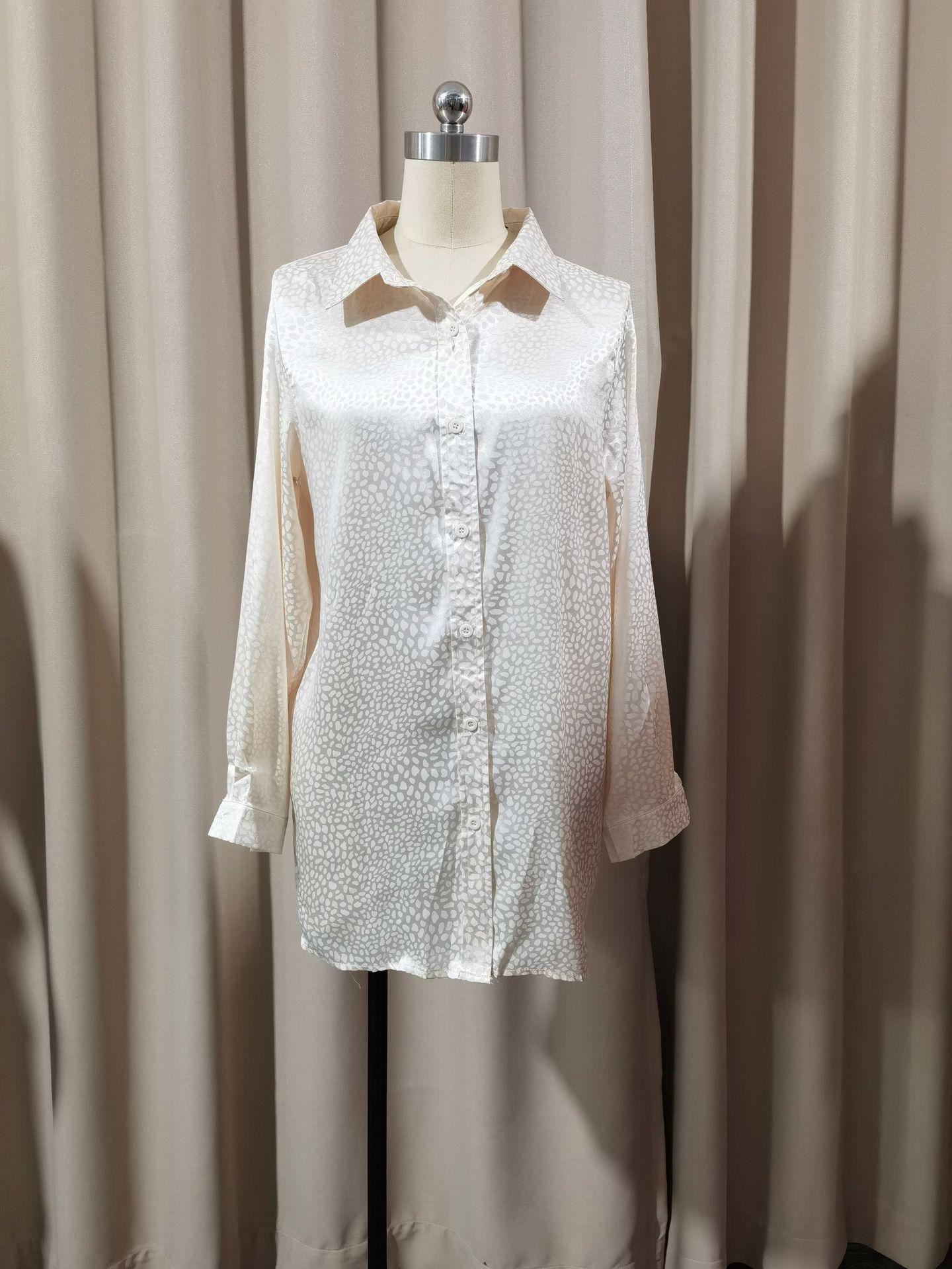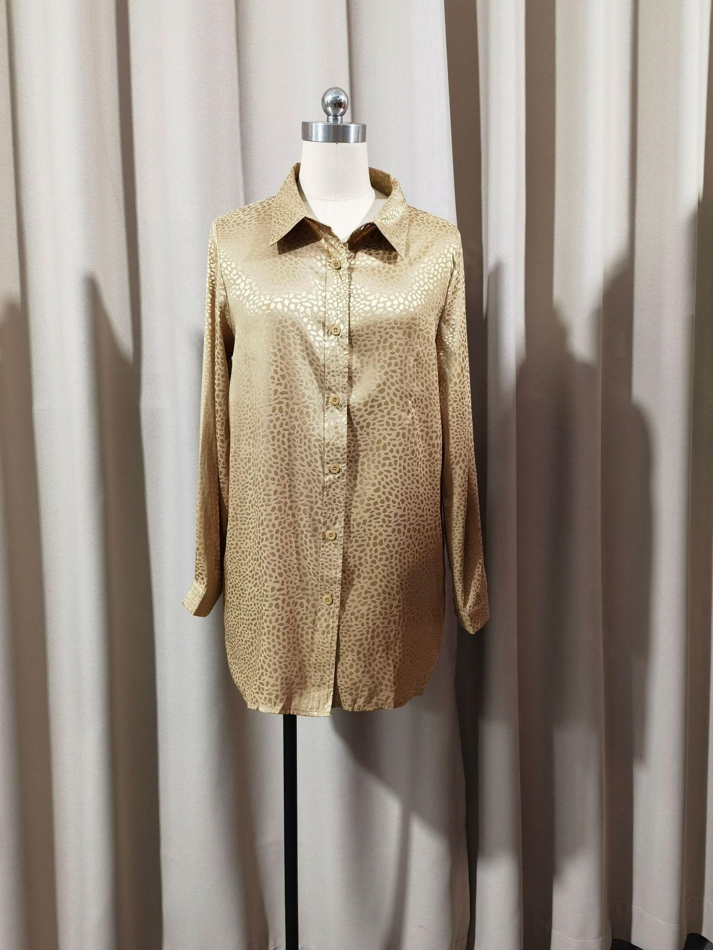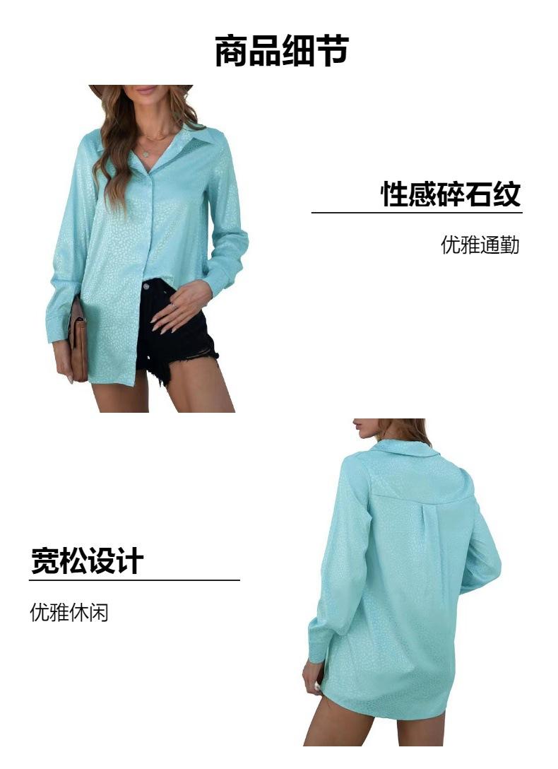 Camisa Holgada de Manga Larga con Estampado de Piedra Triturada de Satén Elegante Nuevo Europeo y Americano para Verano y Otoño para Mujer