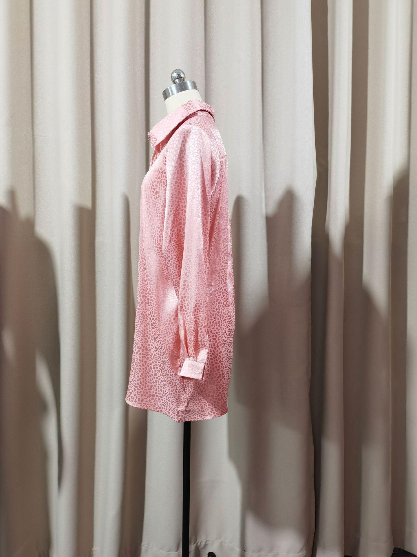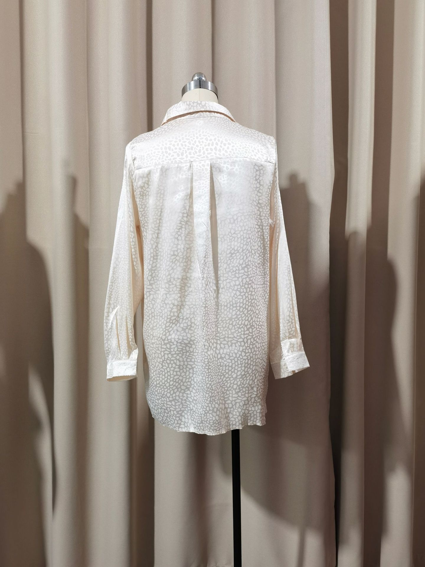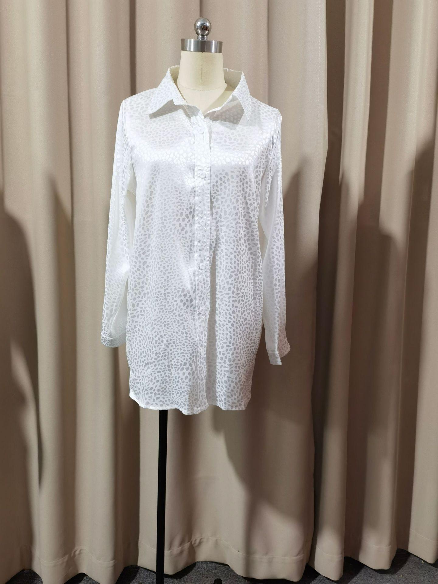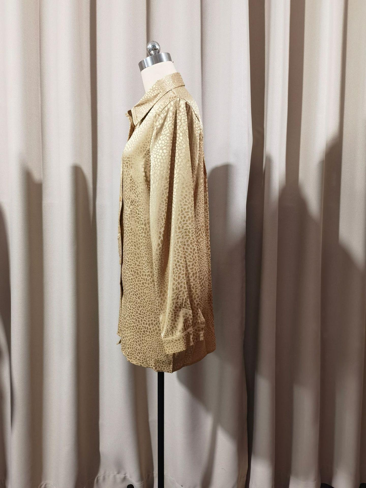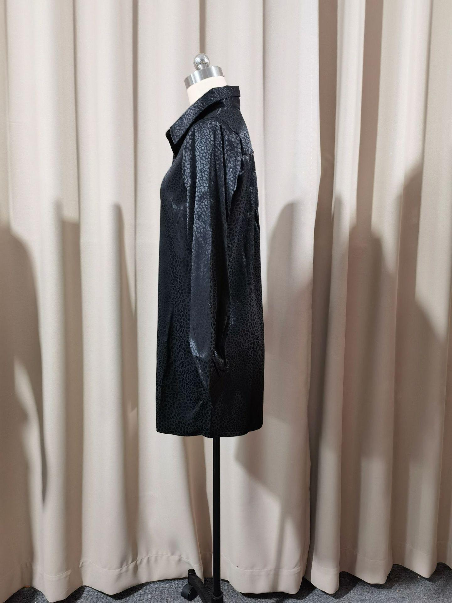 Camisa Holgada de Manga Larga con Estampado de Piedra Triturada de Satén Elegante Nuevo Europeo y Americano para Verano y Otoño para Mujer