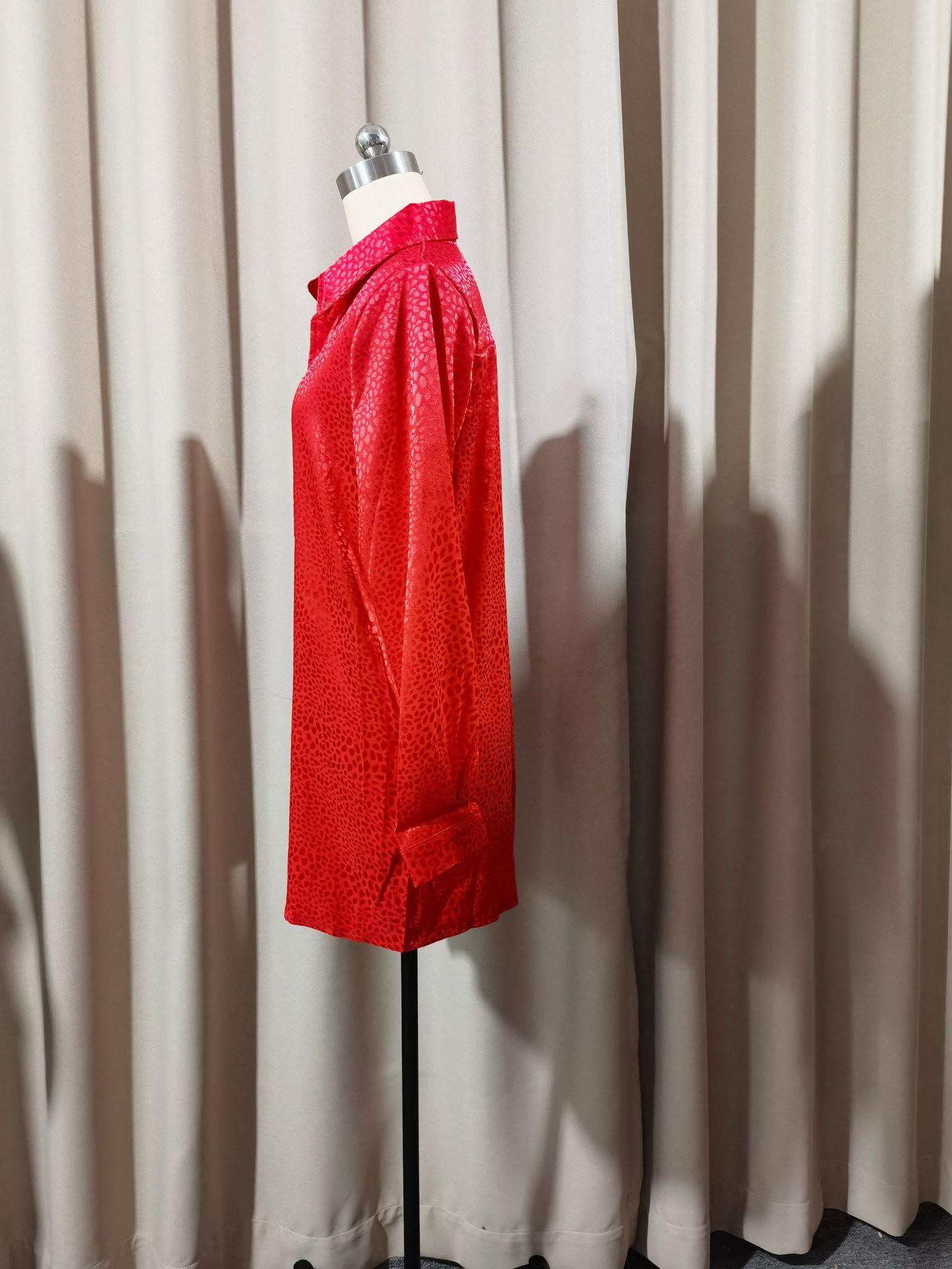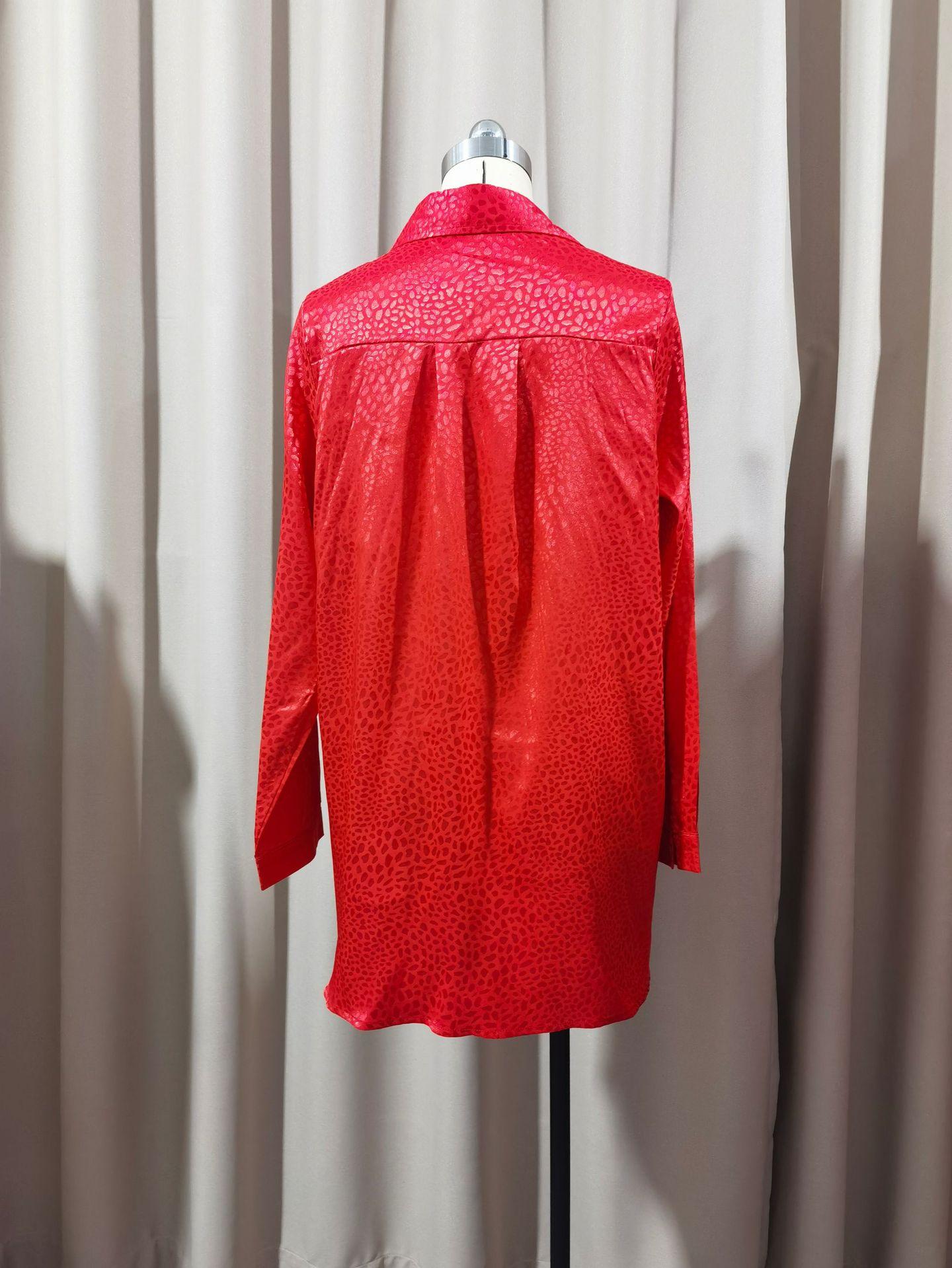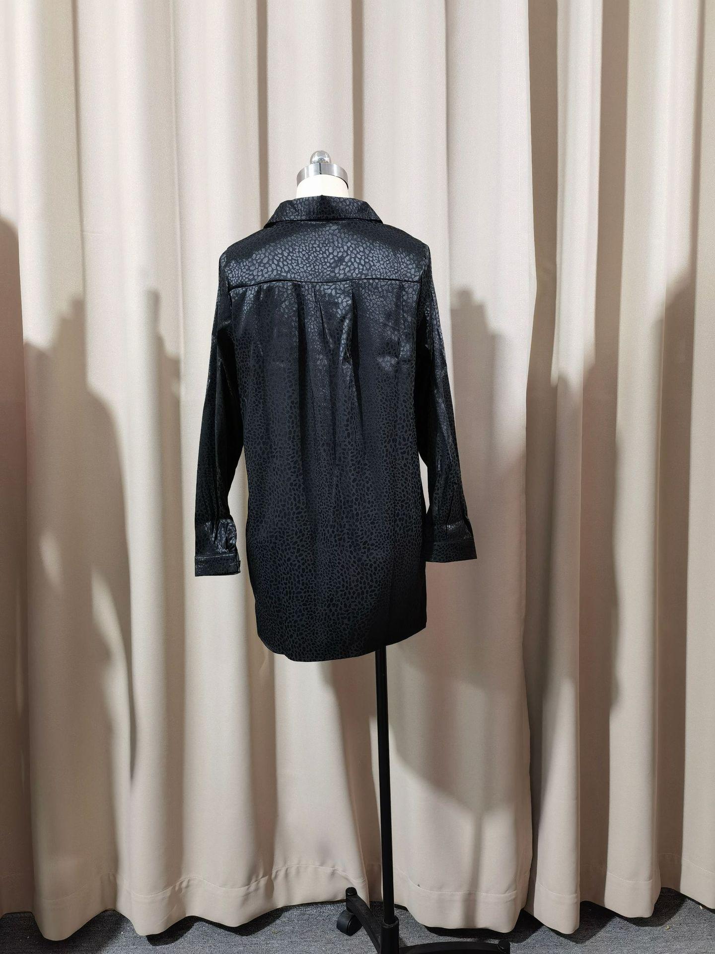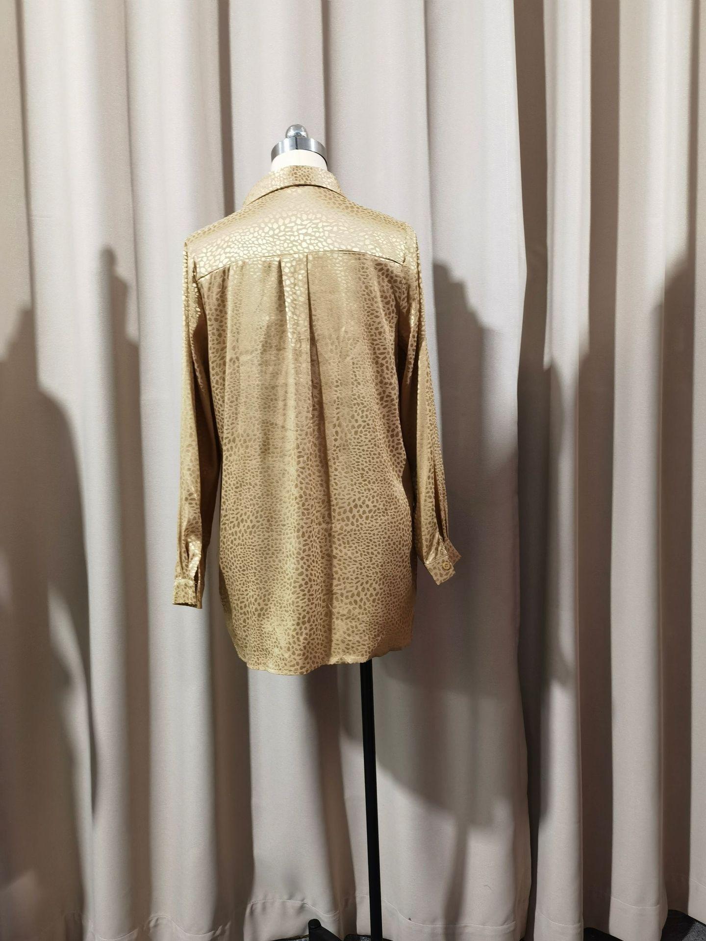 Camisa Holgada de Manga Larga con Estampado de Piedra Triturada de Satén Elegante Nuevo Europeo y Americano para Verano y Otoño para Mujer