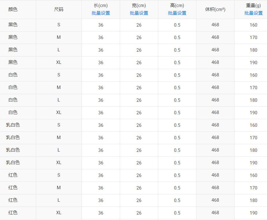 Black, Apricot, Sky blue, Royal blue, Gray blue, Rouge color, Pink, White, Red