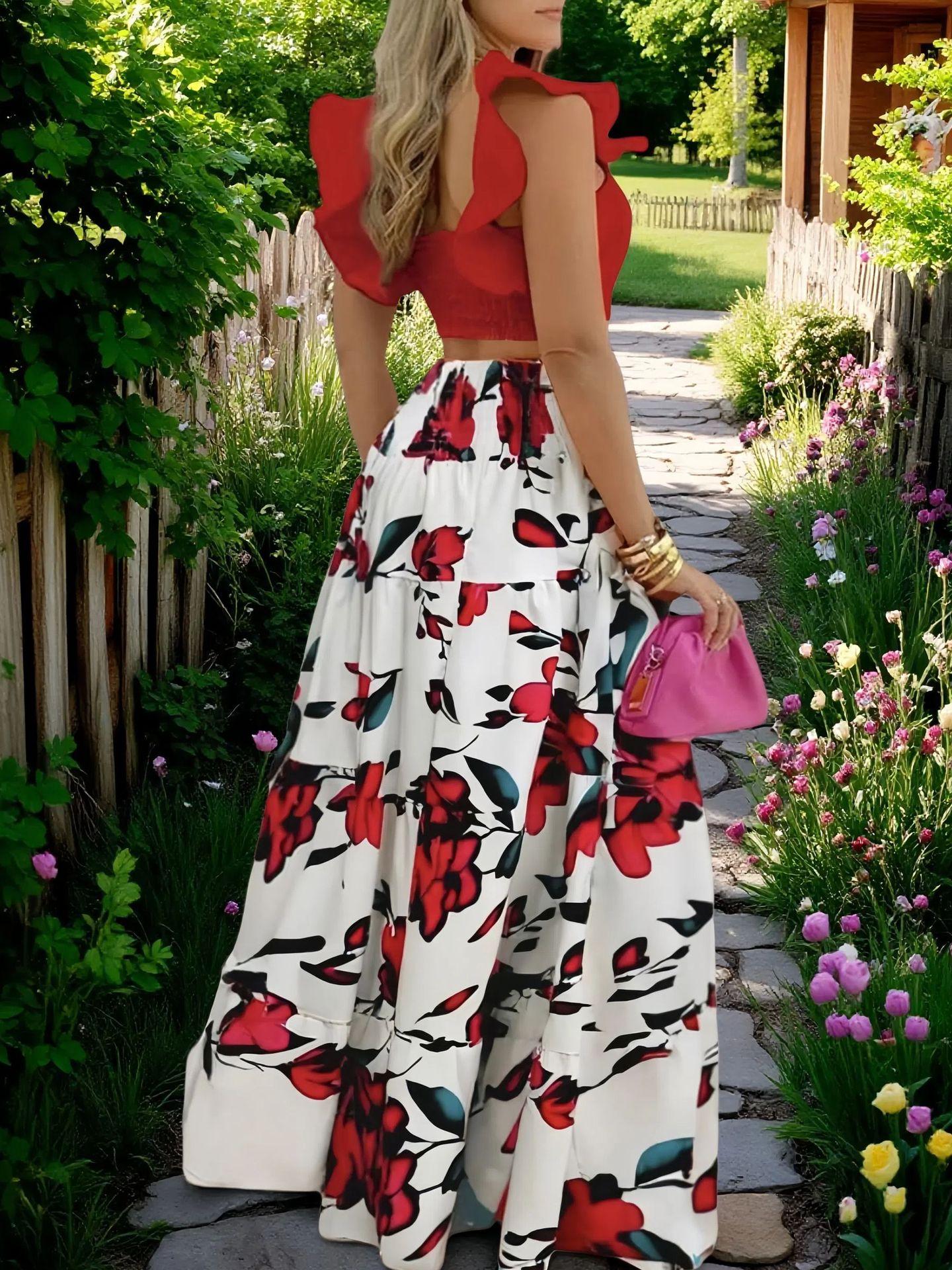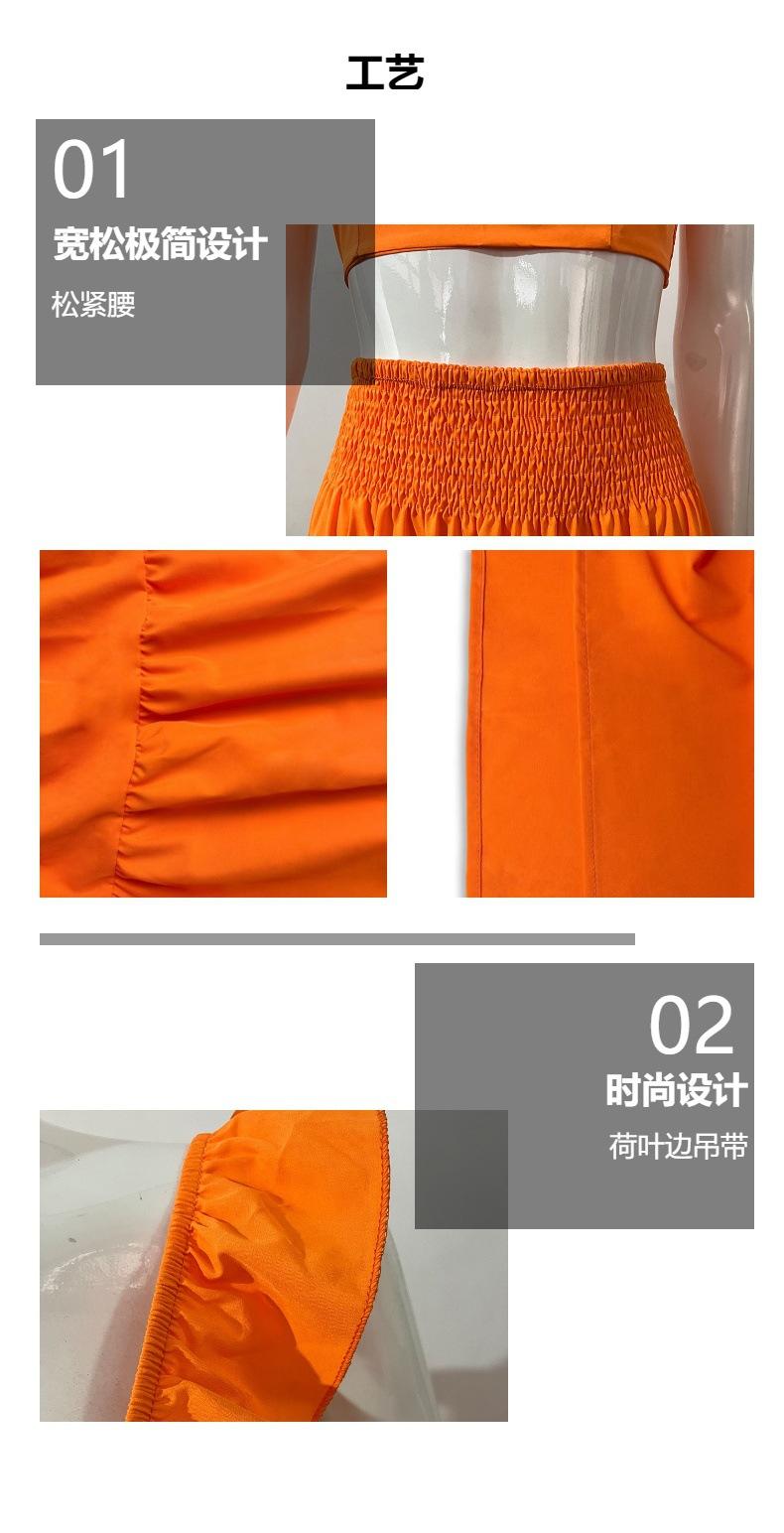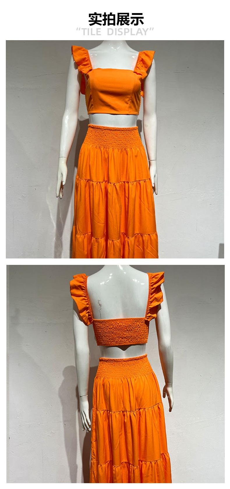 Vestido de Tirantes Francés Sexy con Volantes de Color Sólido para Mujer de Comercio Exterior Transfronterizo Europeo y Americano Conjunto de Dos Piezas Atuendo para Mujer