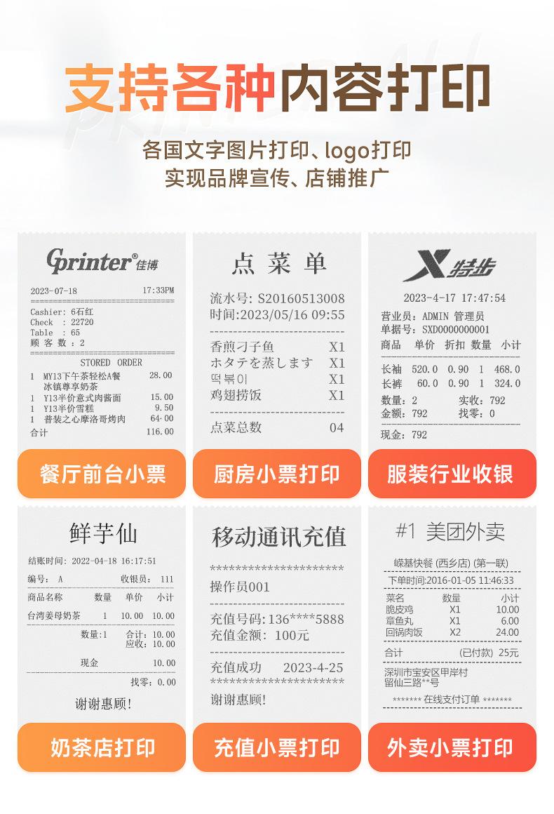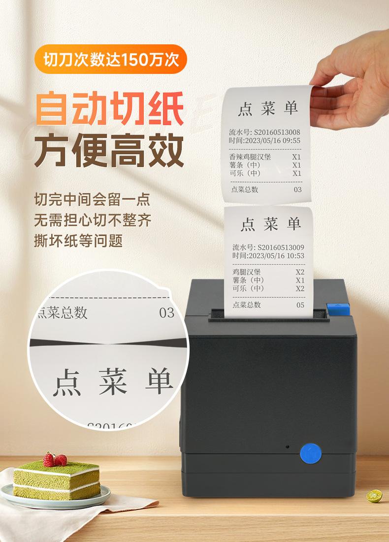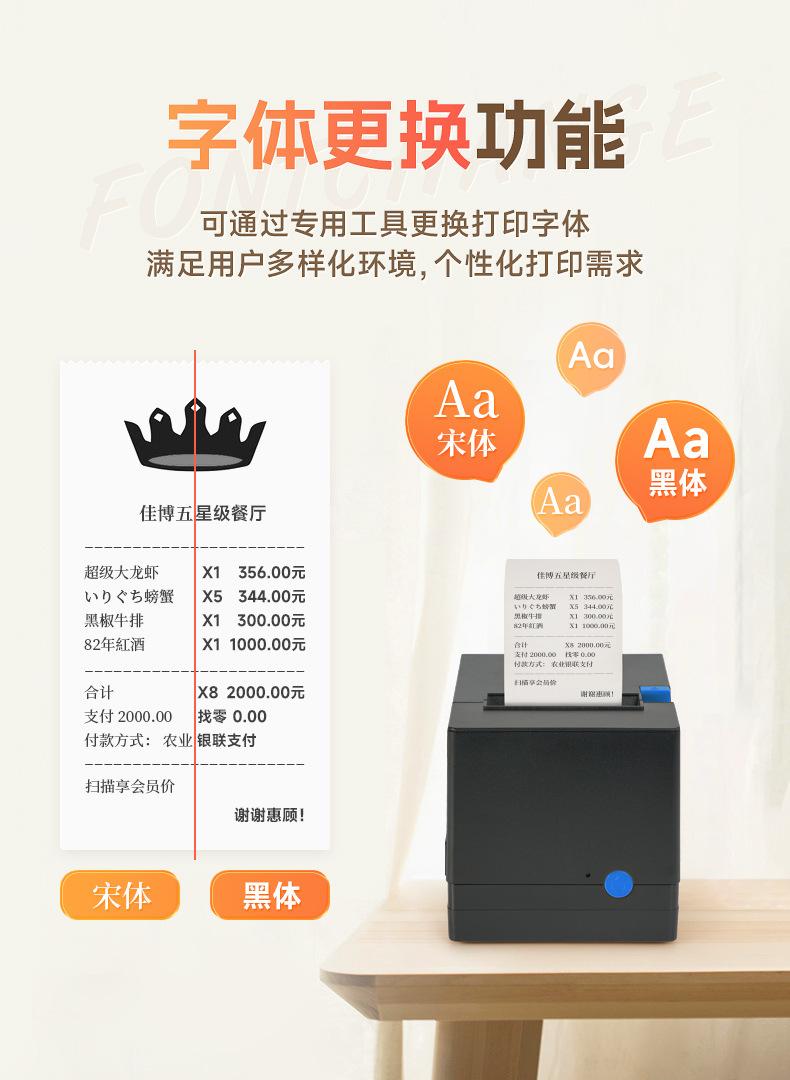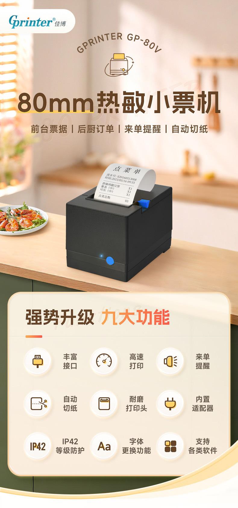 Impresora de Cocina Jiabo 80V para Catering y Comida para Llevar, Impresora de Recibos Bluetooth, Impresora de Recibos de Puerto de Red 80mm