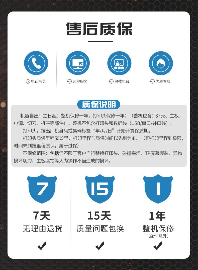 One-year warranty, three-month warranty for print head and accessories