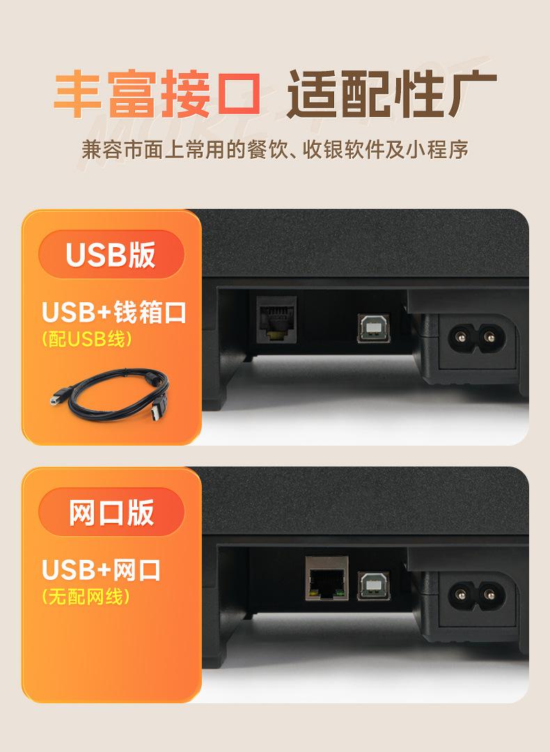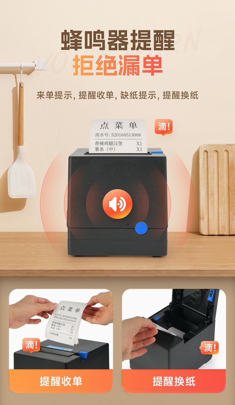 [New model] D300V [USB + network port + serial port version] with sound and light alarm - no reminder when placed orders [Free 6 rolls of 80 receipts]