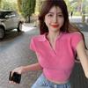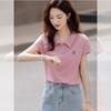 Polo Rosa Algodón Puro Mujer 2025 Primavera y Verano Nuevo Estilo Estampado Ropa de Trabajo Básica Casual Slim Trendy Top