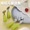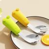 Cuchara tenedor con mango de madera de silicona para niños, cuchara tenedor para suplemento alimenticio, tenedor anticaída para entrenamiento de bebés, tenedor para comer, traje de cuchara, venta al por mayor