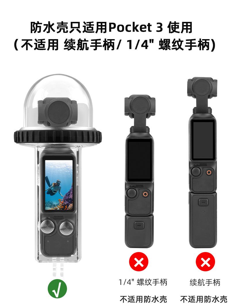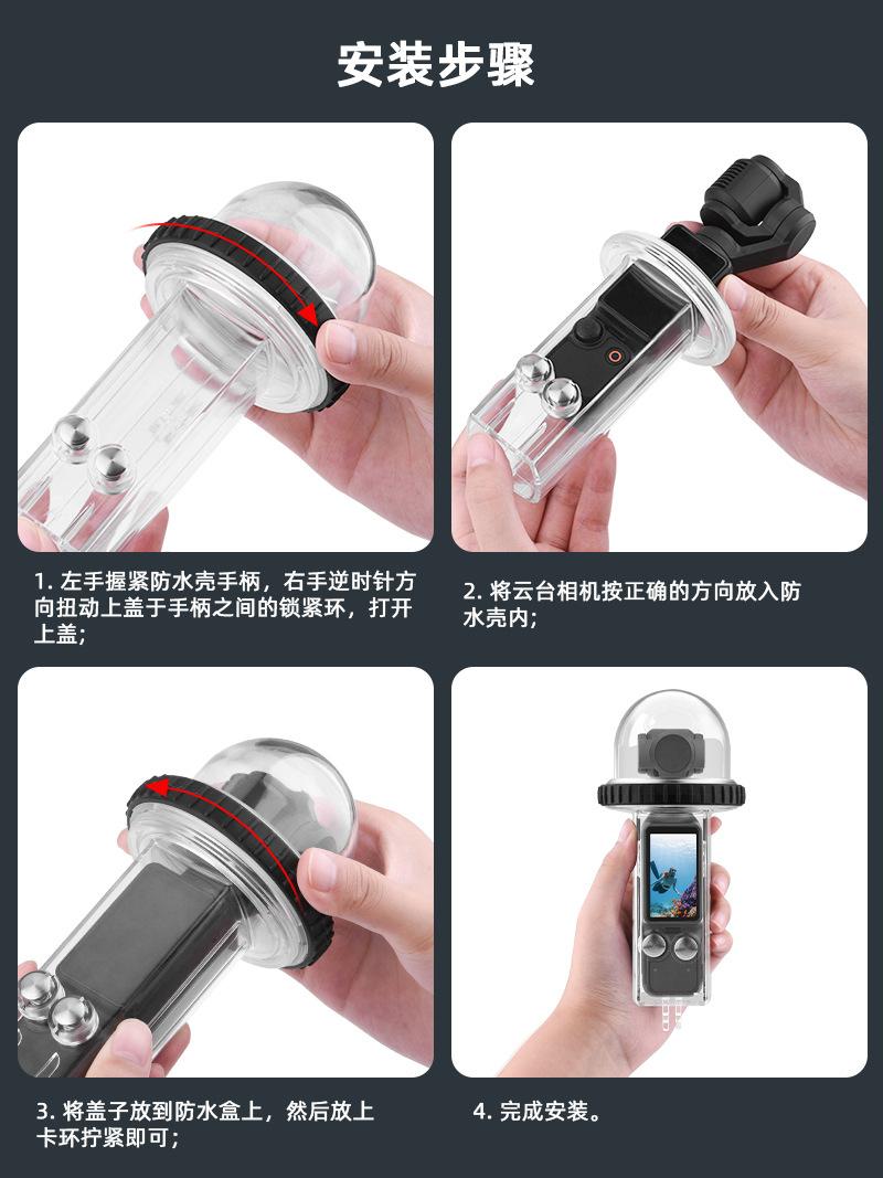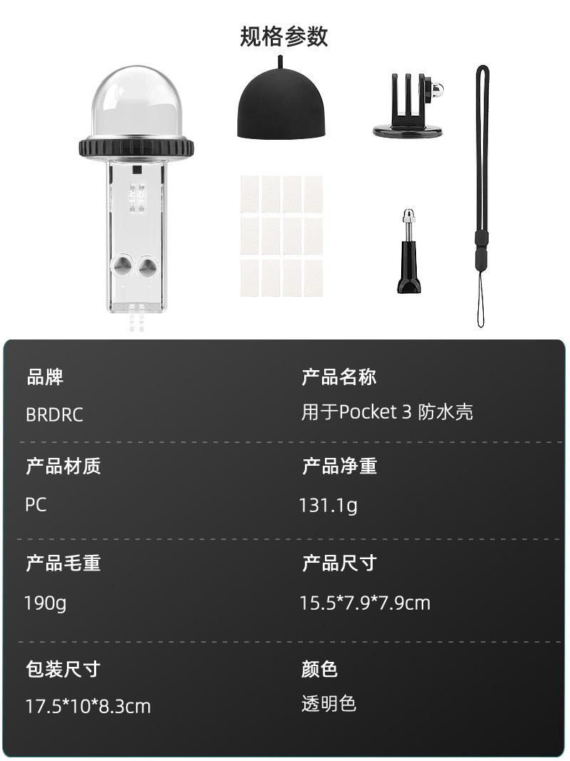 Lista de embalaje: Carcasa impermeable × 1 Correa de mano × 1 Adaptador de 1/4 de pulgada x 1 Tornillo largo x 1 Lámina antivaho × 12