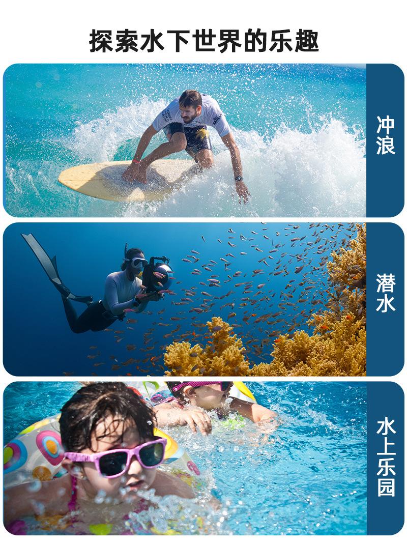 1. Protección impermeable hasta 40 metros, adecuado para fotografía submarina como natación, buceo, surf, etc.